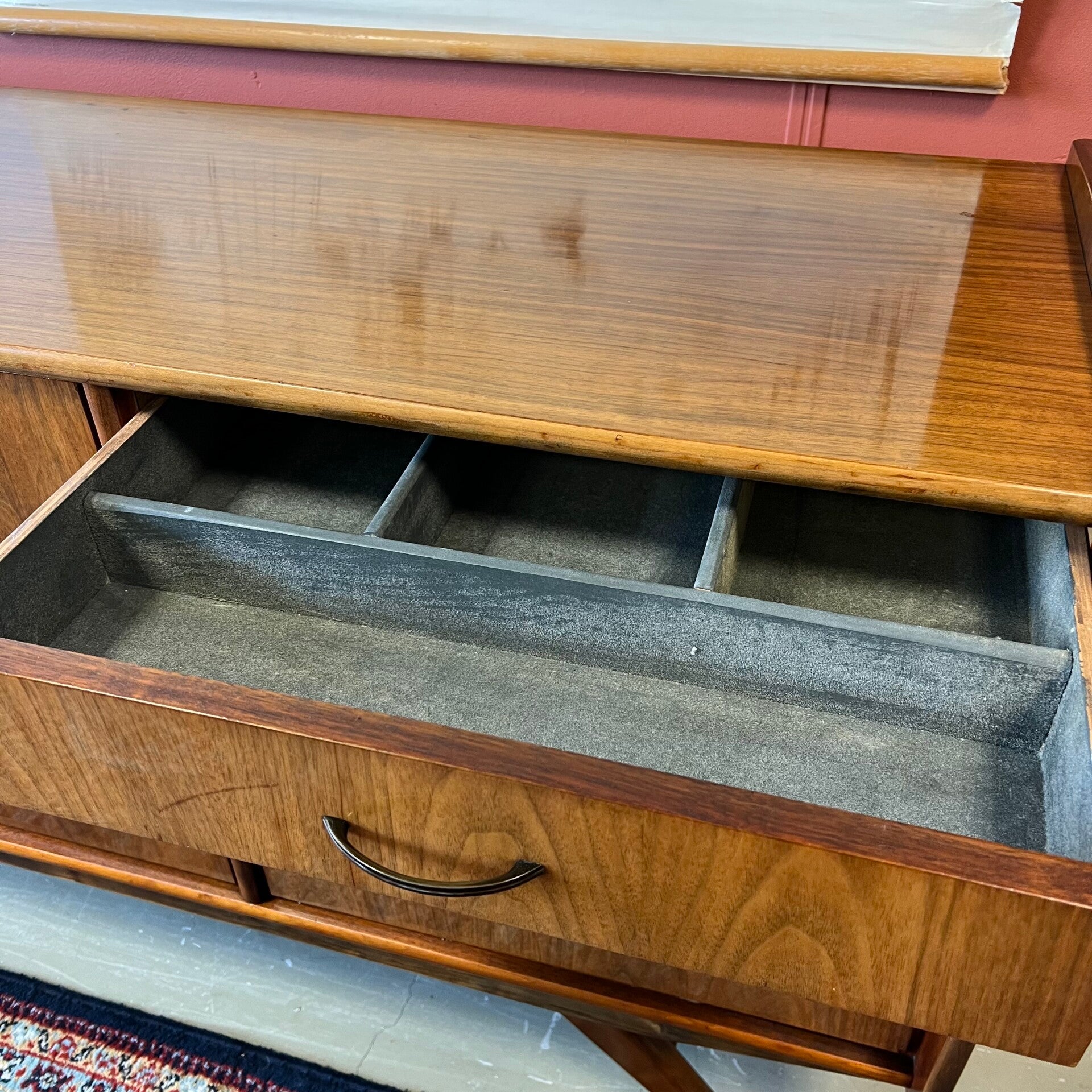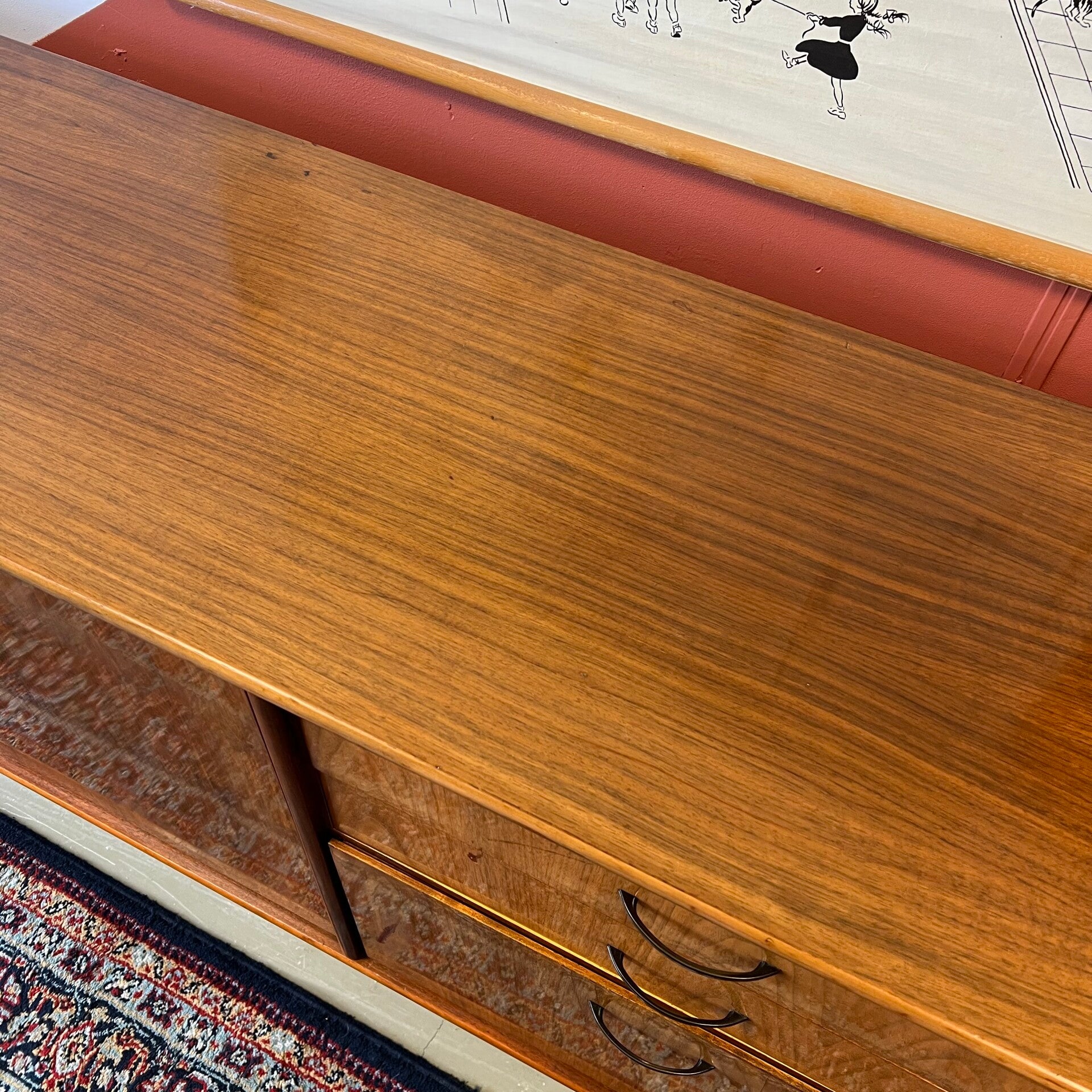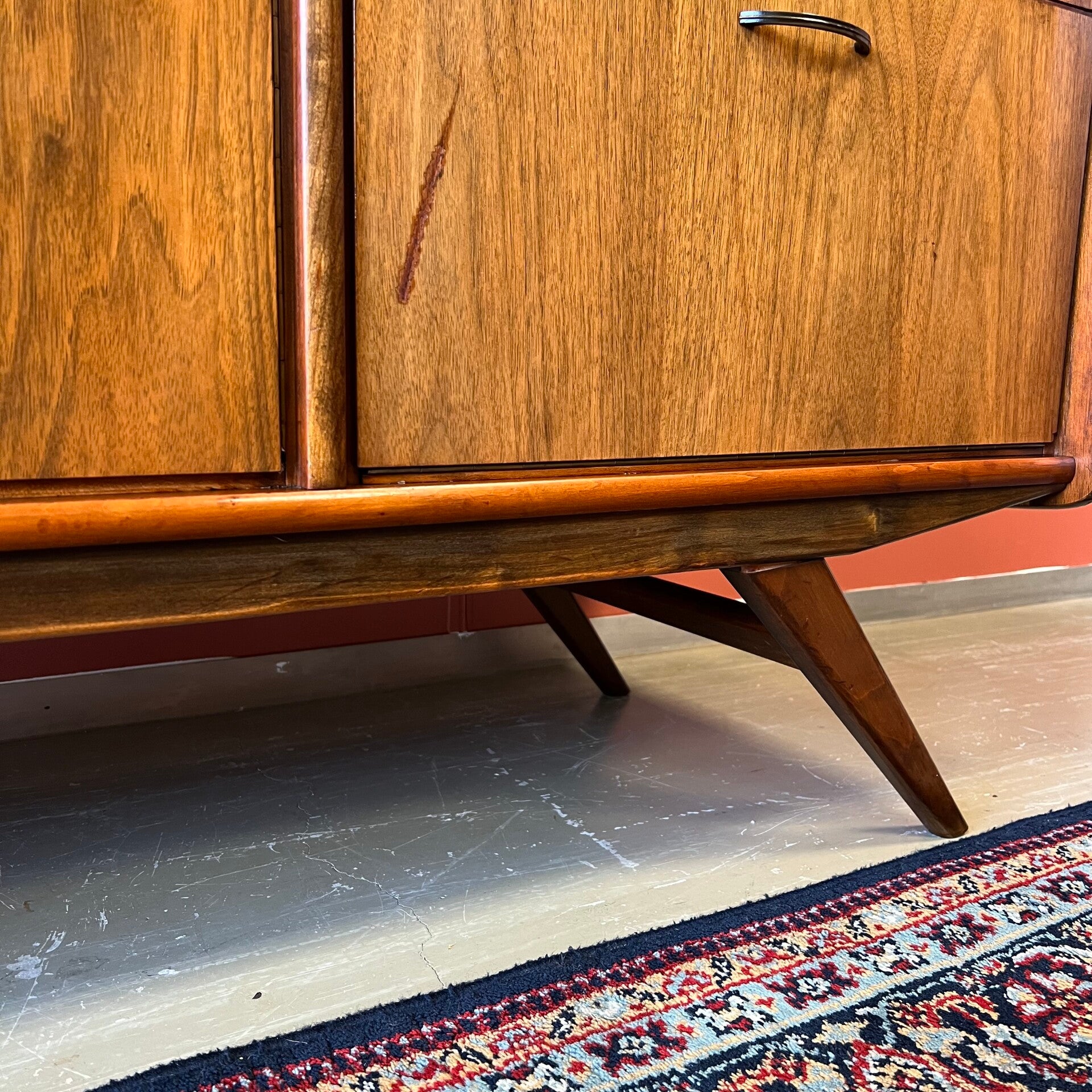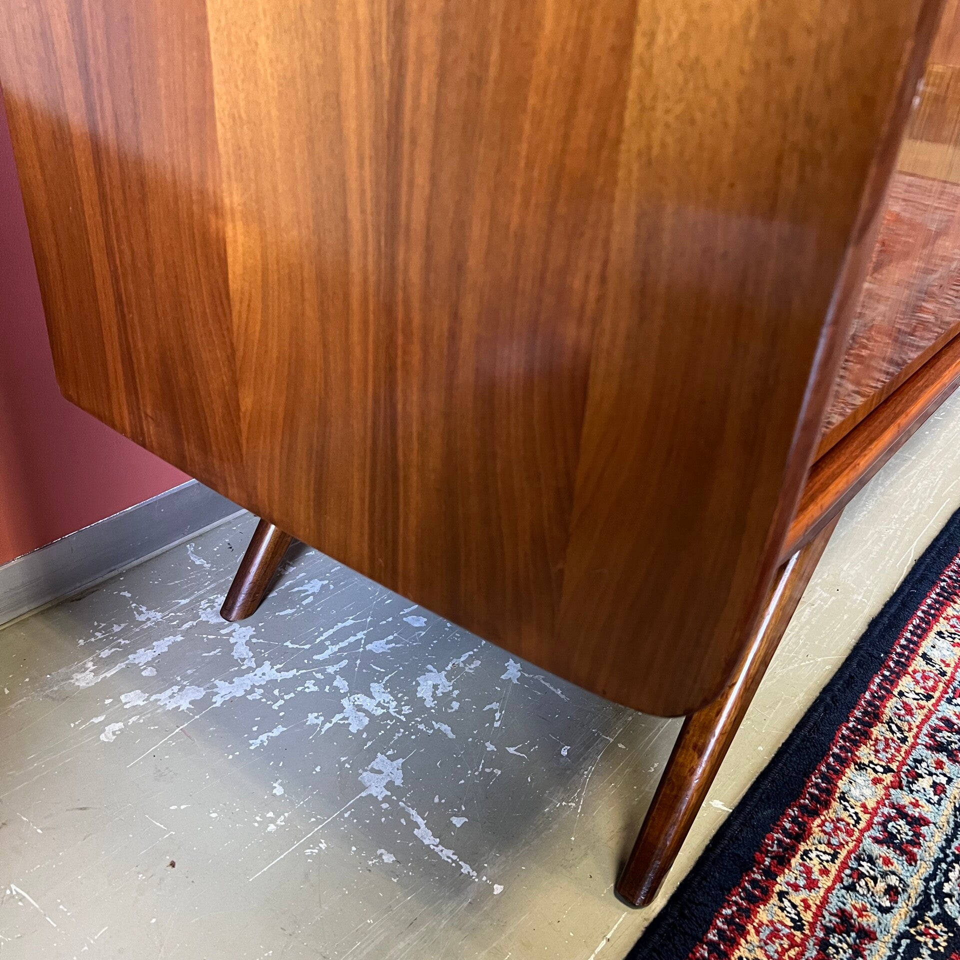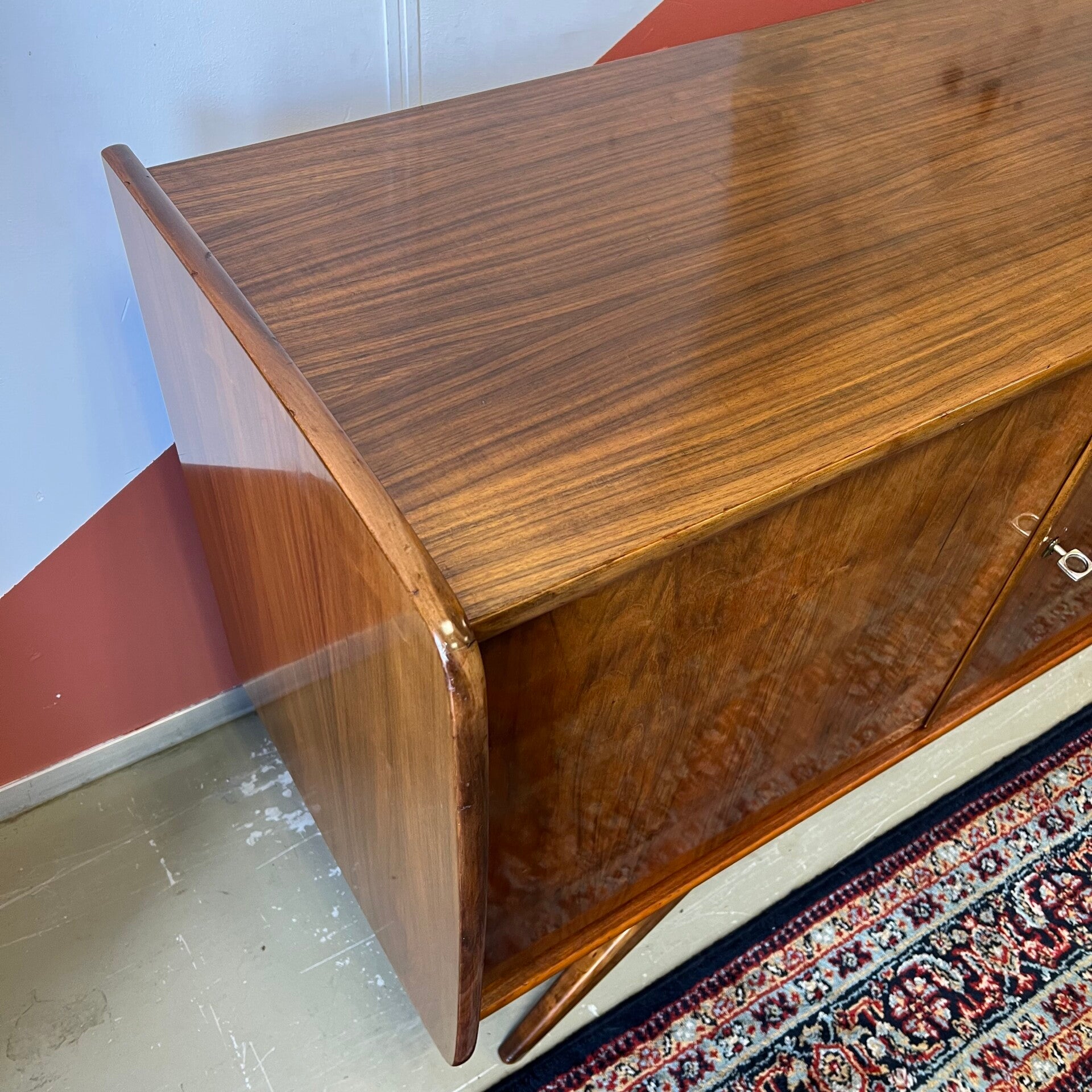 Mooi model vintage dressoir, afgewerkt met een glans en op slanke schuine poten.