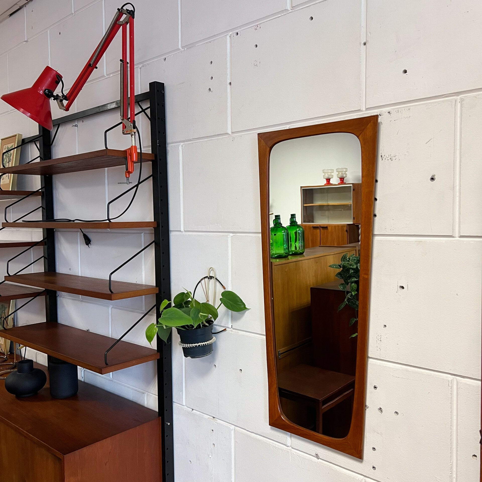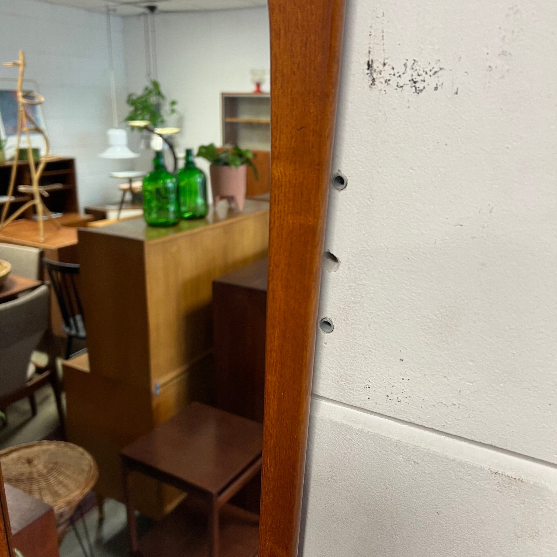 Prachtige vintage spiegel met teakhouten frame.