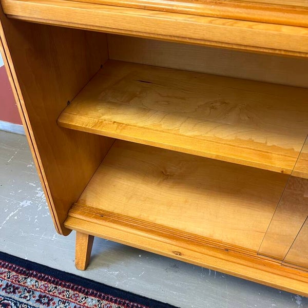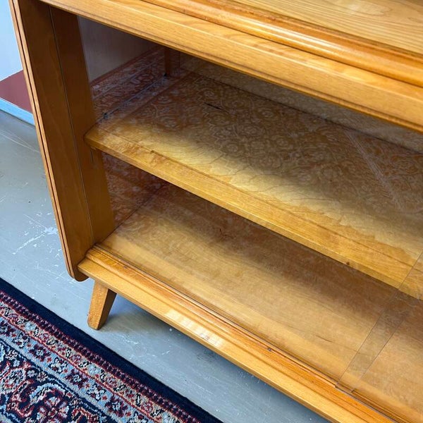 Het meubel heeft boven-, en onderin 2 glazen schuifdeuren met erachter een uitneembare plank.