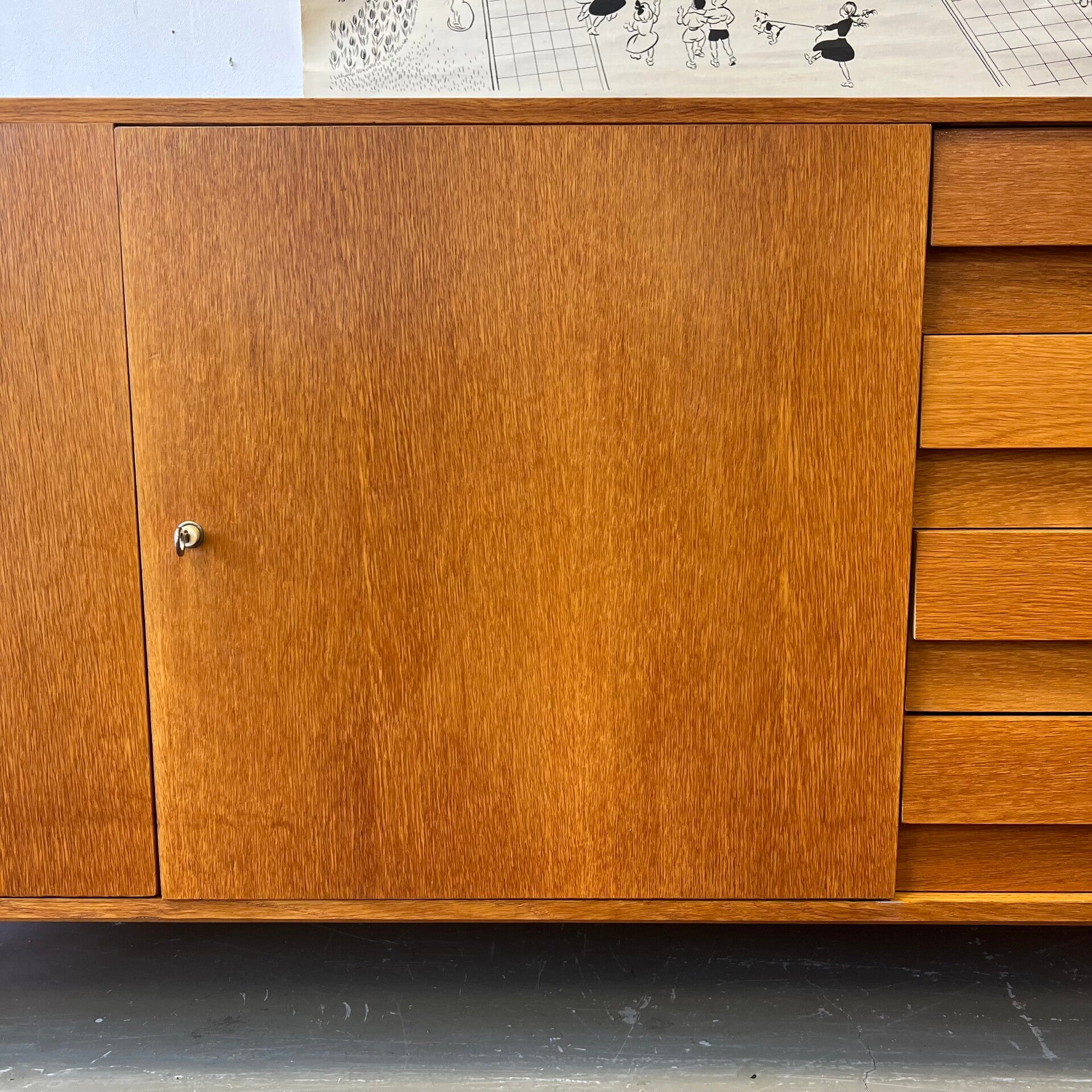 Mooi en bijzonder vintage dressoir, sideboard in eiken (fineer).