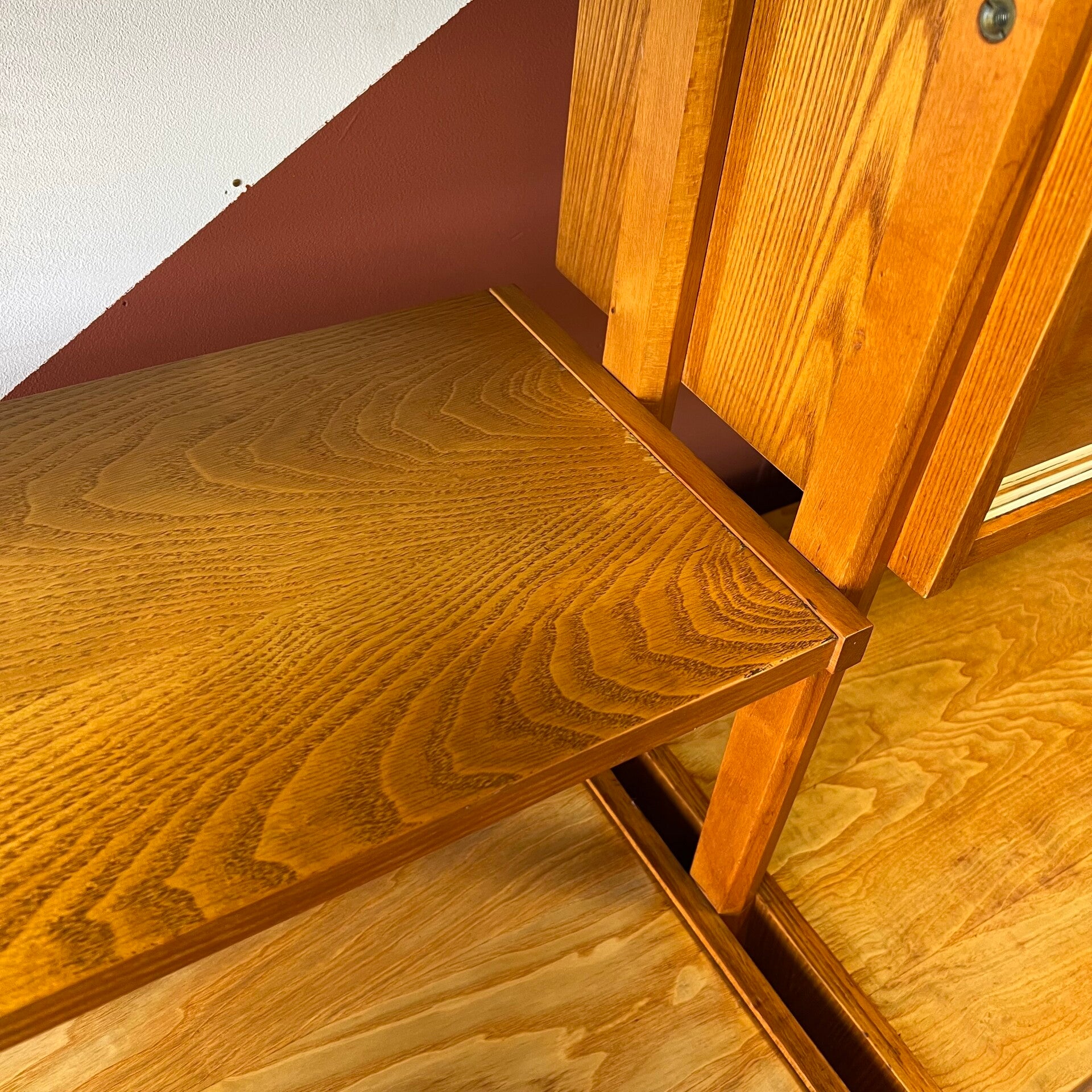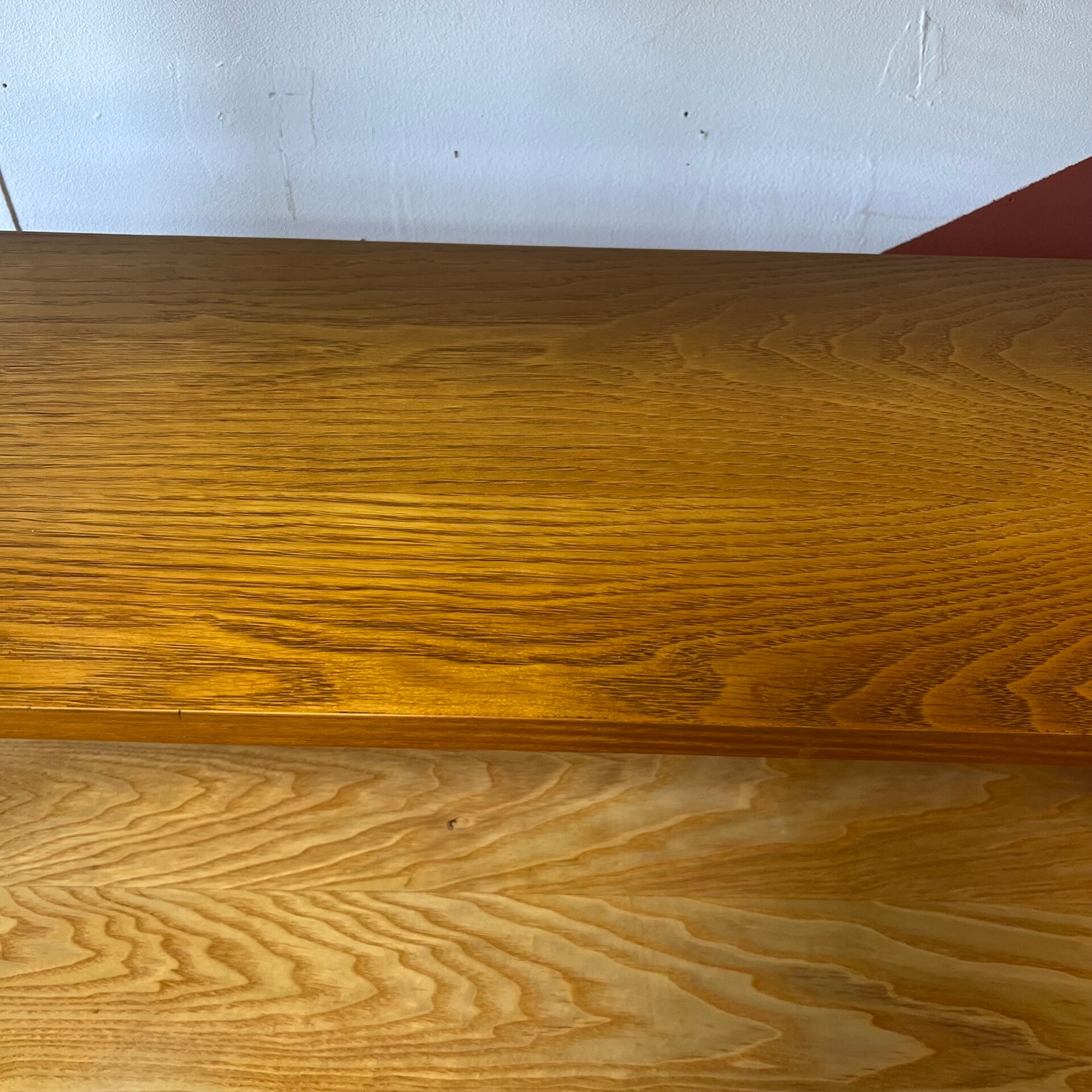 Uitgevoerd in een combinatie van eiken, essen en beuken (fineer).