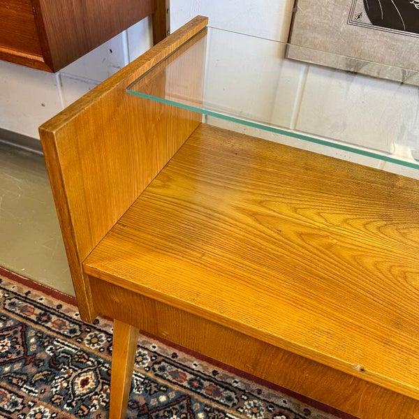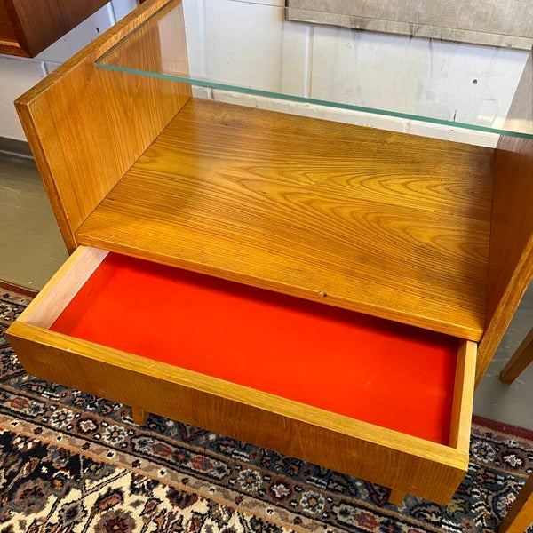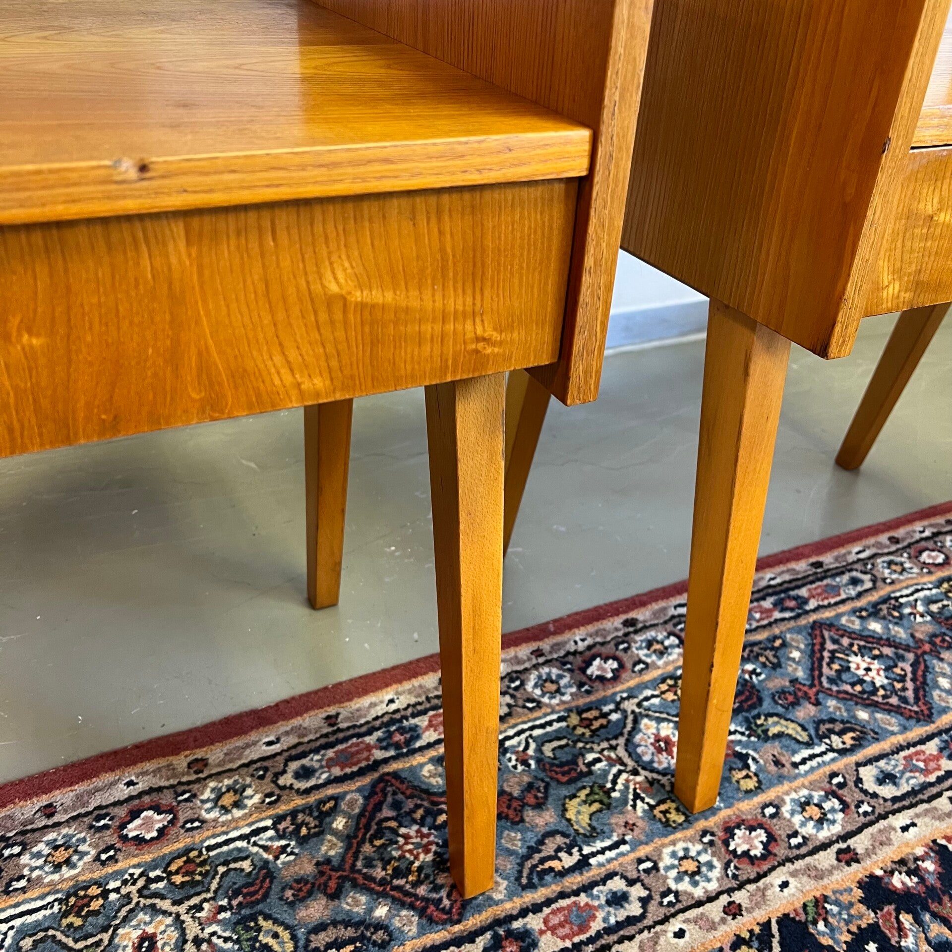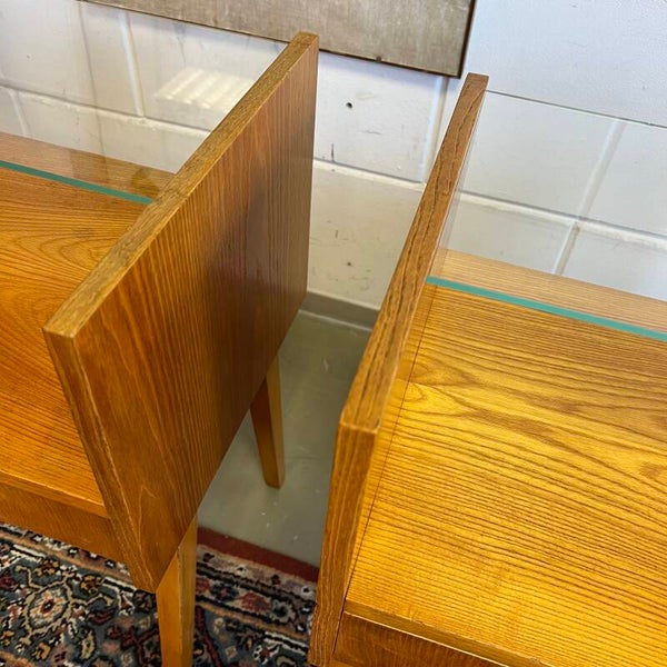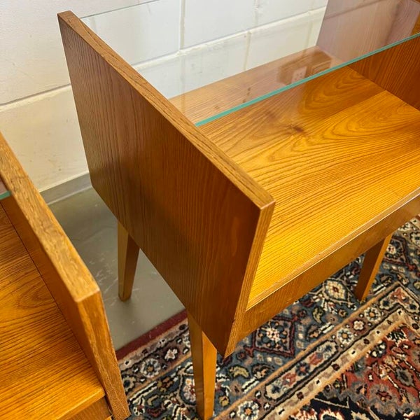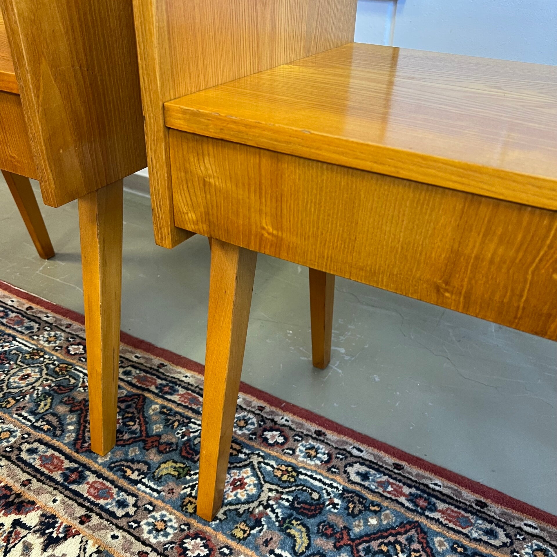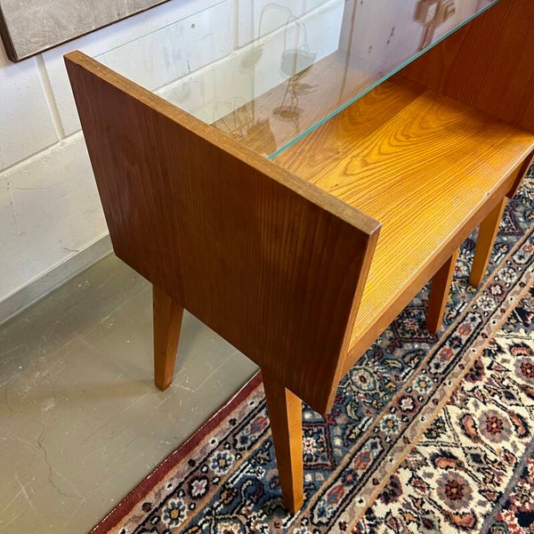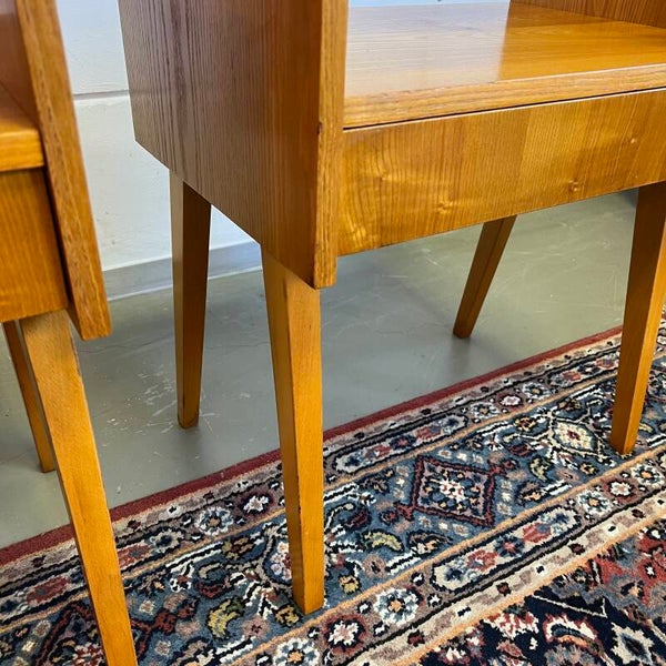 2 leuke vintage (nacht) kastjes met glazen plaat en hoge slanke poten.