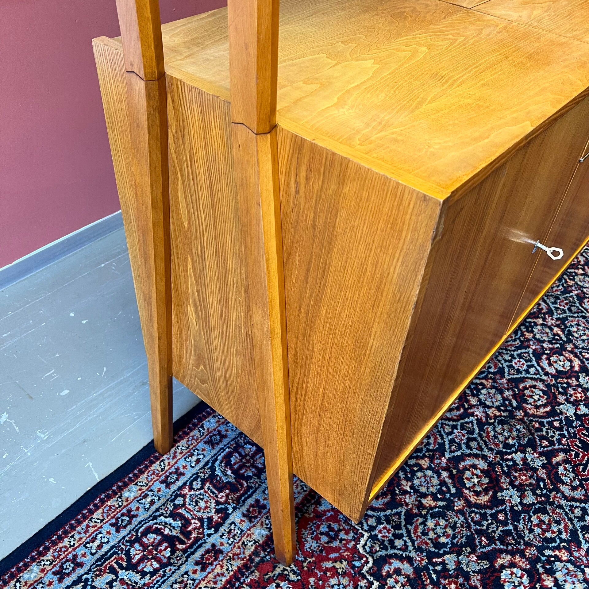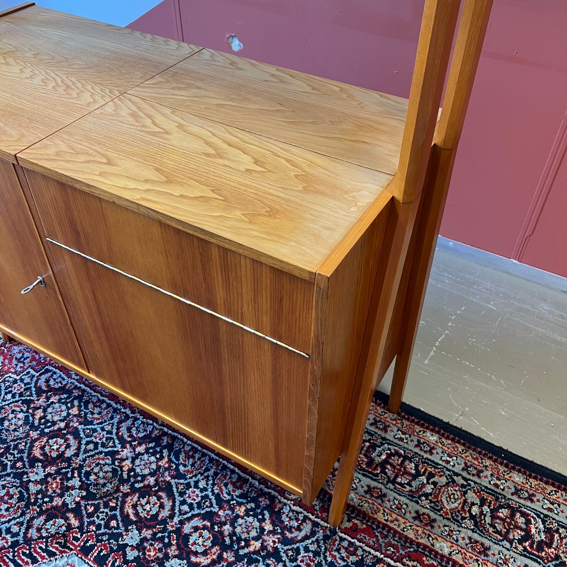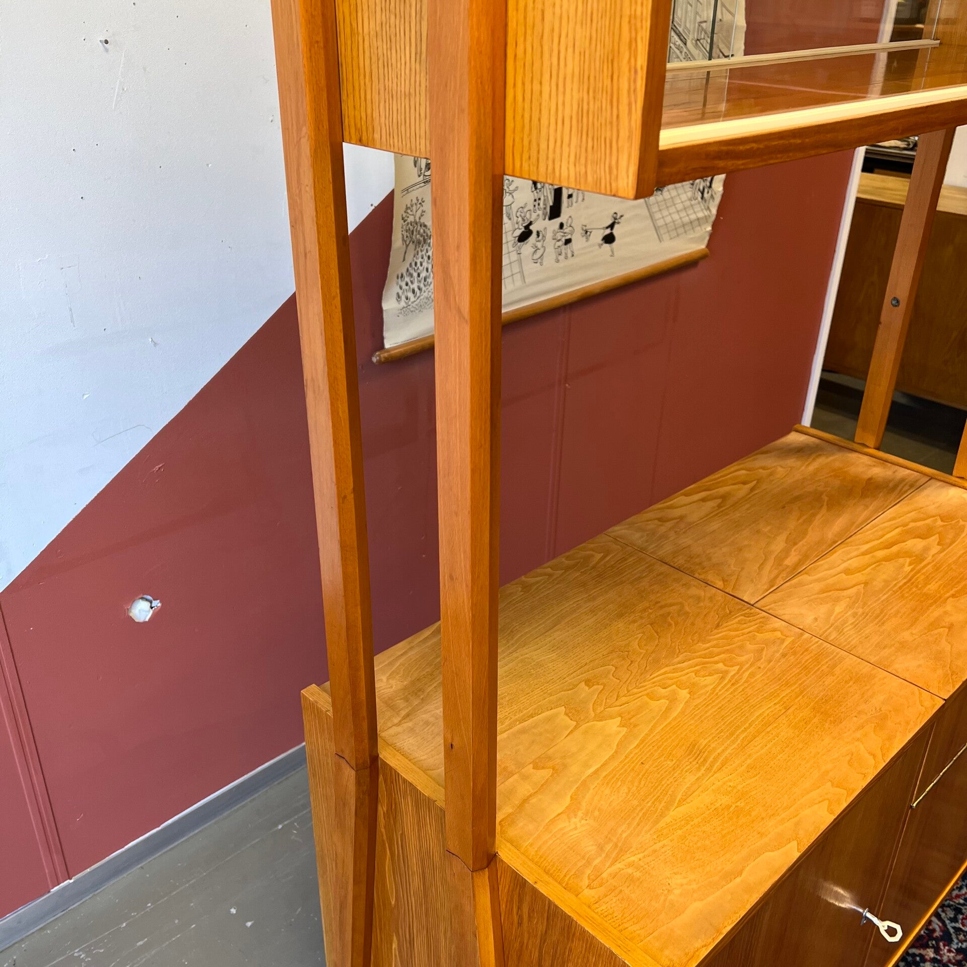 Mooi karakteristiek vintage roomdivider of wandmeubel uit Oost-Europa. Vrijstaand.