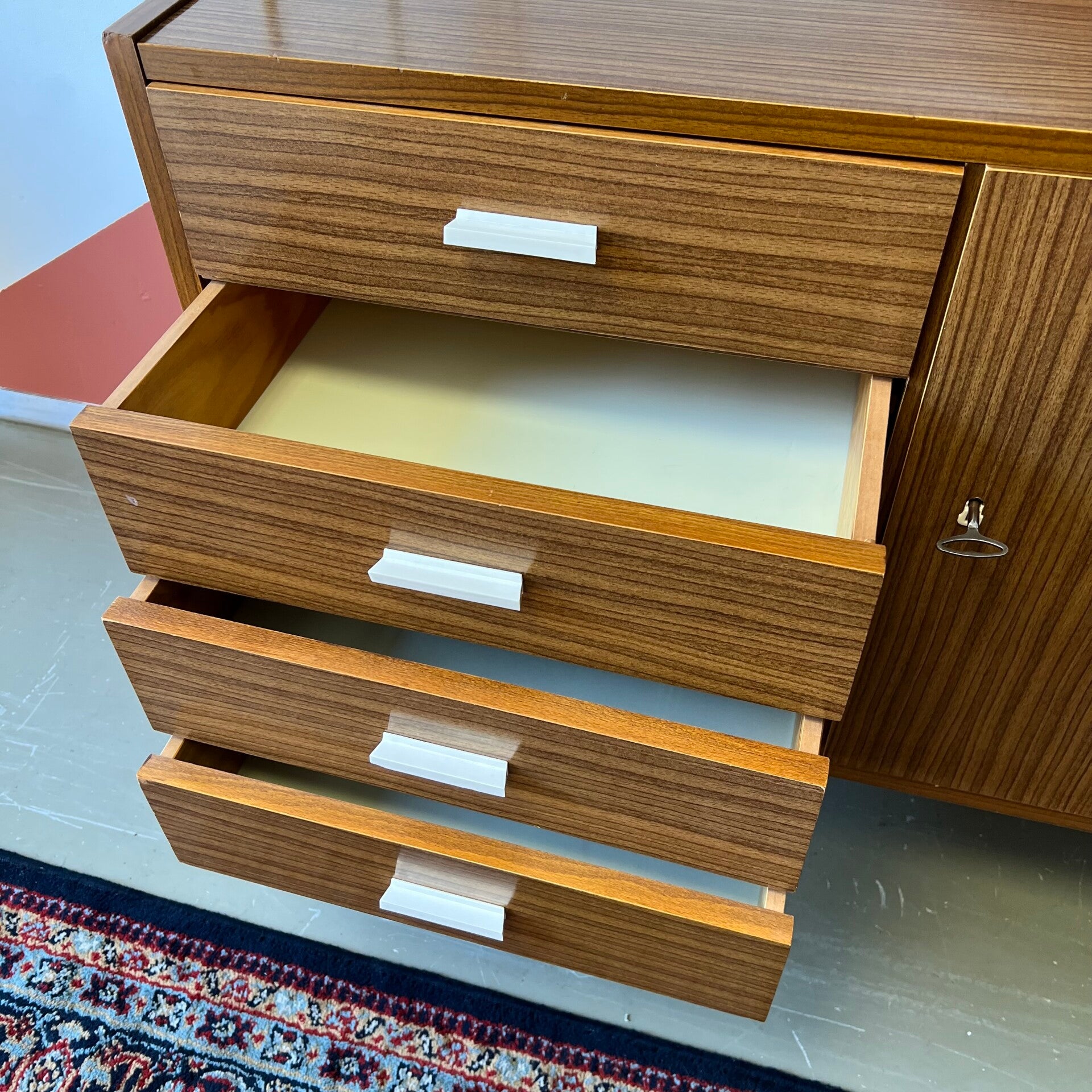 1x gesloten kast met slot (sleutel aanwezig), uitneembare plank en 4 ruime lades