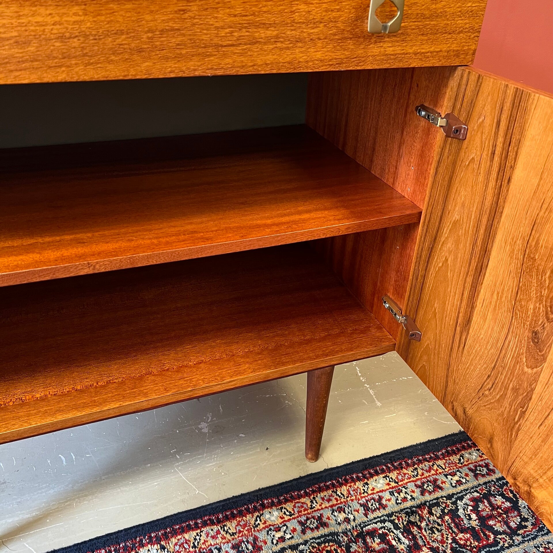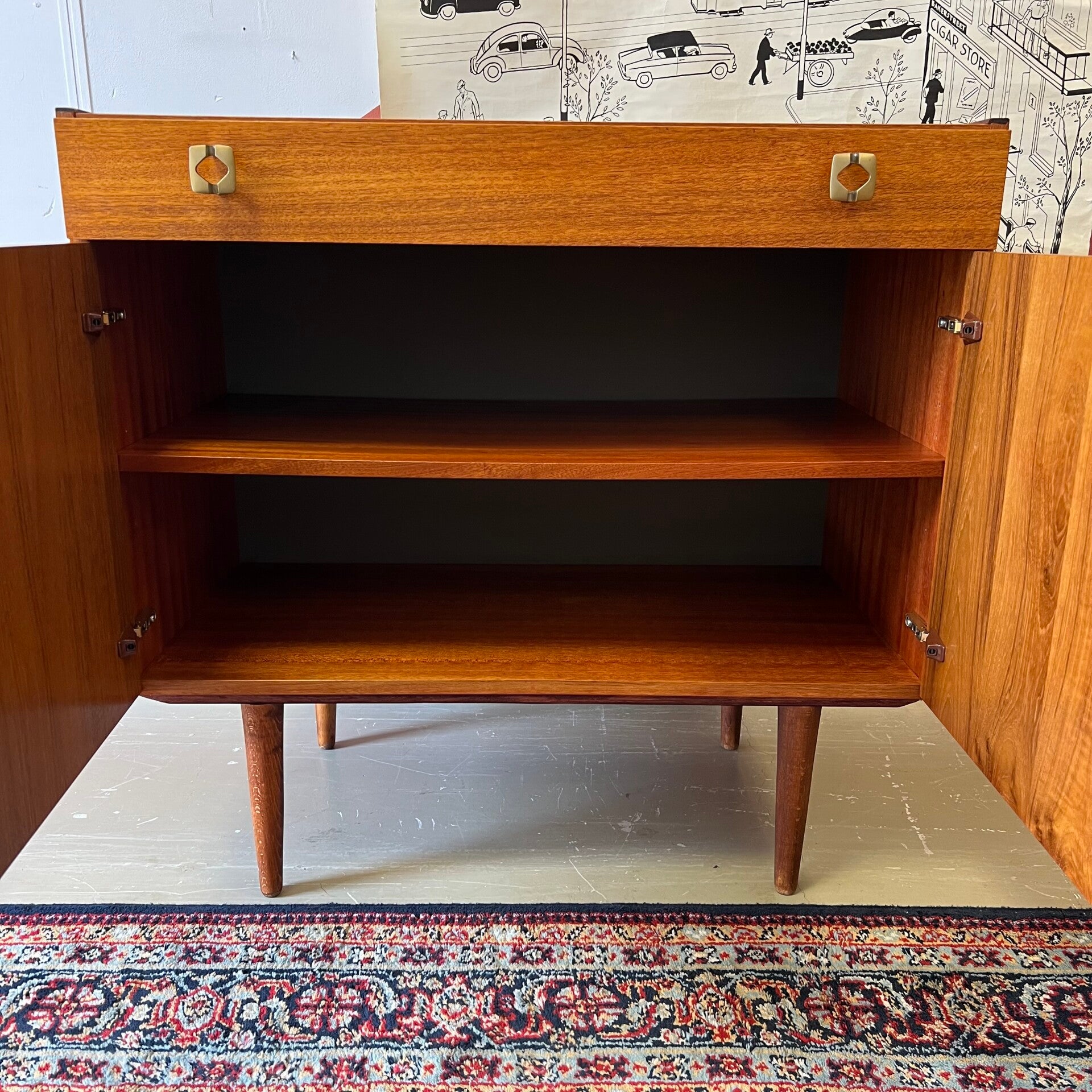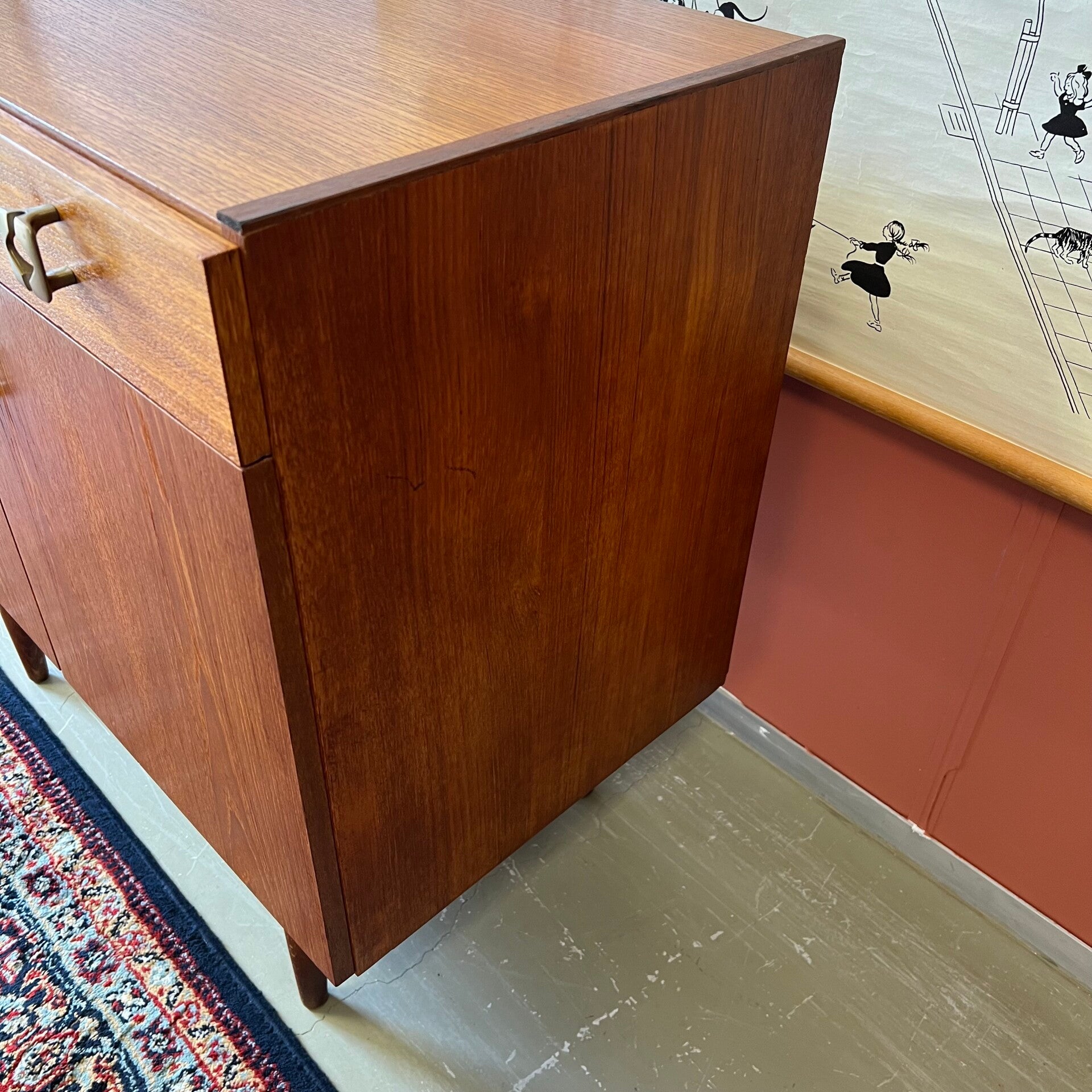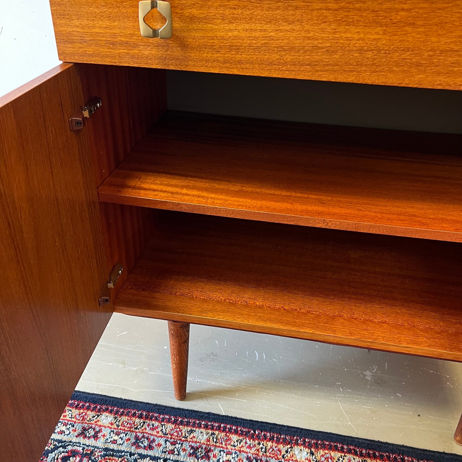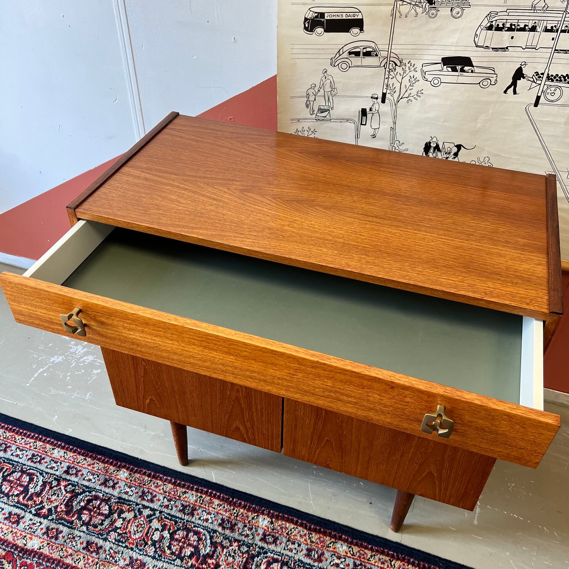 Leuk vintage Scandinavisch kastje of DIY badkamermeubel op conische poten.