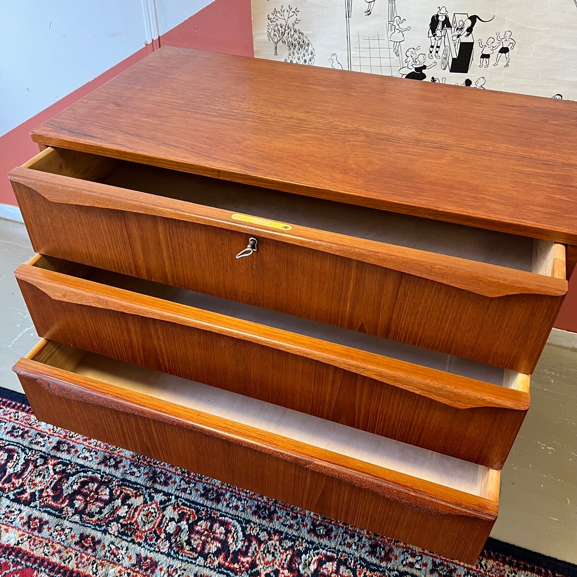 De bovenste lade heeft een werkend slot (sleutel aanwezig).