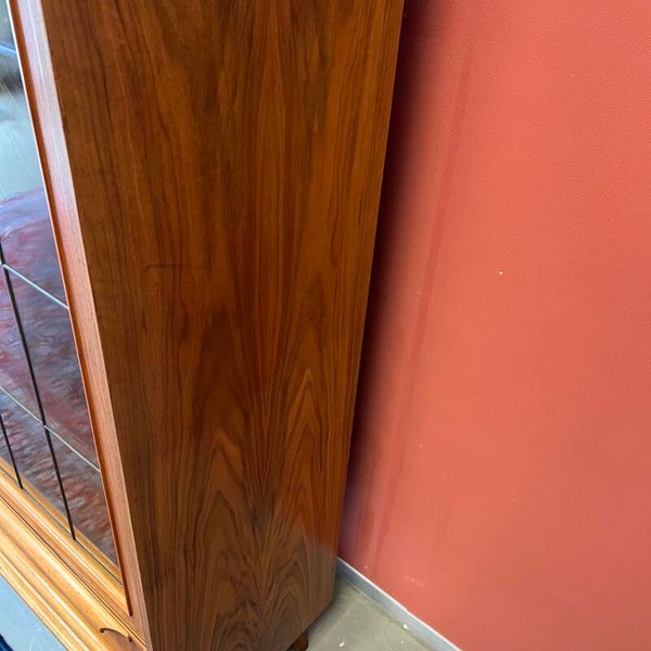 Rechtsboven een vitrinedeel met glazen ruitjes en glazen uitneembare platen. De platen zijn wel aanwezig, maar niet op de foto.