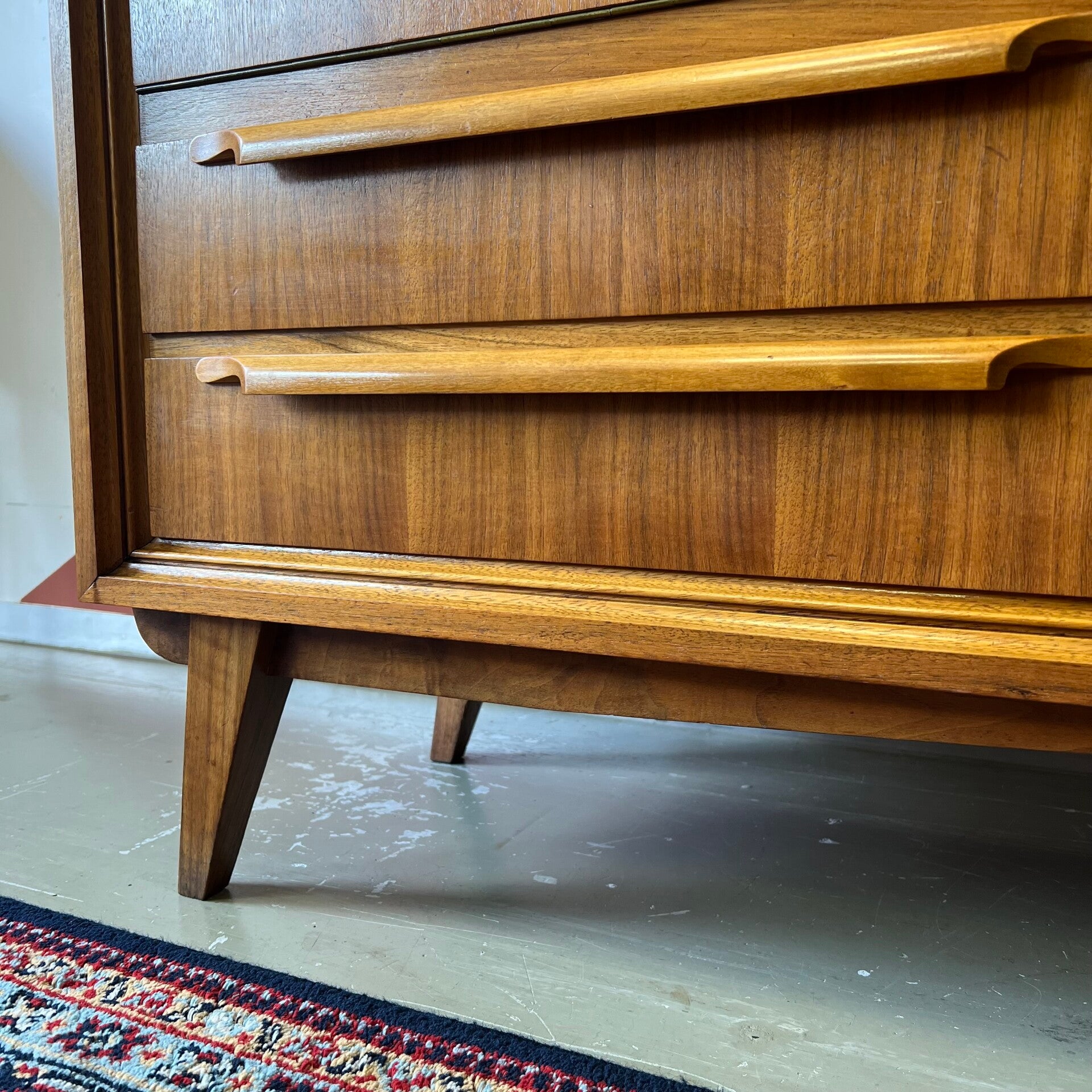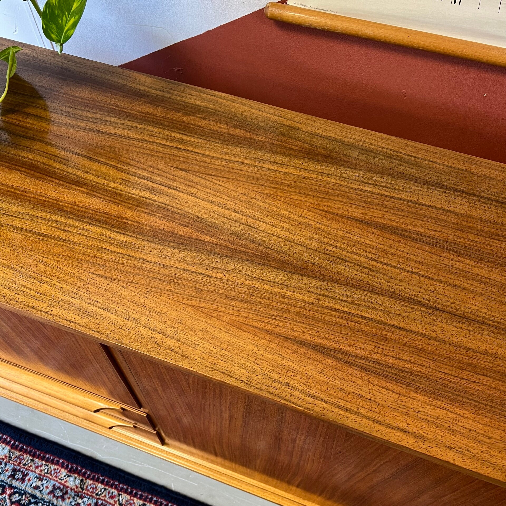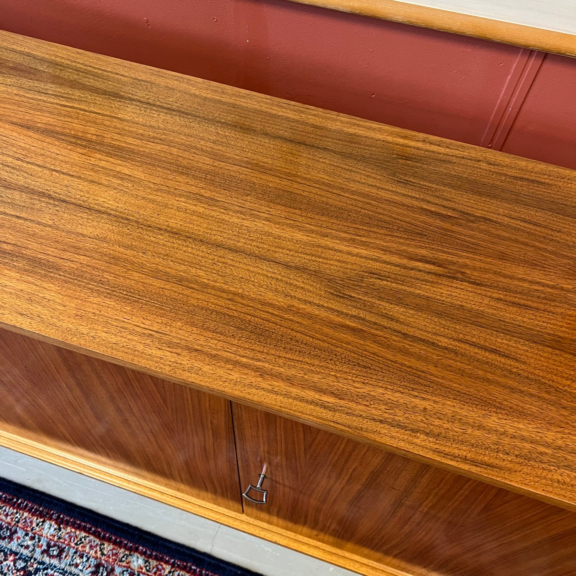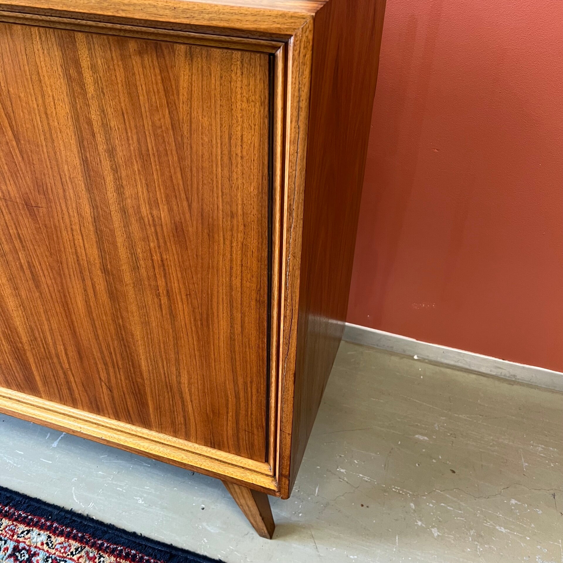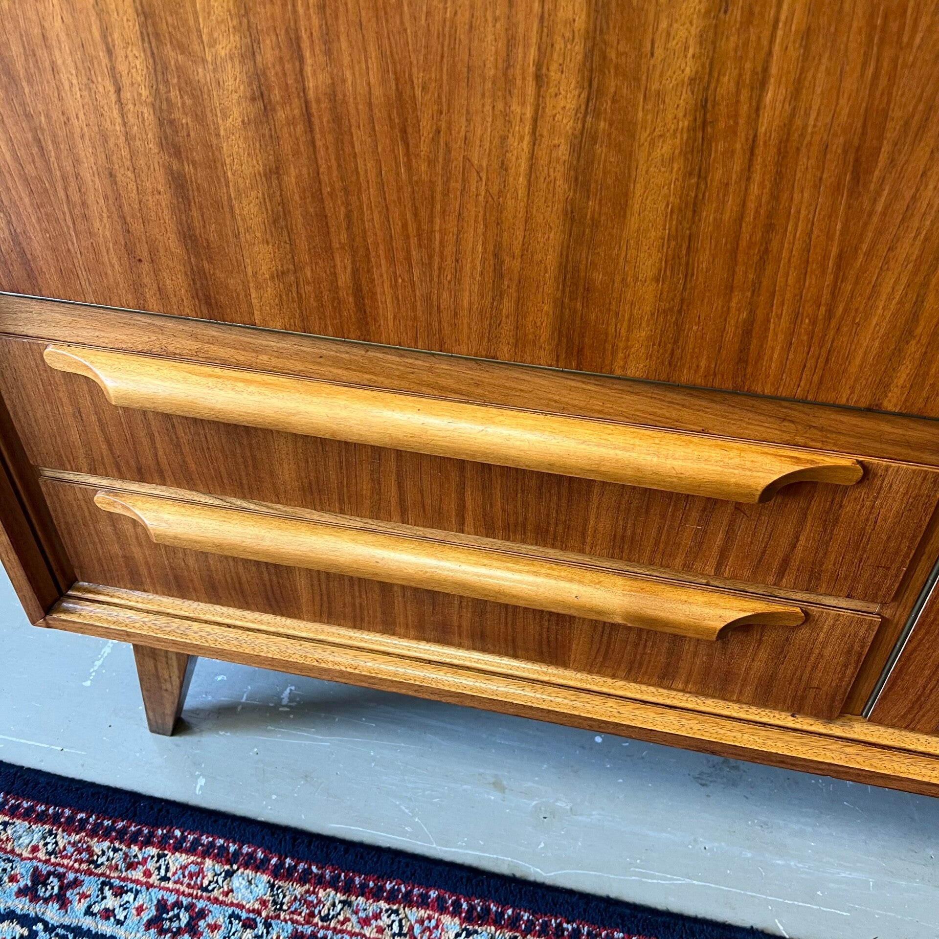 Mooi vintage dressoir op schuine pootjes, uitgevoerd in notenhout (fineer).