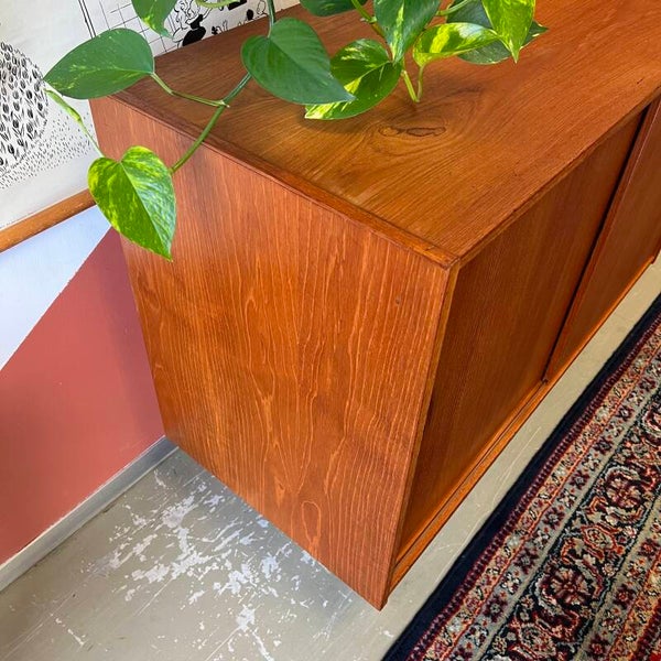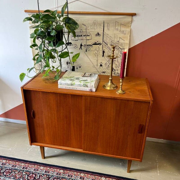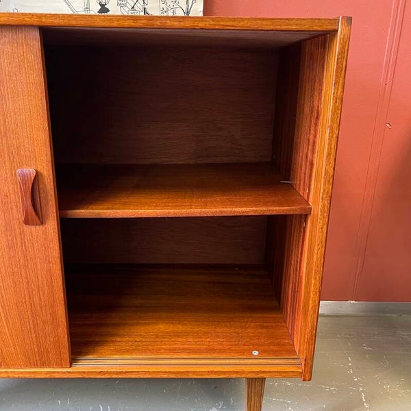 Mooi vintage Deens schuifdeurkastje, TV-, audiomeubel of DIY badkamermeubel.