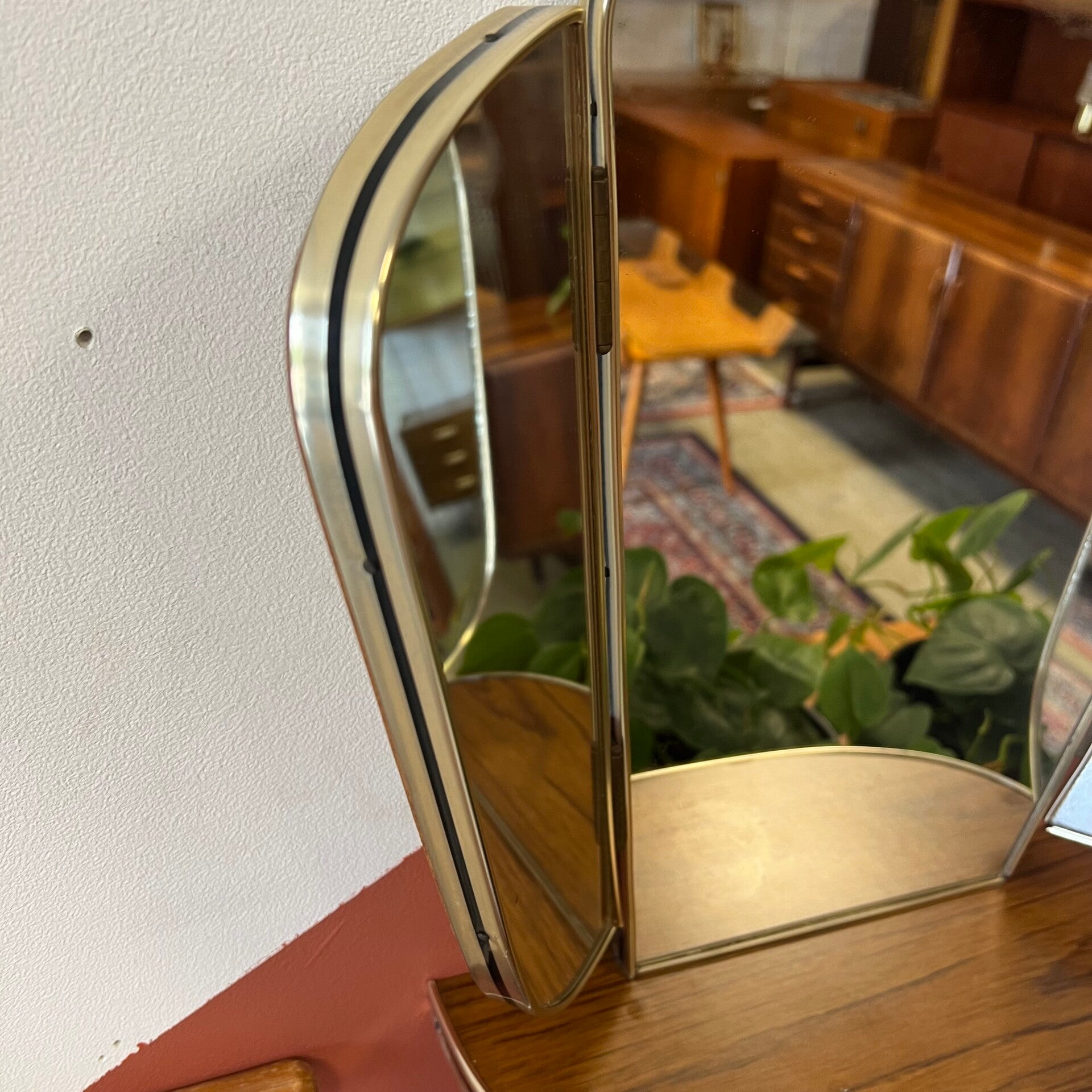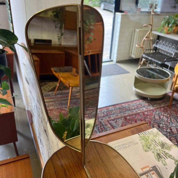 Leuke vintage kapspiegel met 3-luik spiegel en planchette.