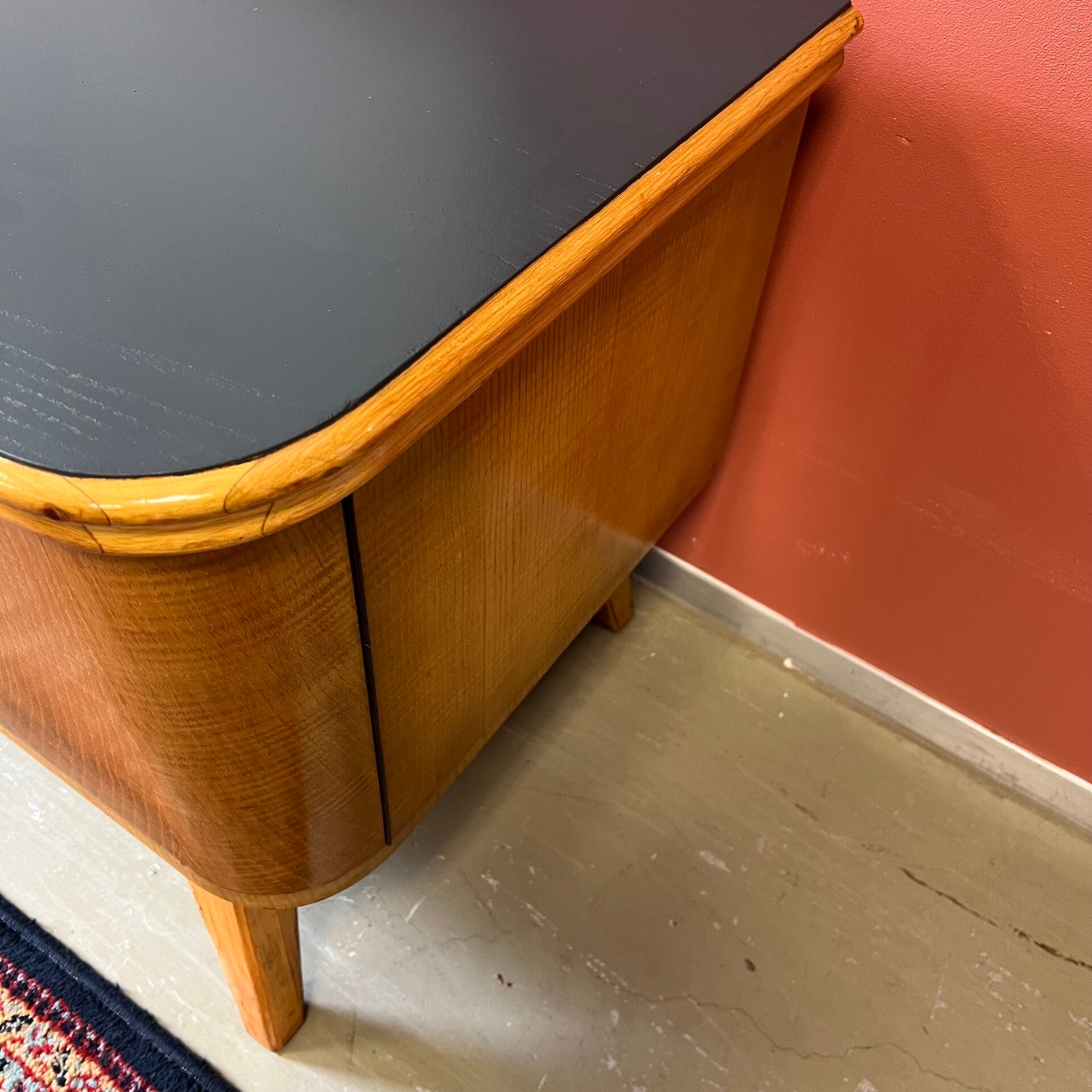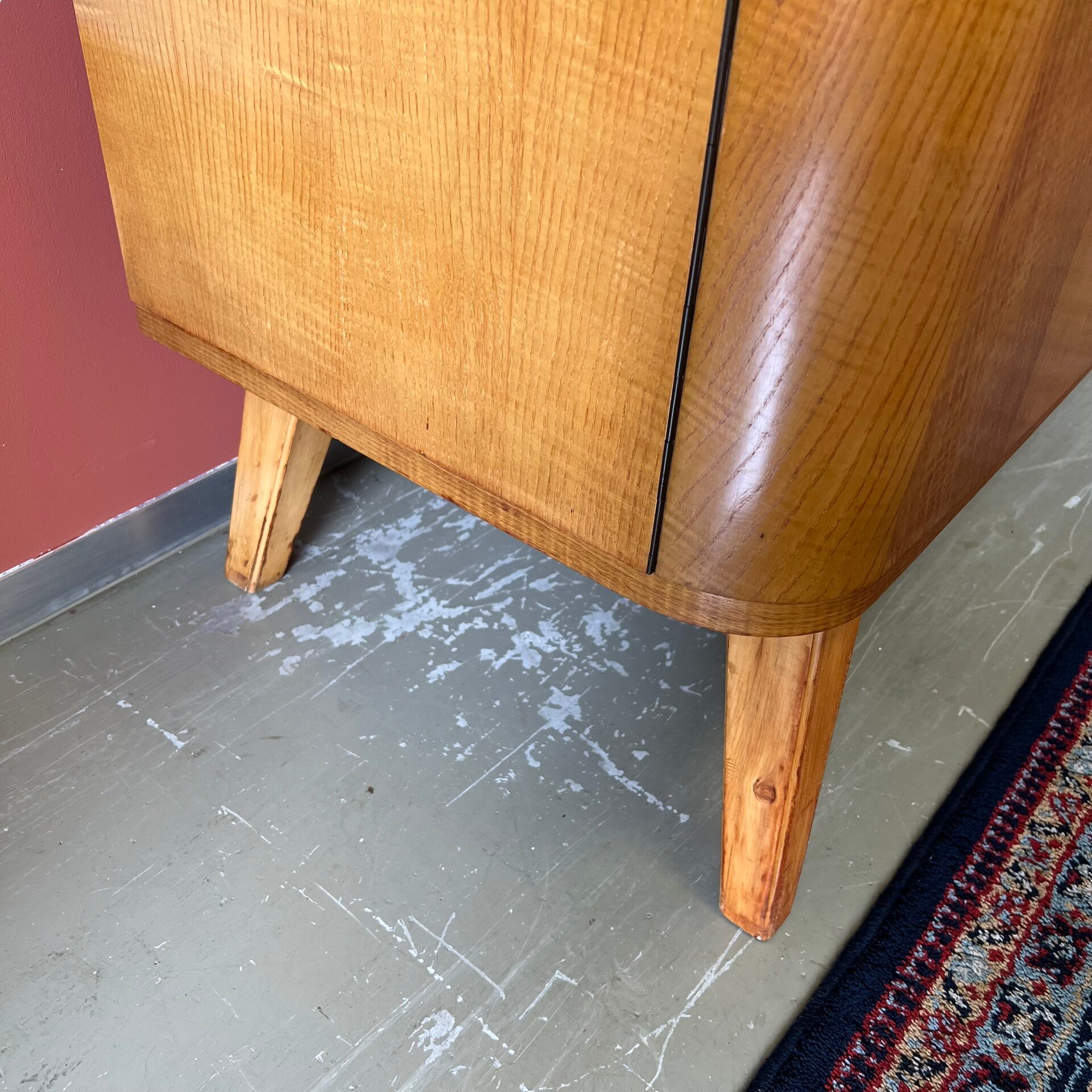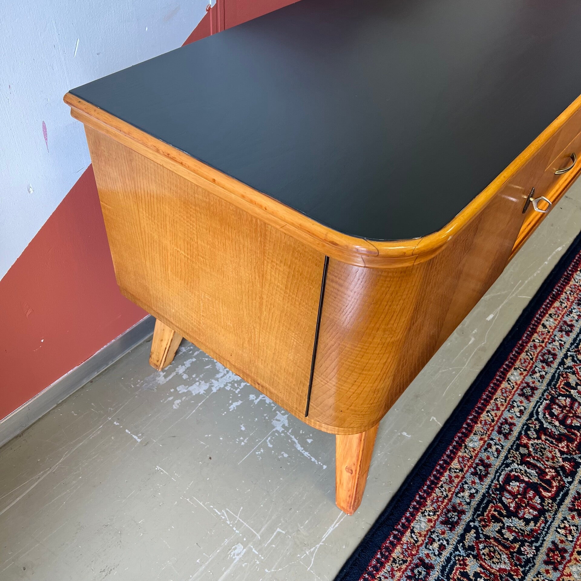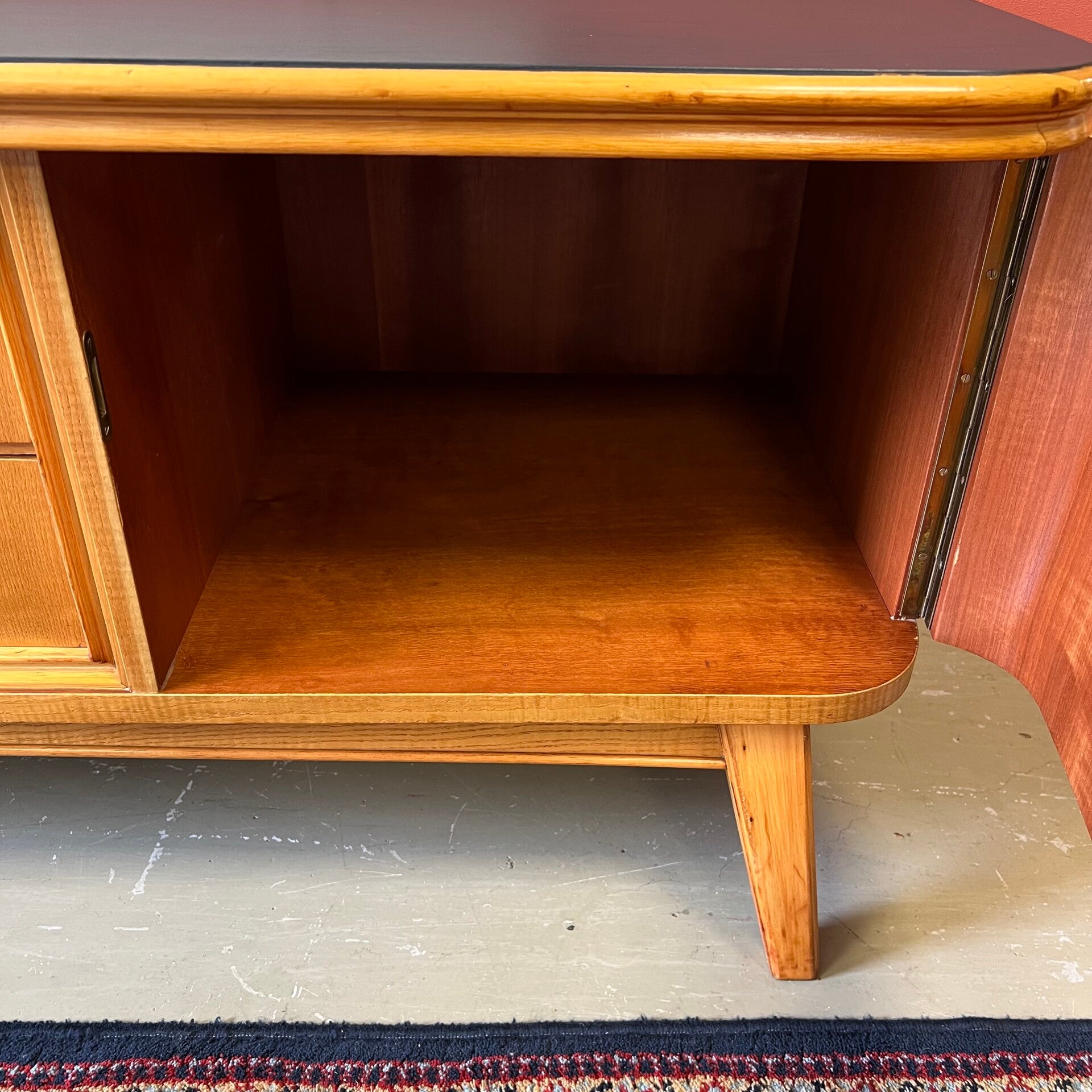 Prachtig en uniek vintage dressoir, lowboard of sideboard op schuine poten.