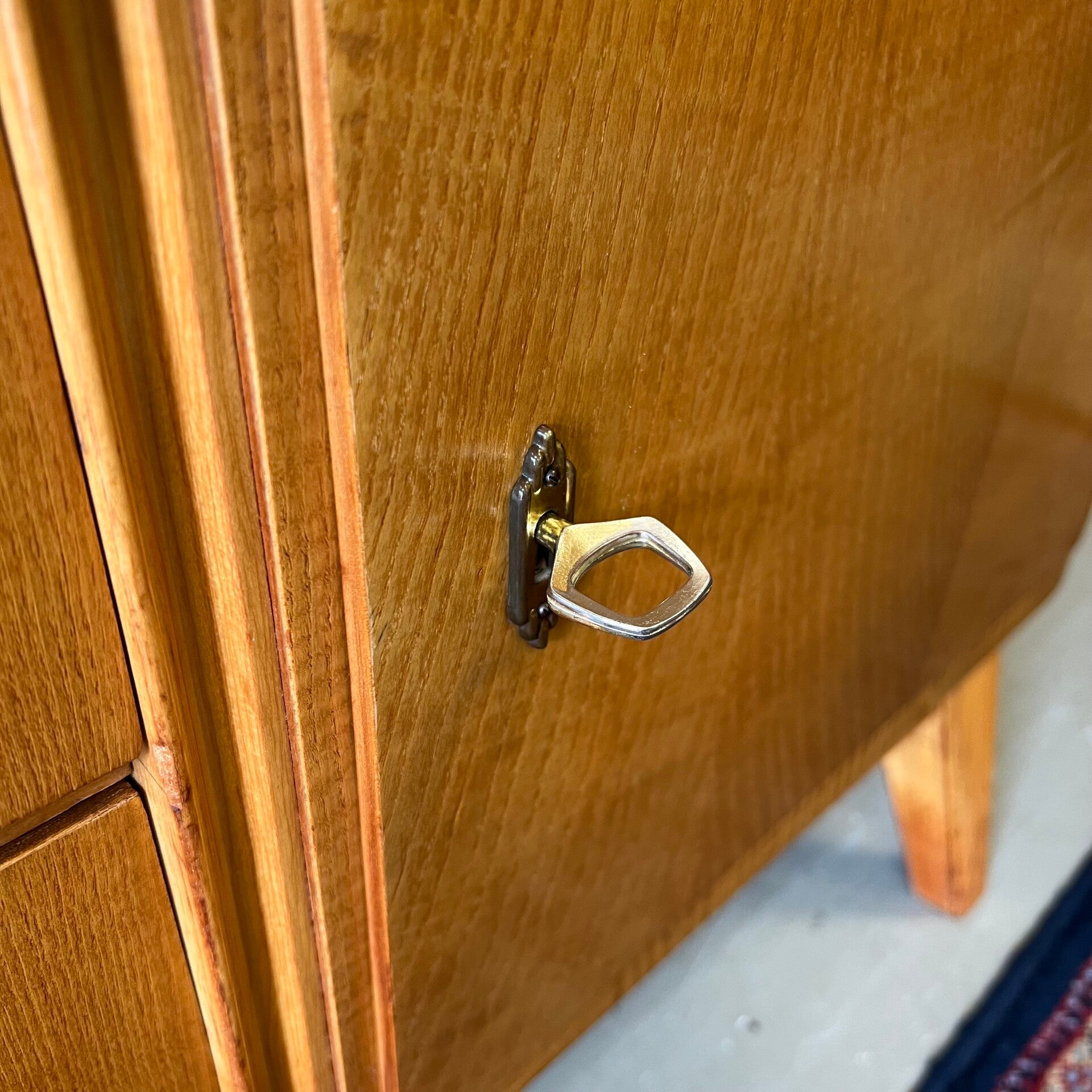 Het meubel heeft aan weerszijden een openslaande deur met slot (sleutels aanwezig).