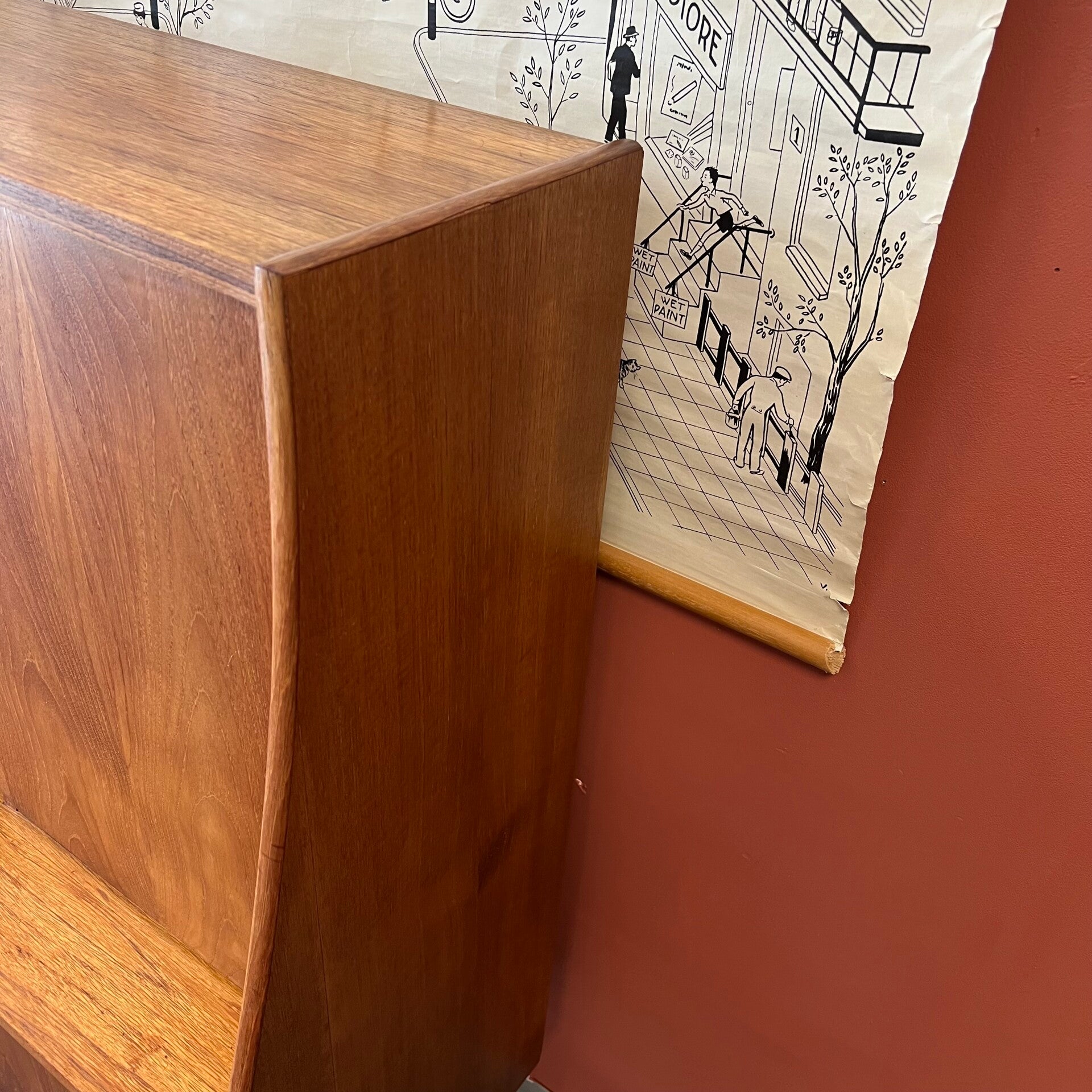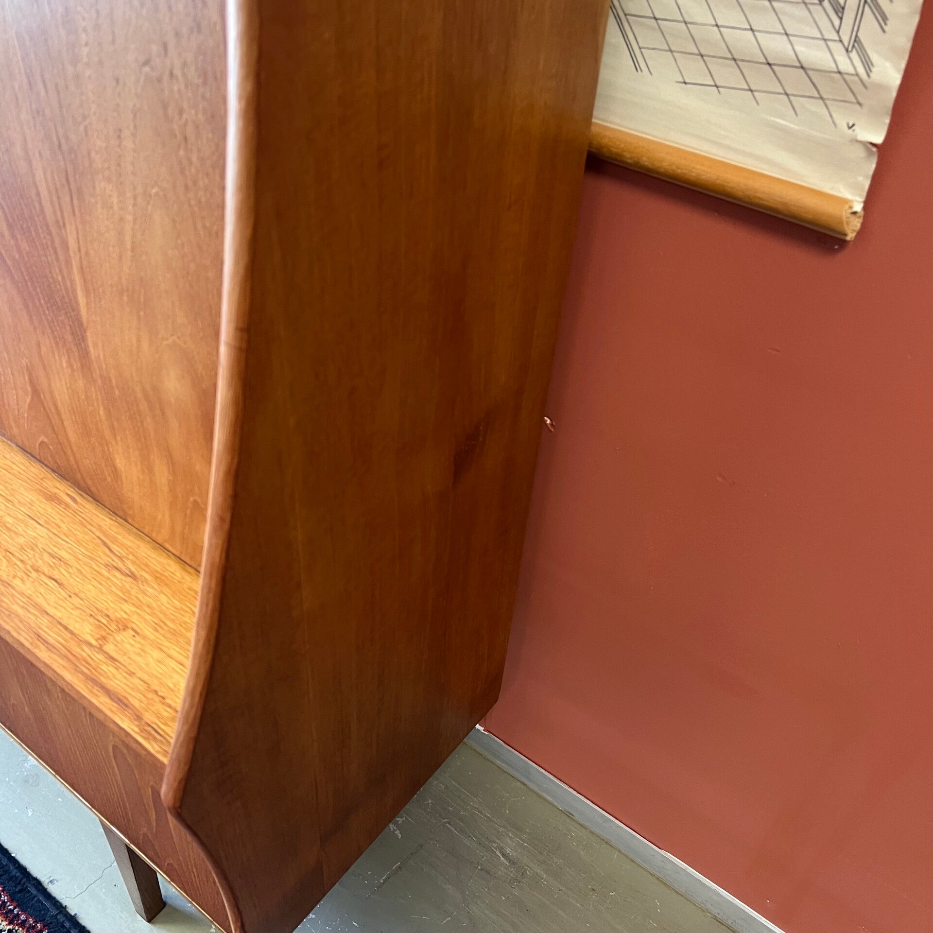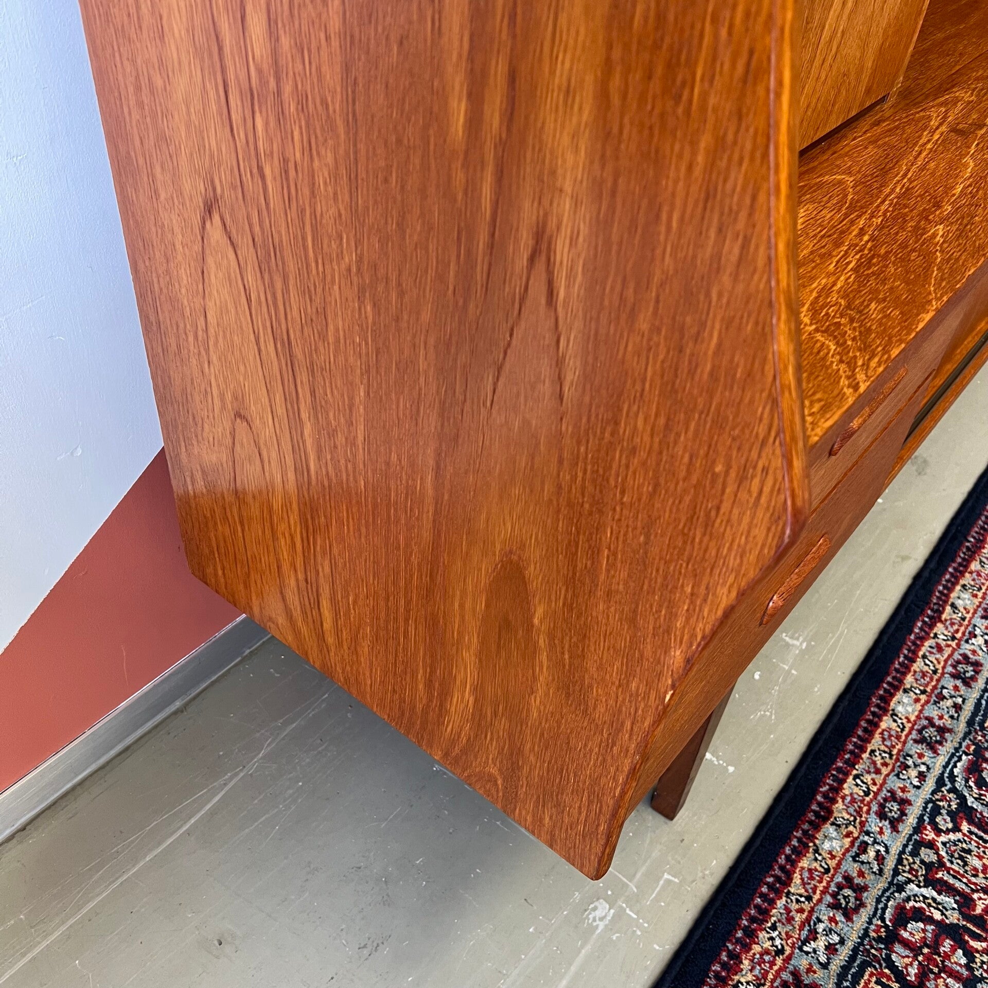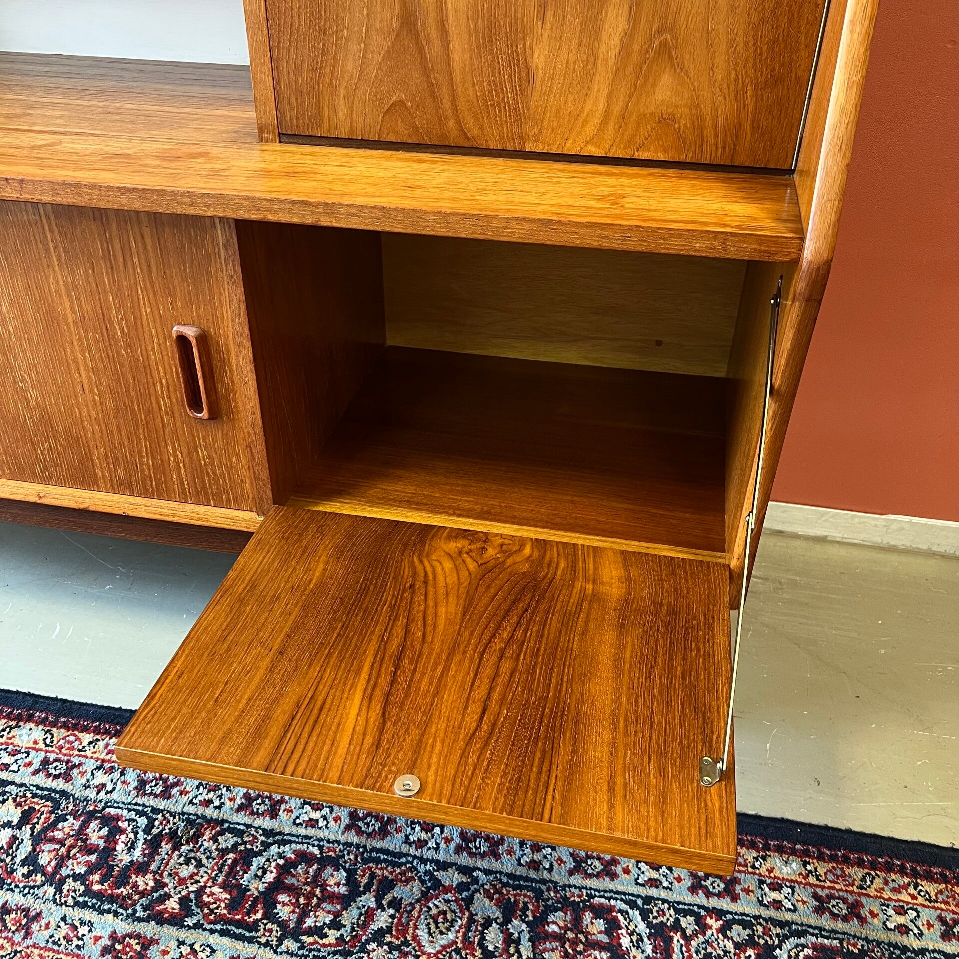 Mooie vintage buffetkast of highboard, uitgevoerd in teak (fineer).