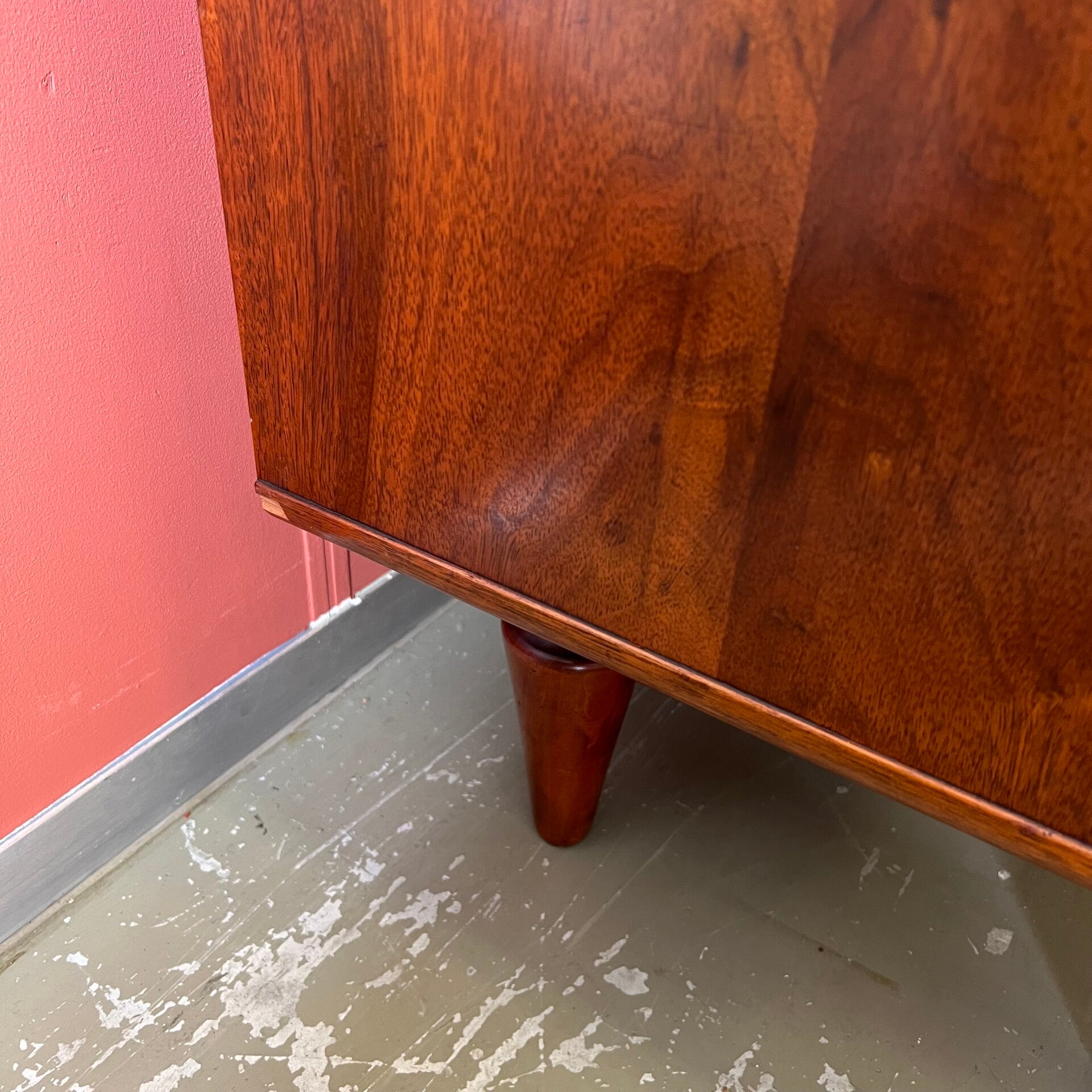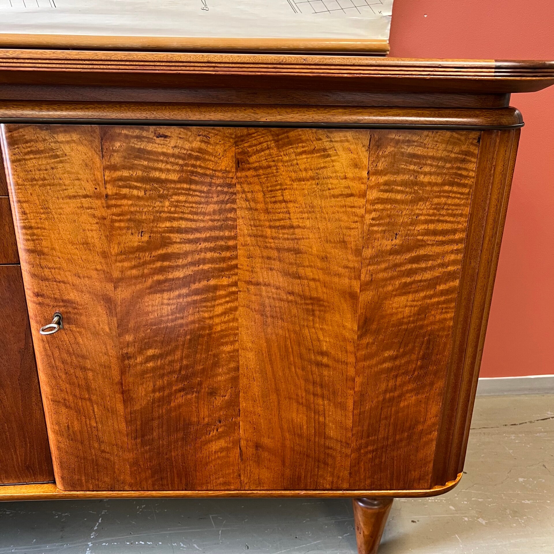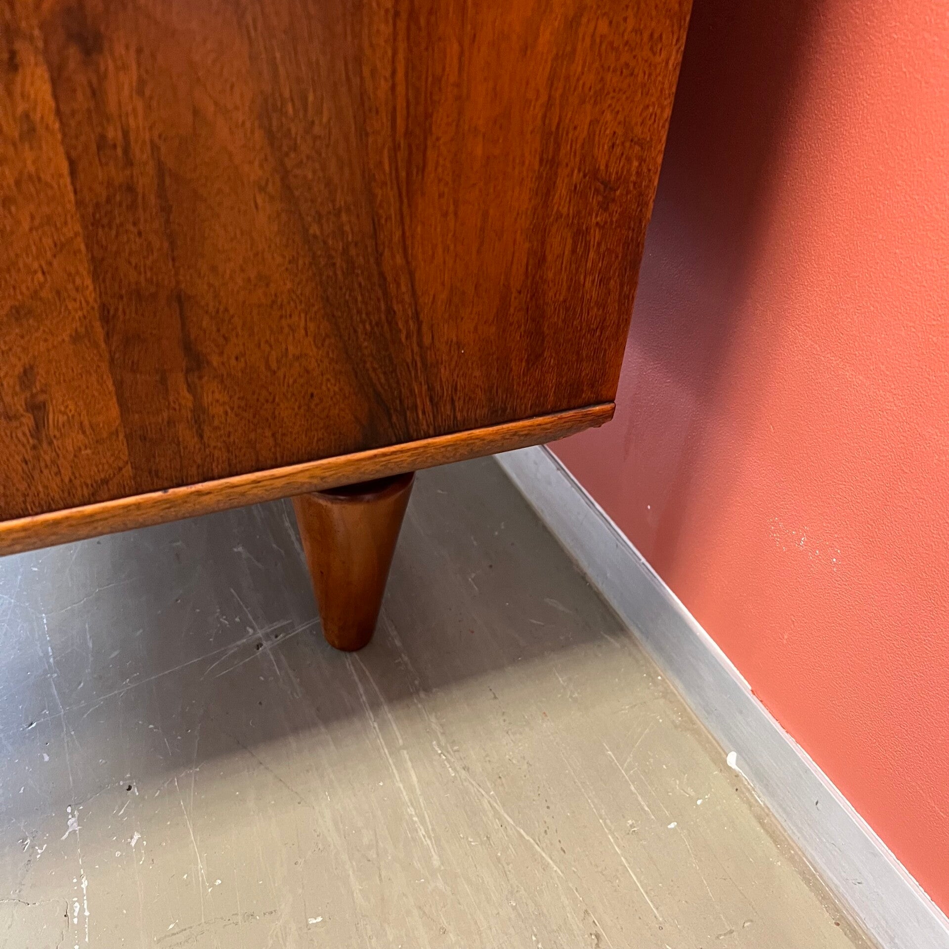 Prachtig notenhouten organisch dressoir of sideboard op conische poten.