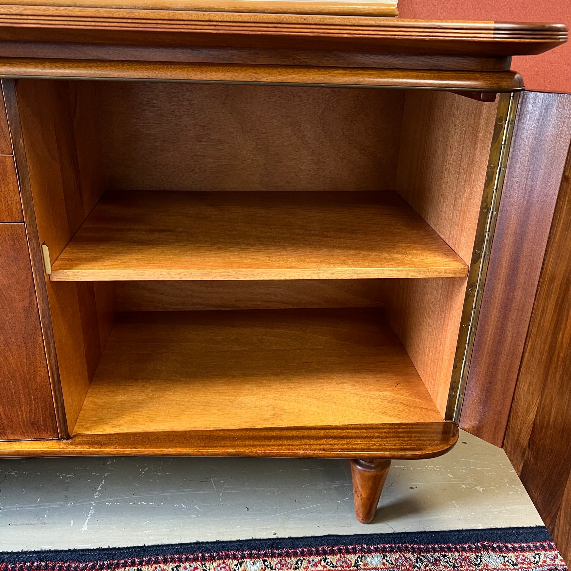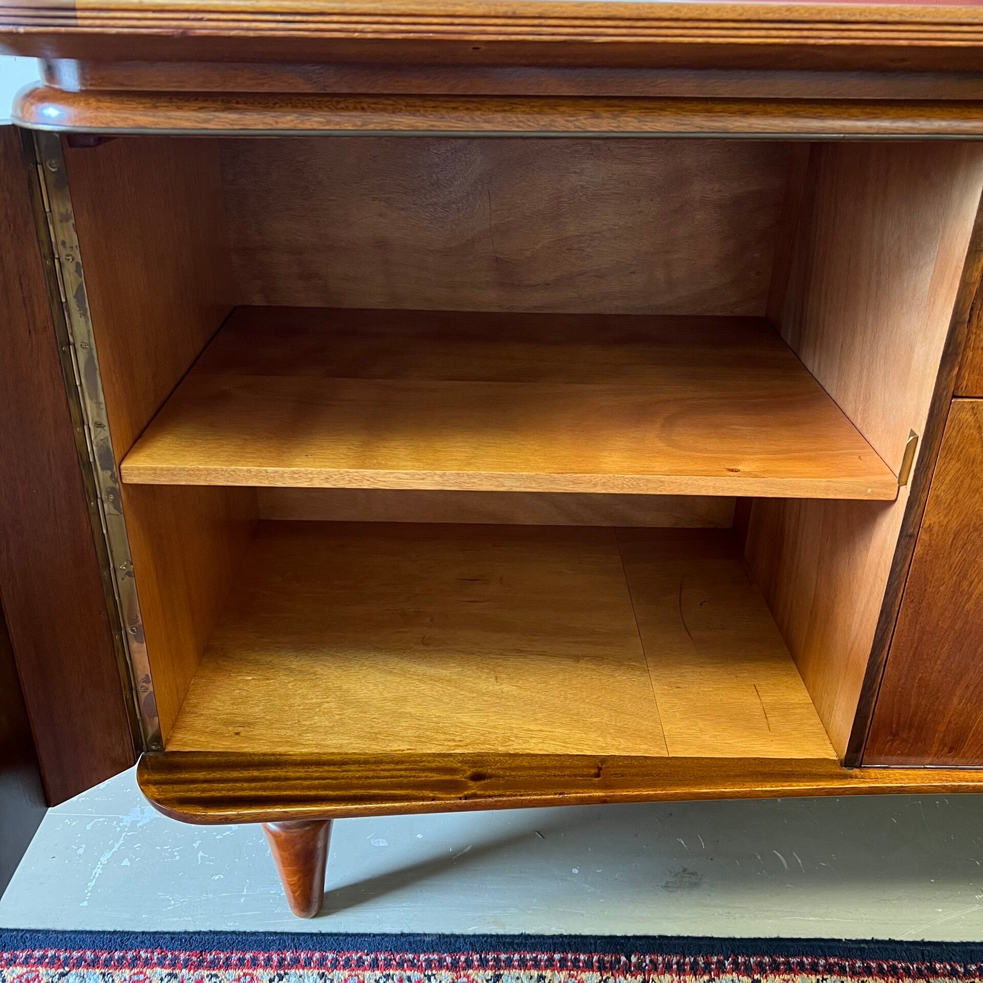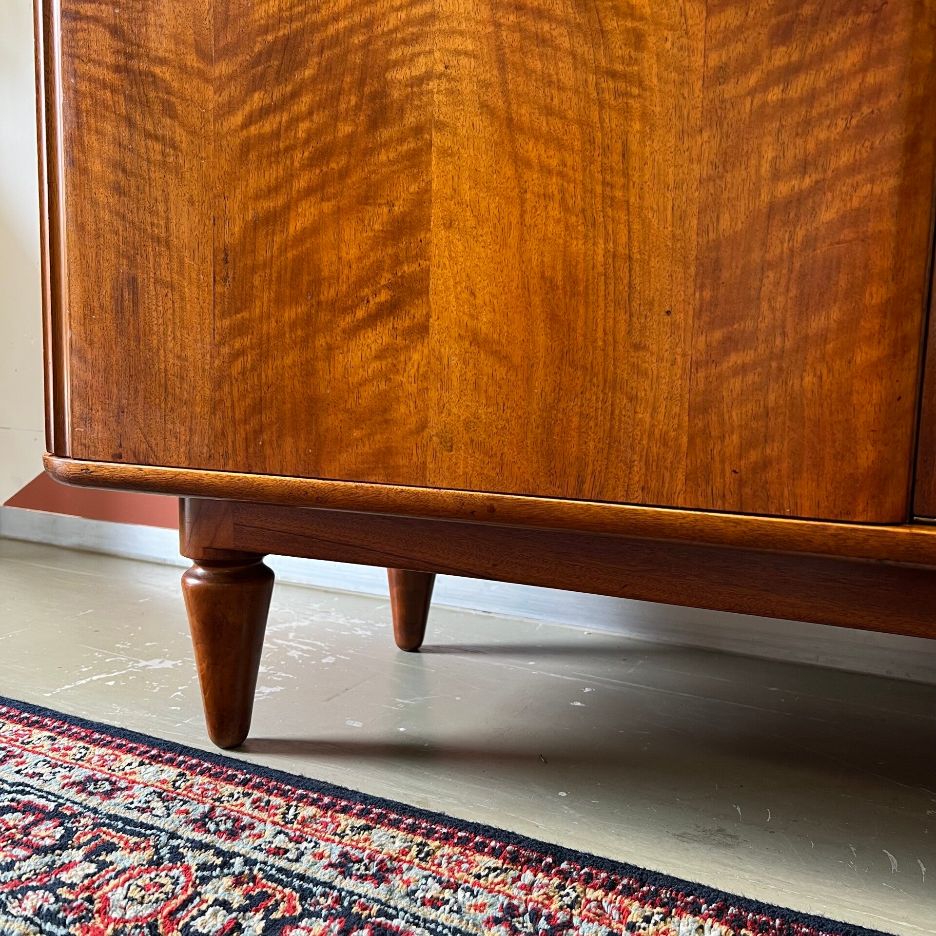 Prachtig notenhouten organisch dressoir of sideboard op conische poten.