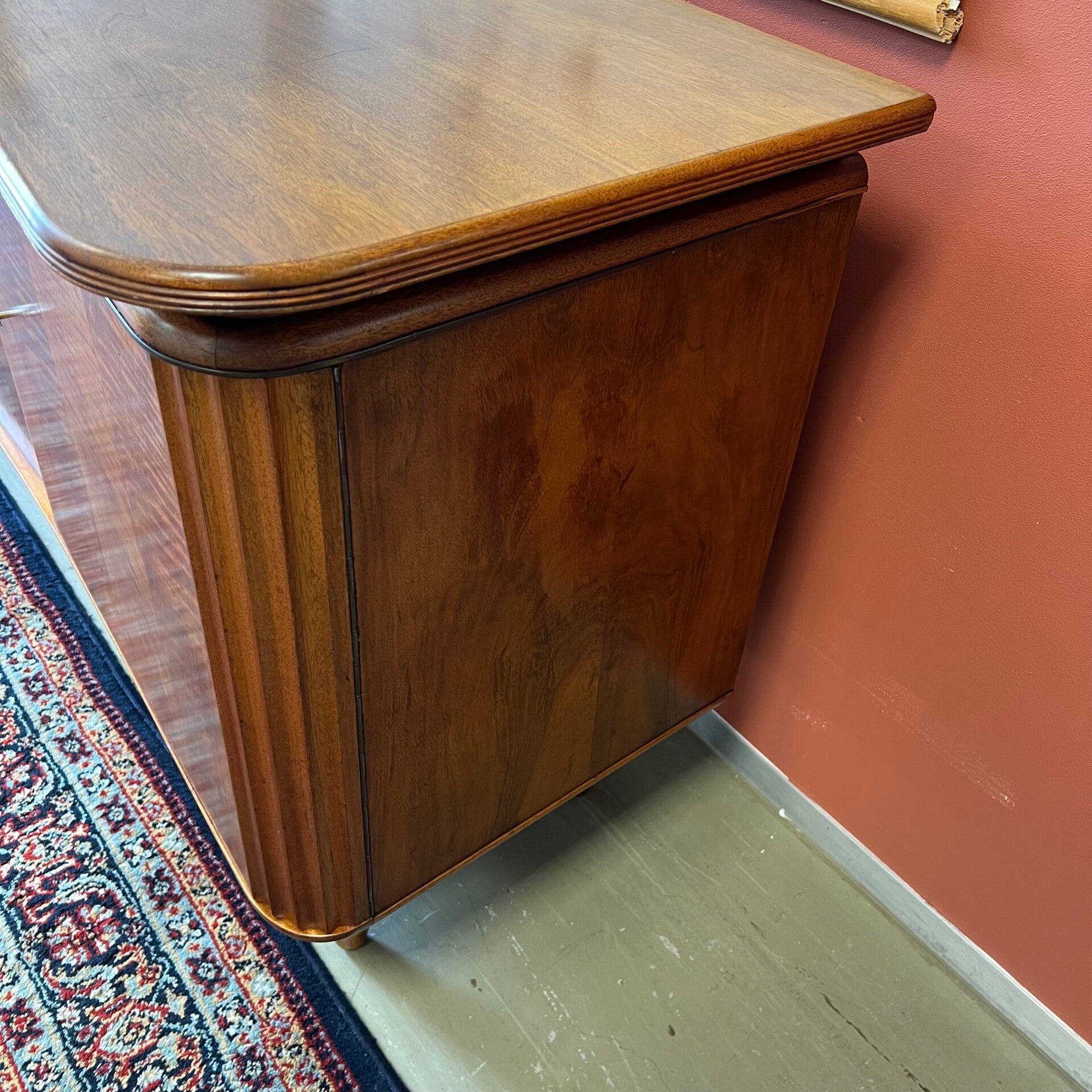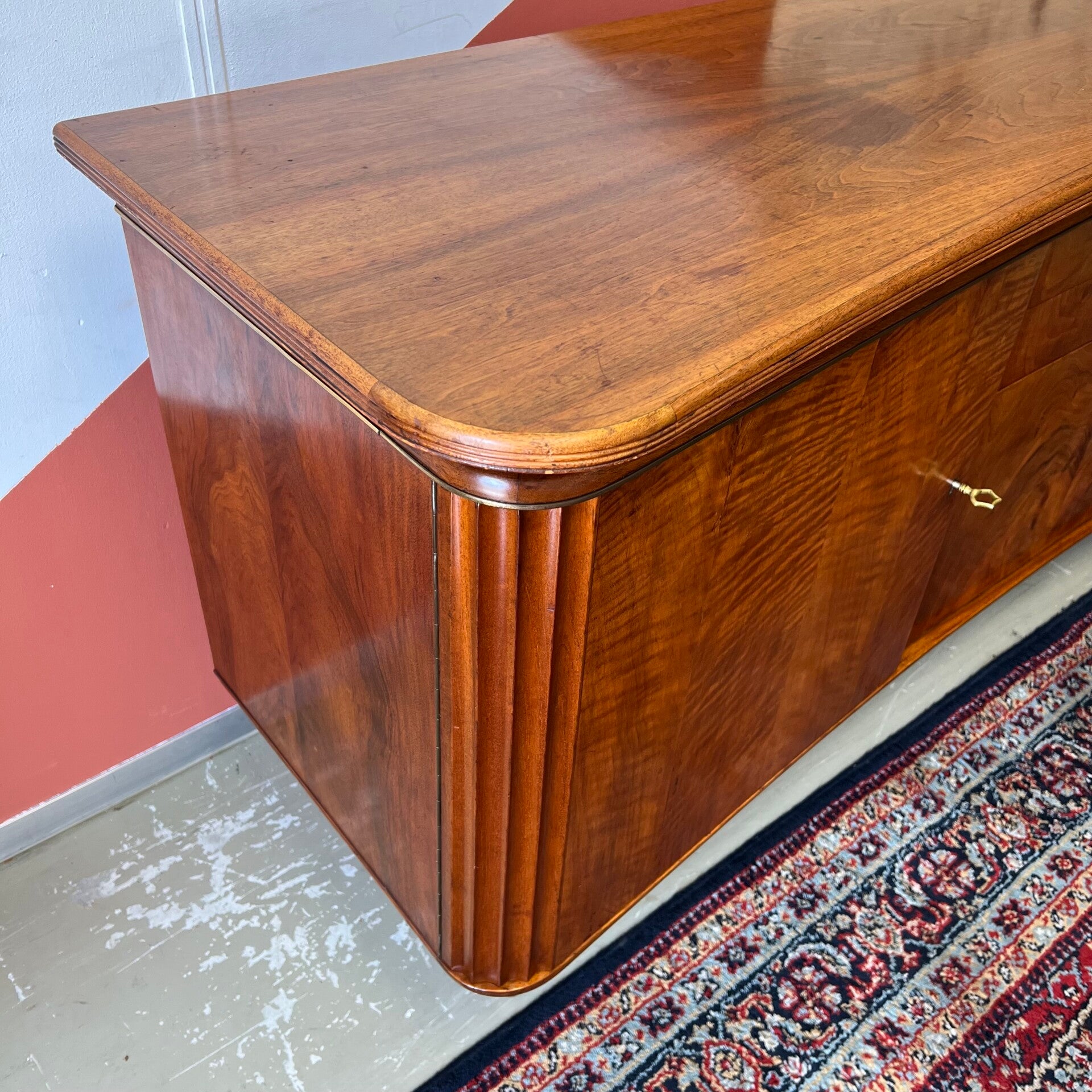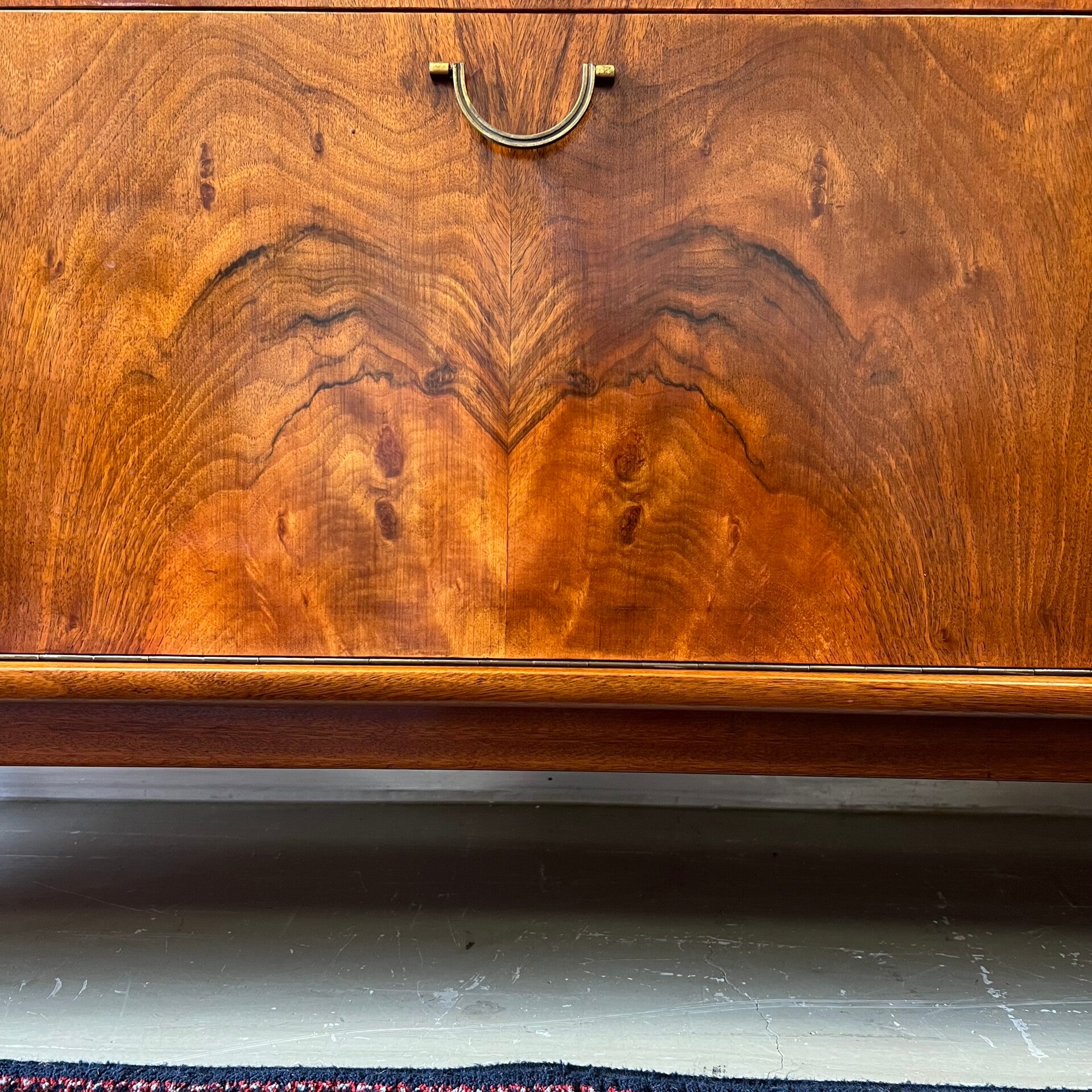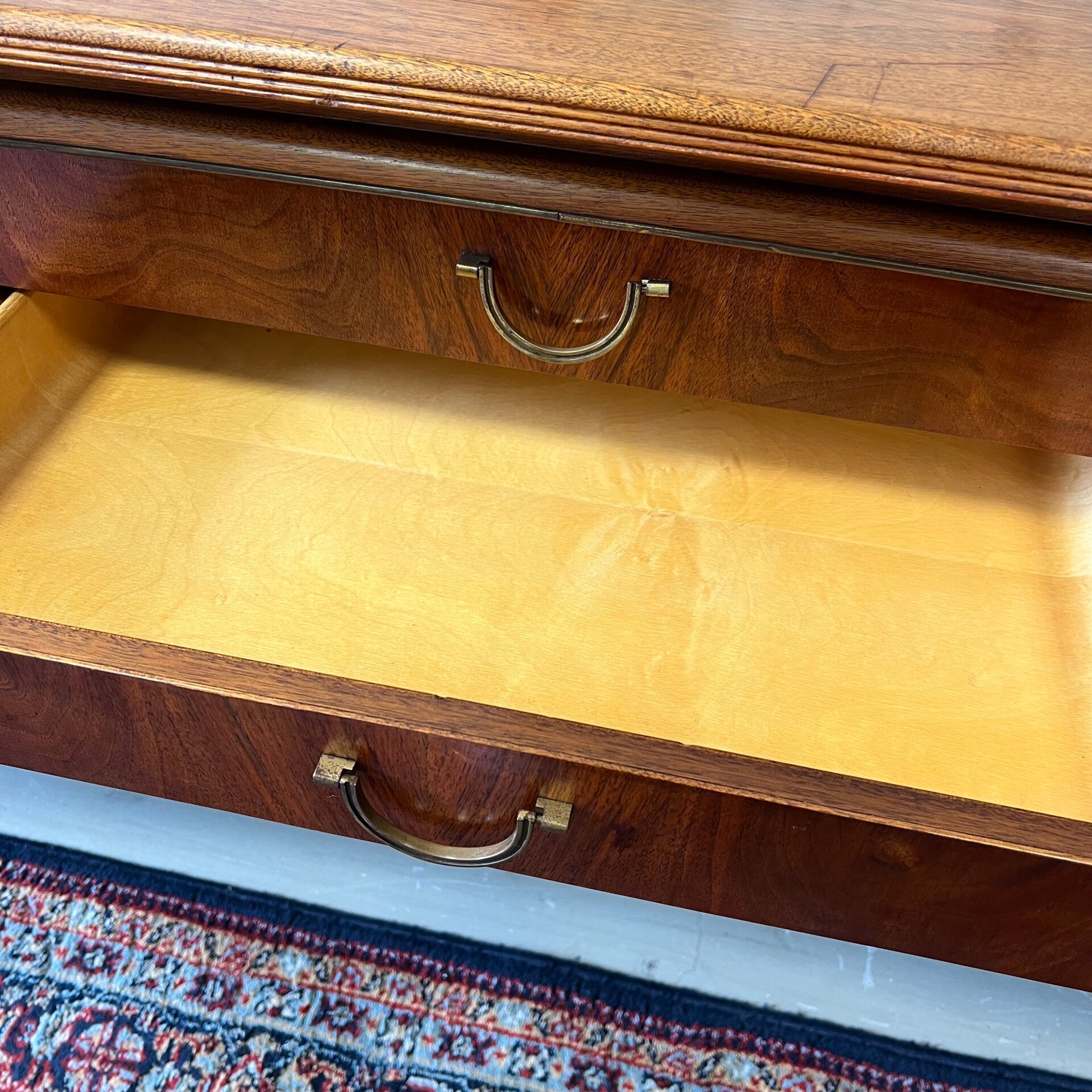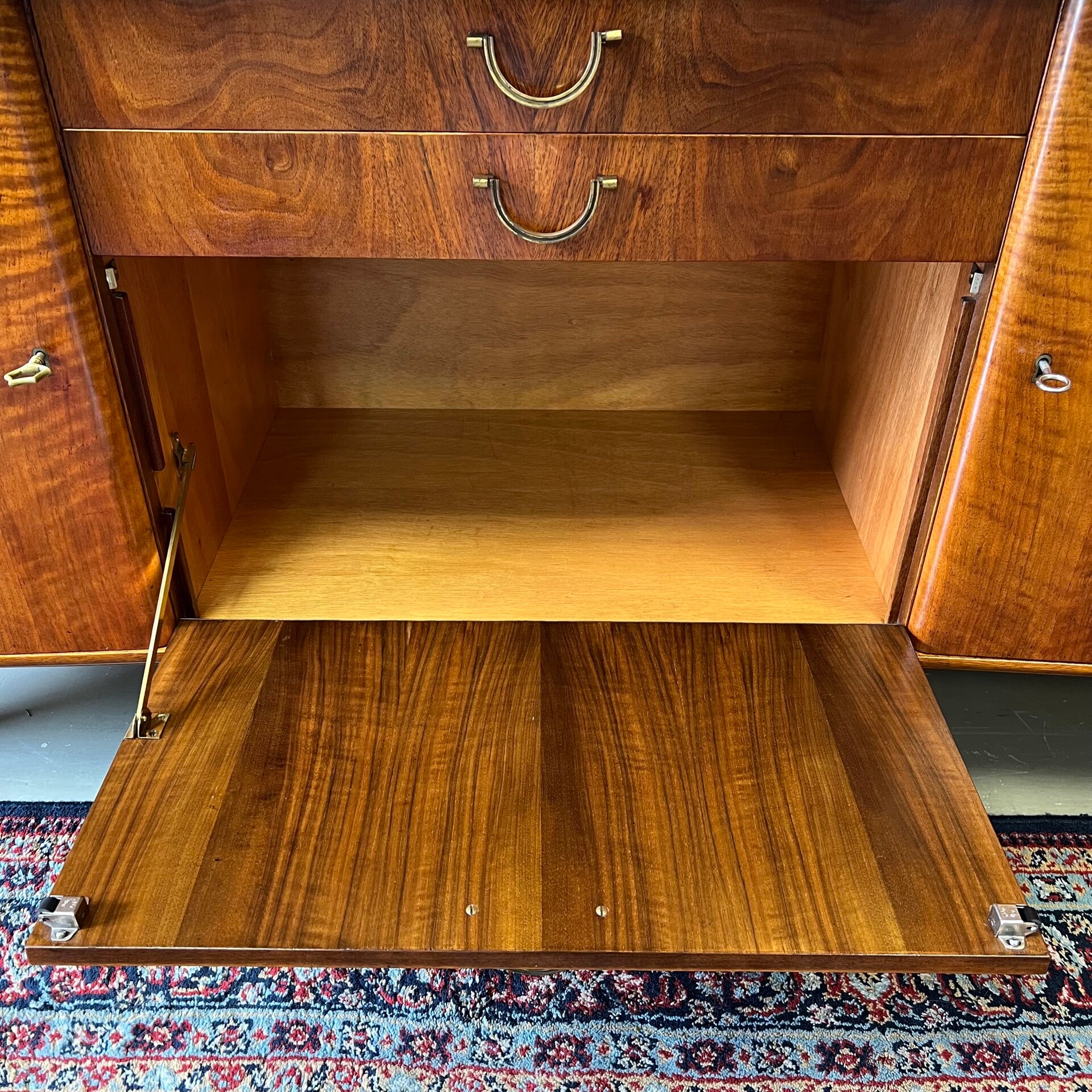 In het midden 2 ruime lades en een klepkast met messing beslag.