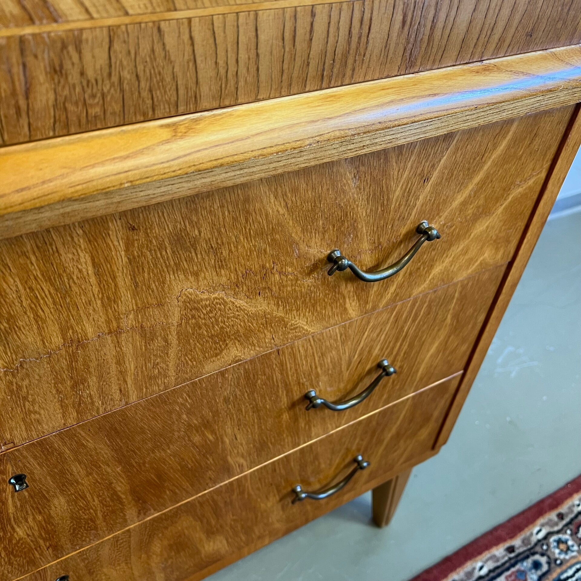Gebruikerssporen en slijtage zoals passend bij de leeftijd, bovenste lade heeft wat craquelé in het fineer.