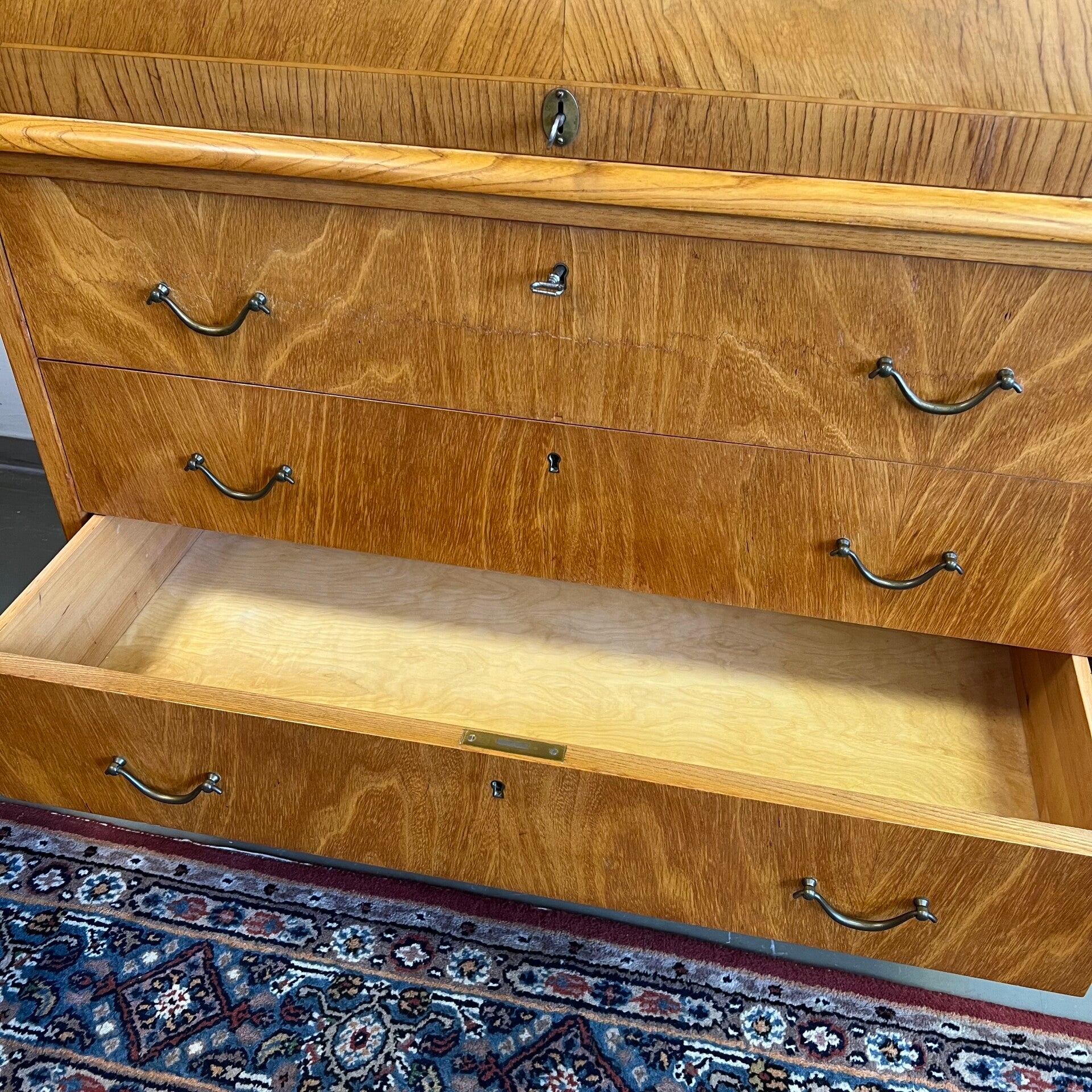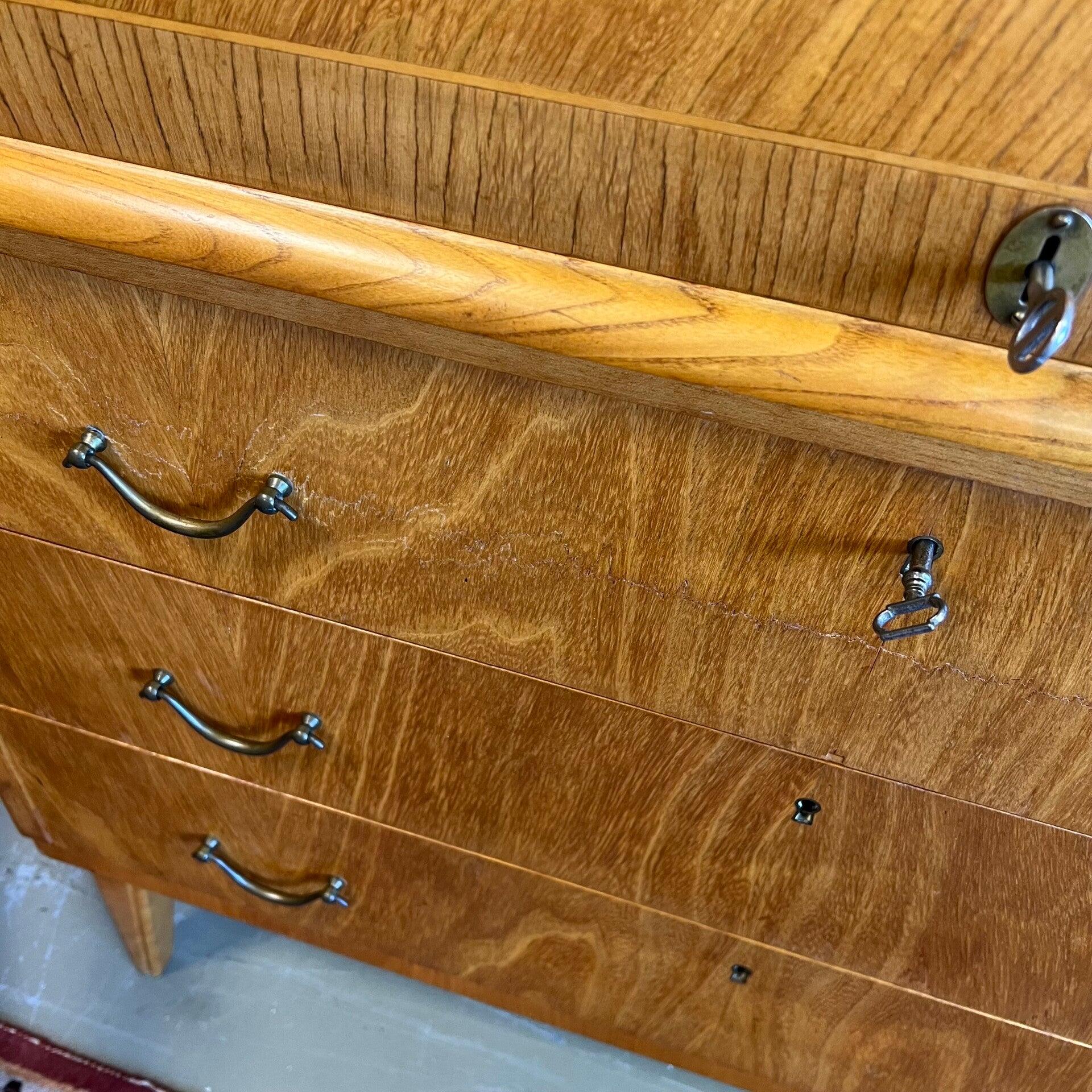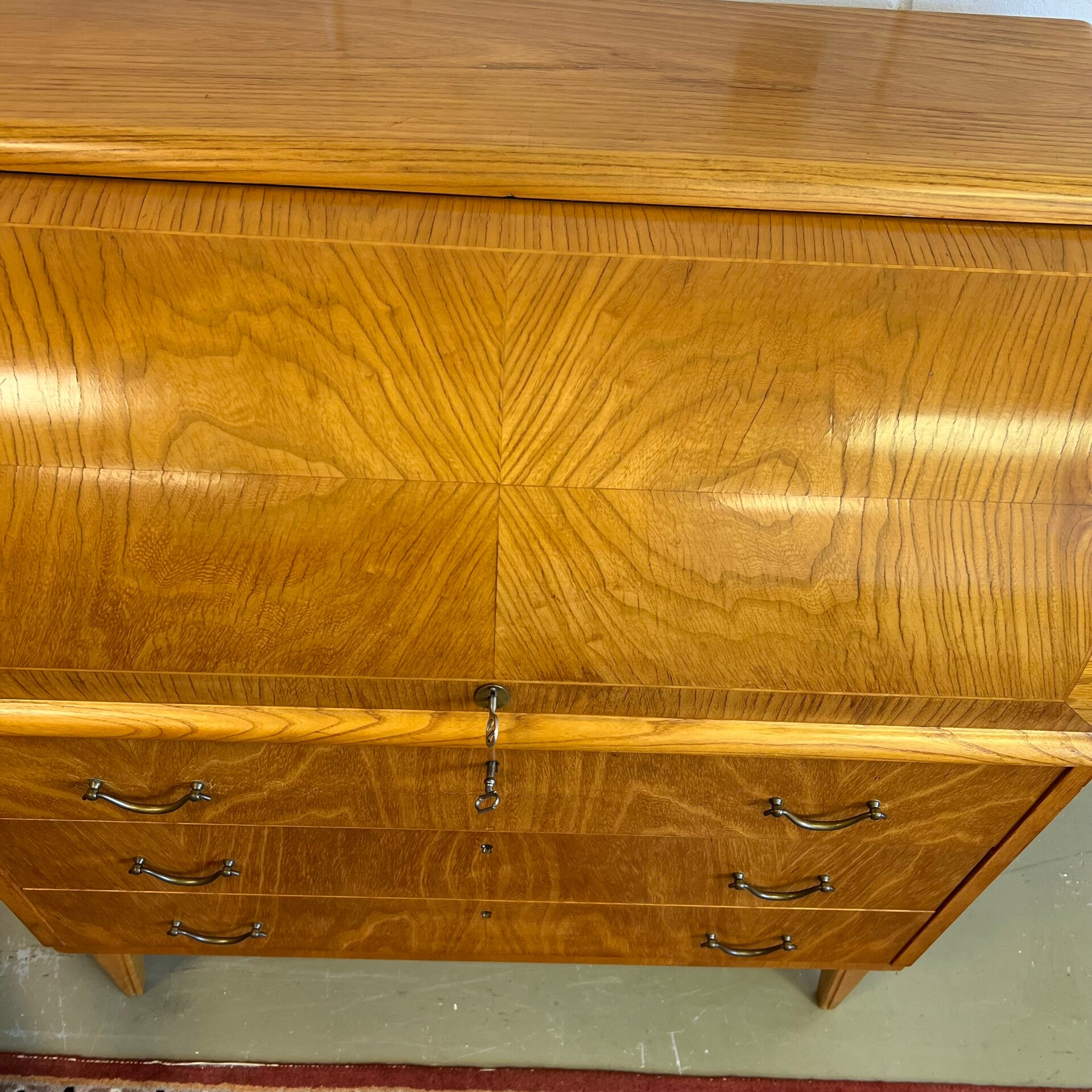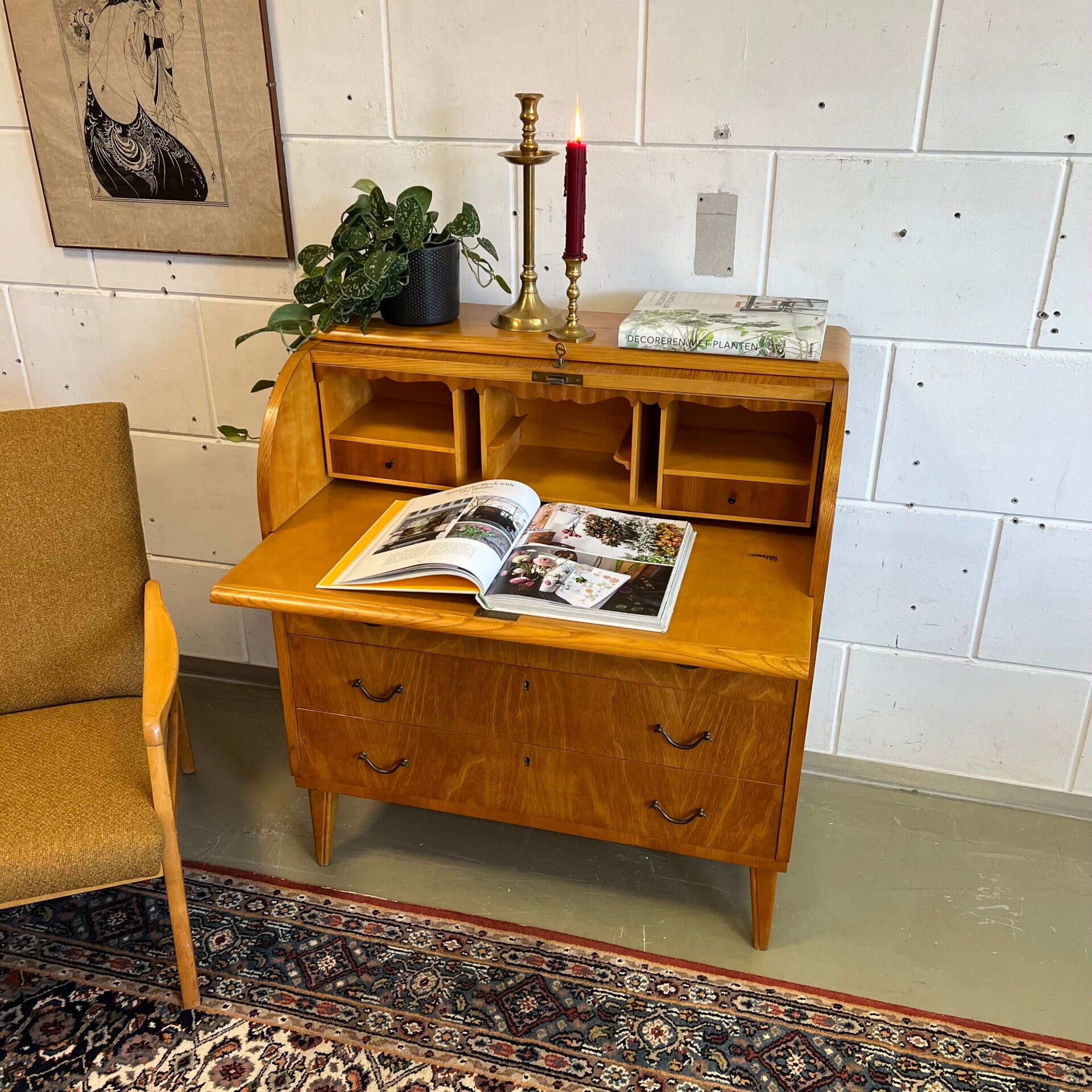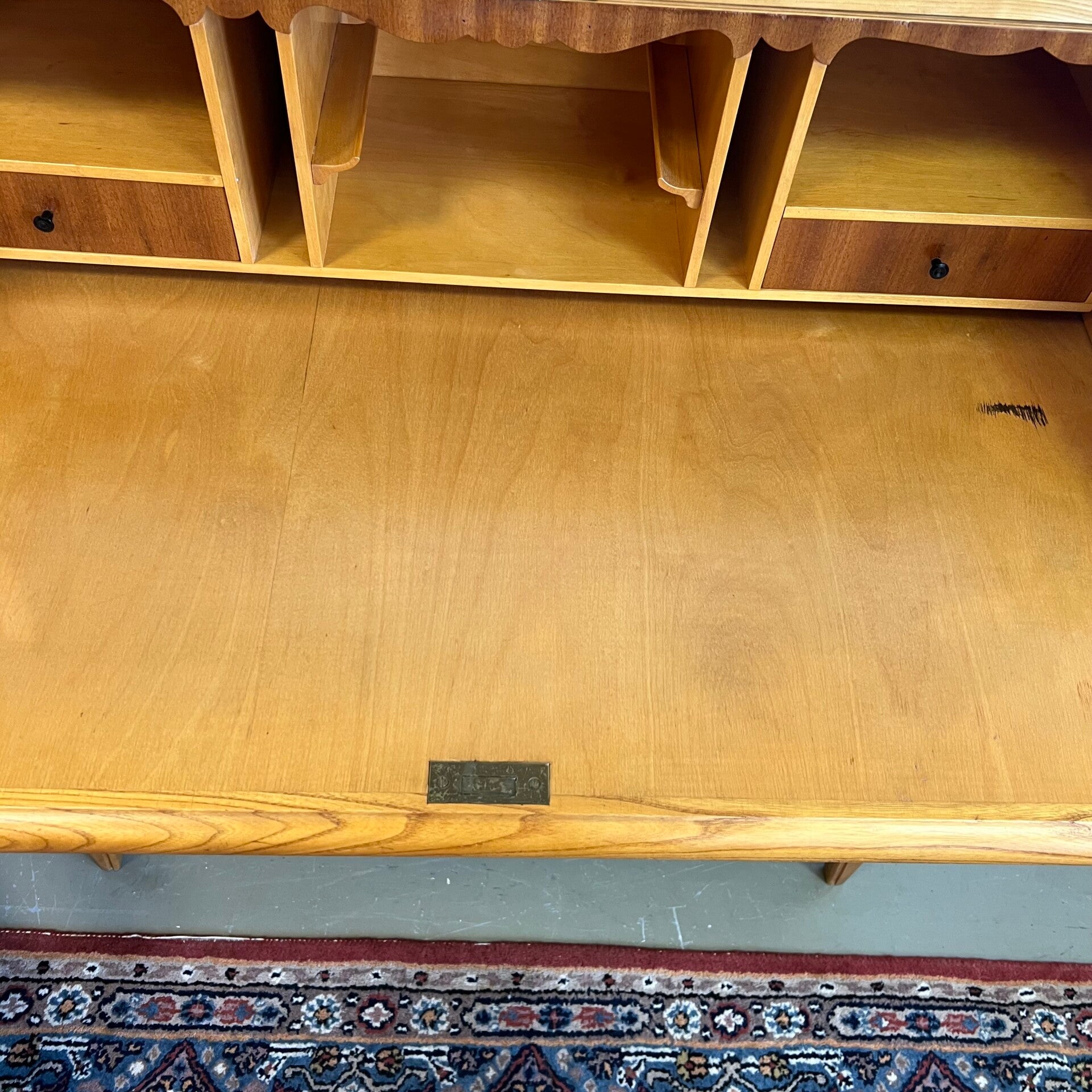 Prachtige vintage secretaire of schrijftafel in pinewood (fineer).
