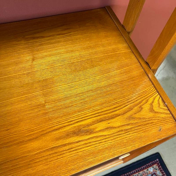 Uitgevoerd in een combinatie van eiken, grenen en beuken (fineer).