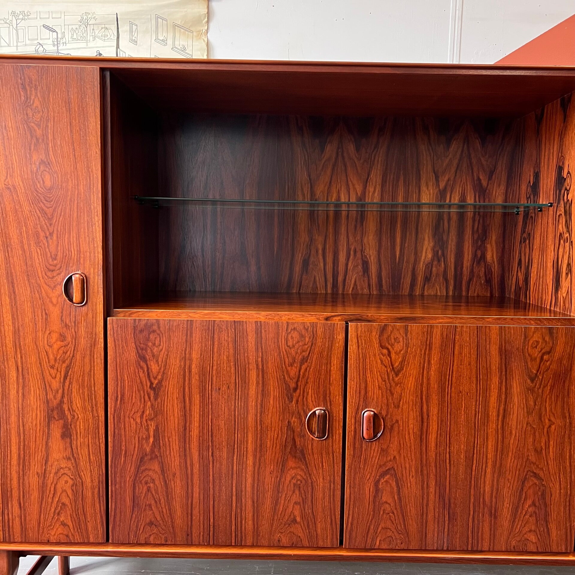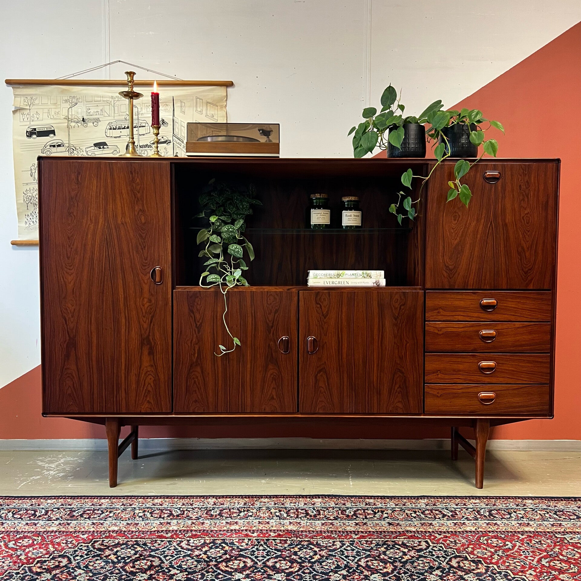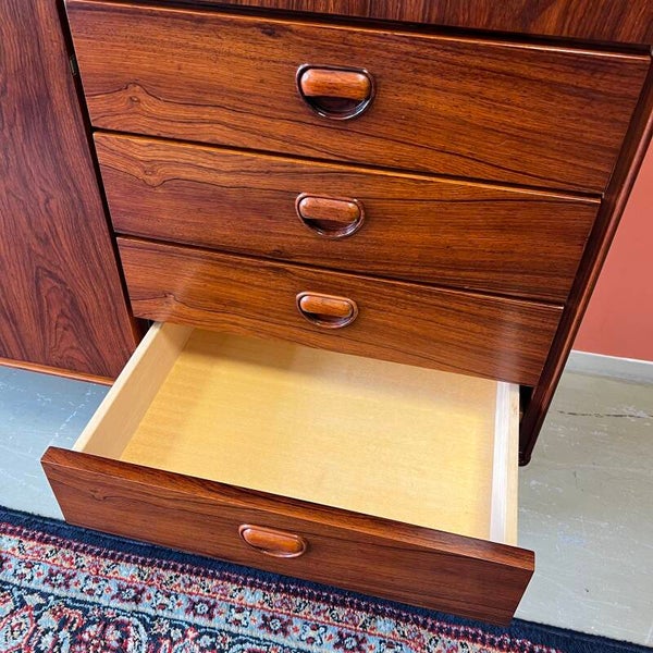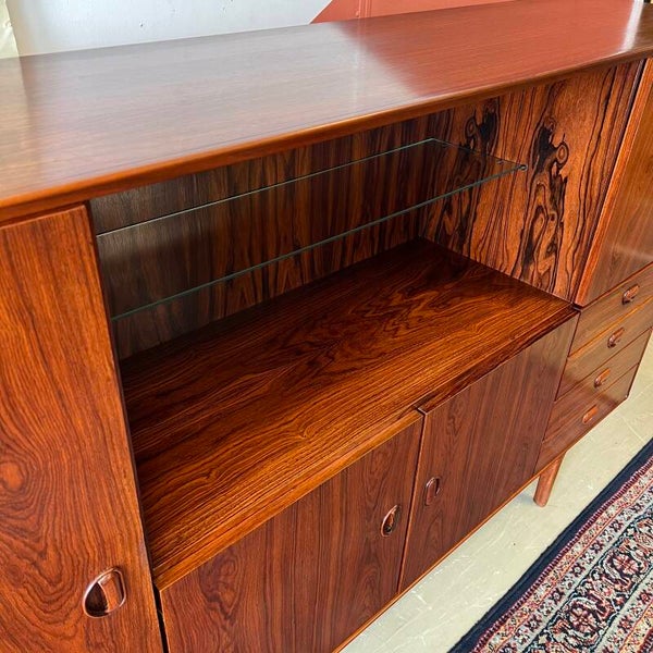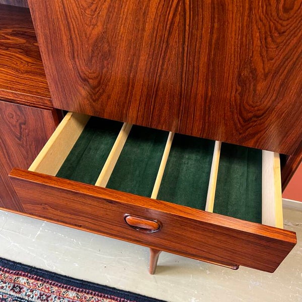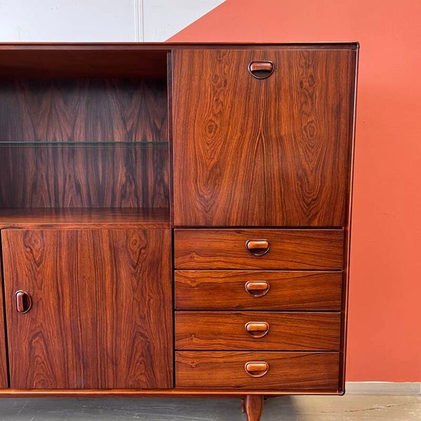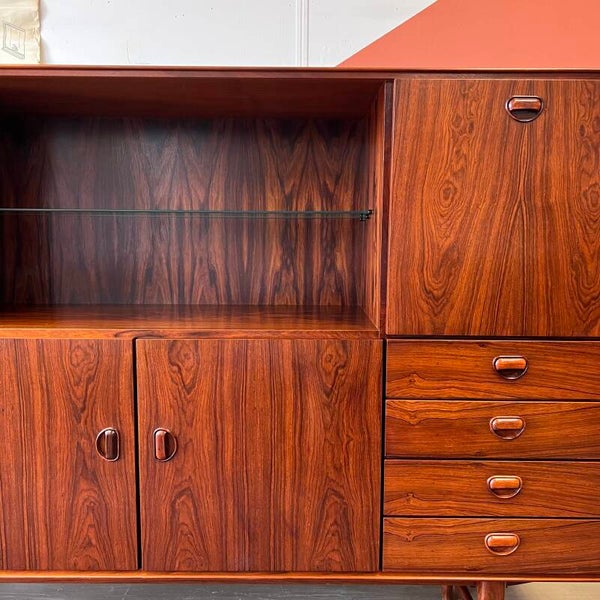 Prachtige vintage buffetkast of highboard, uitgevoerd in rosewood (massief/fineer).