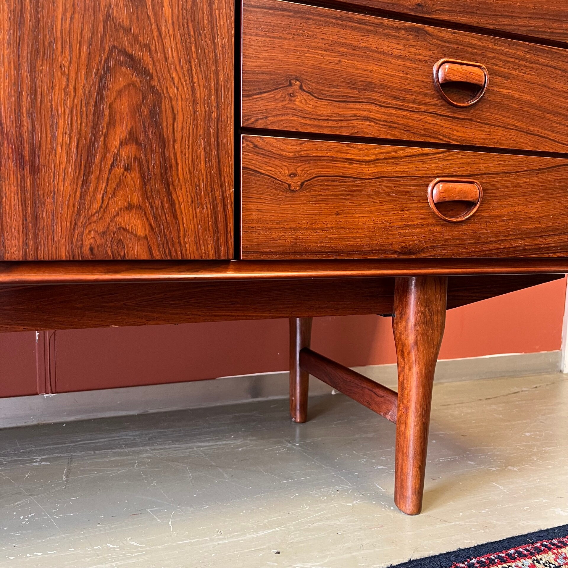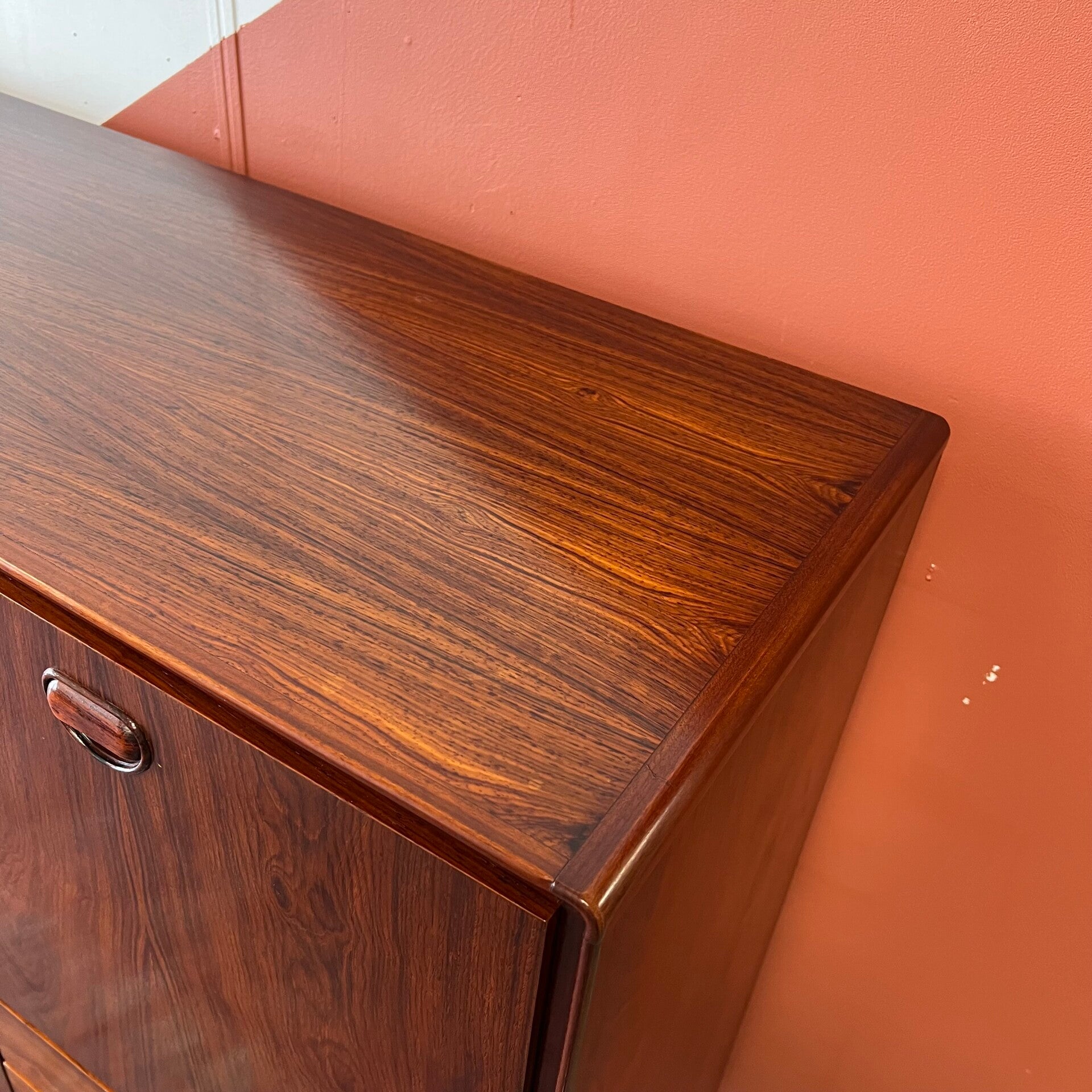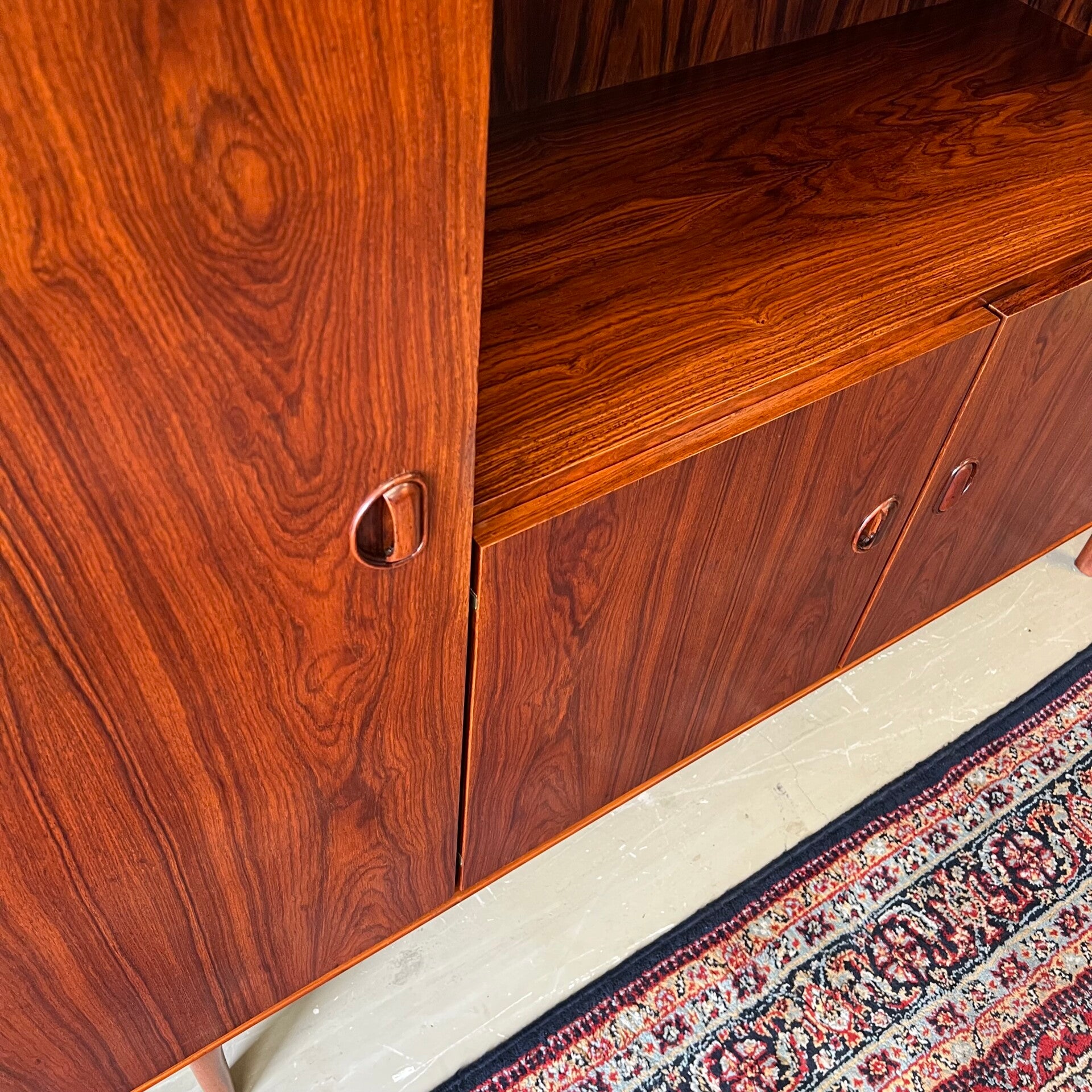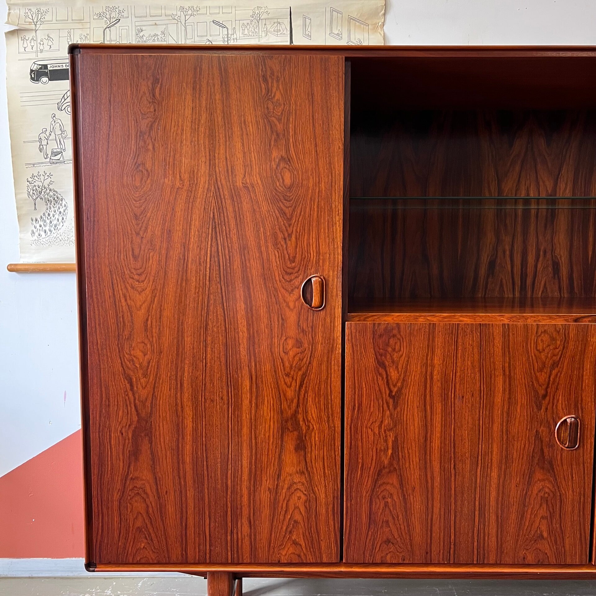 Prachtige vintage buffetkast of highboard, uitgevoerd in rosewood (massief/fineer).