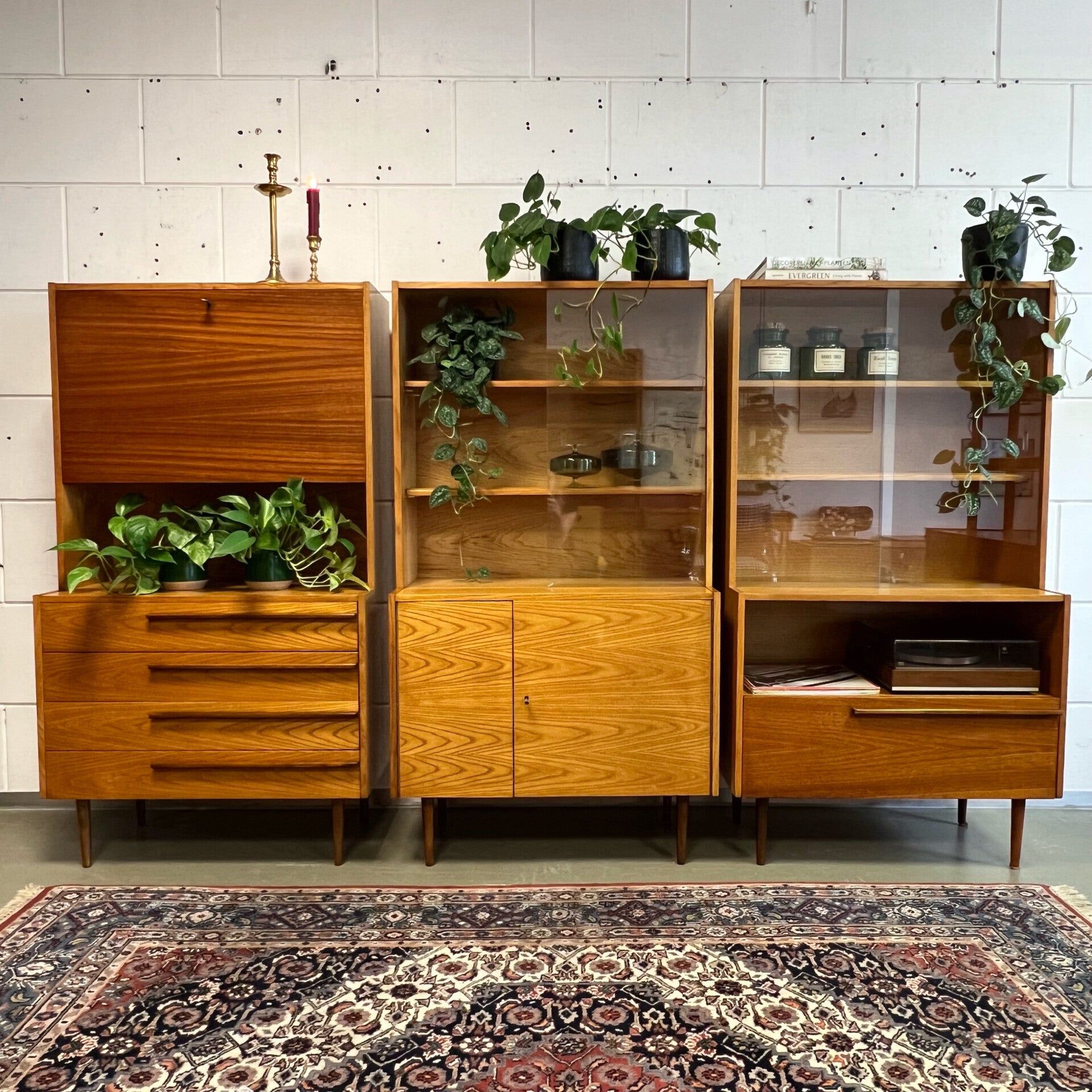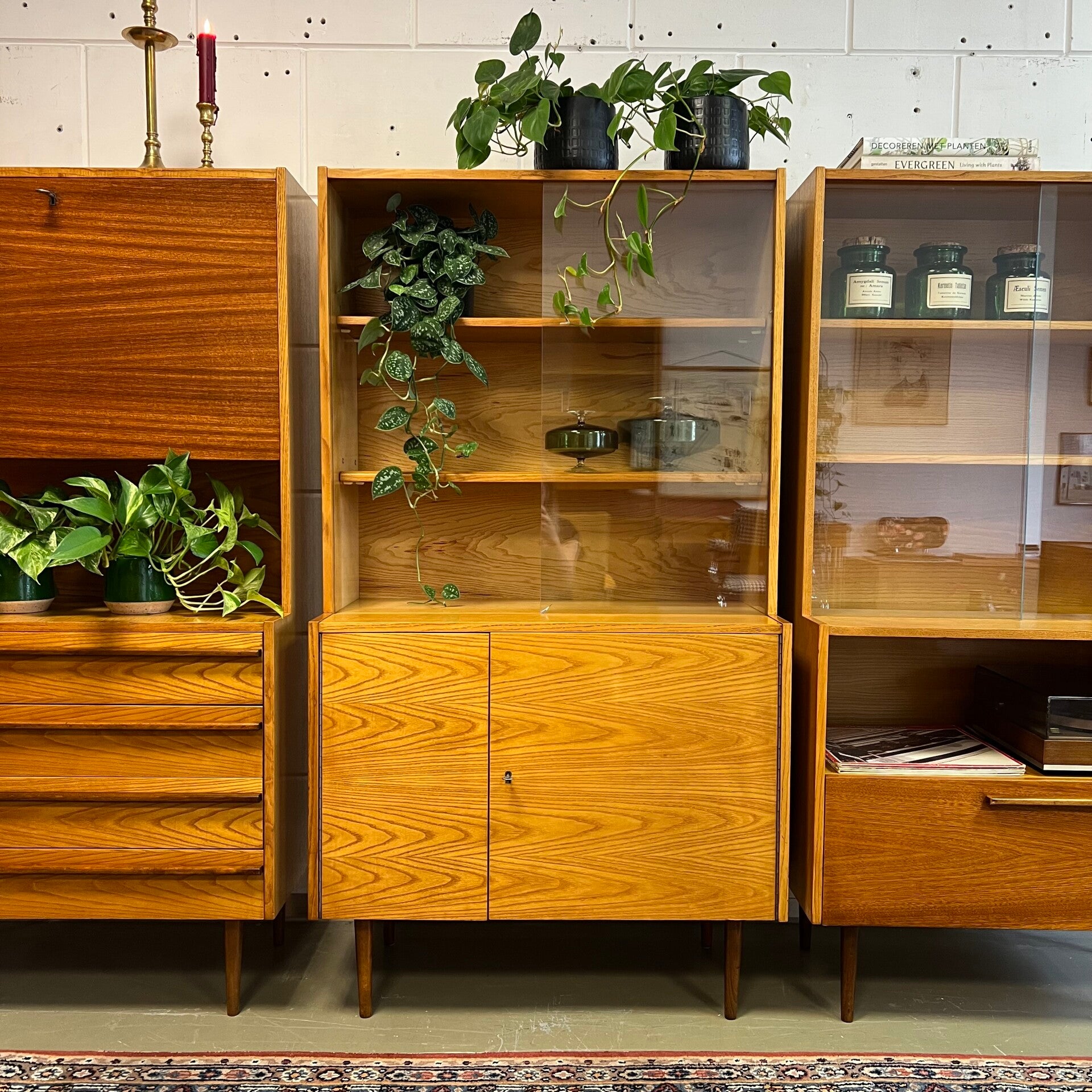 Leuke set van 3 wandmeubels, uitgevoerd in een combinatie van grenen, mahonie en essen (fineer).