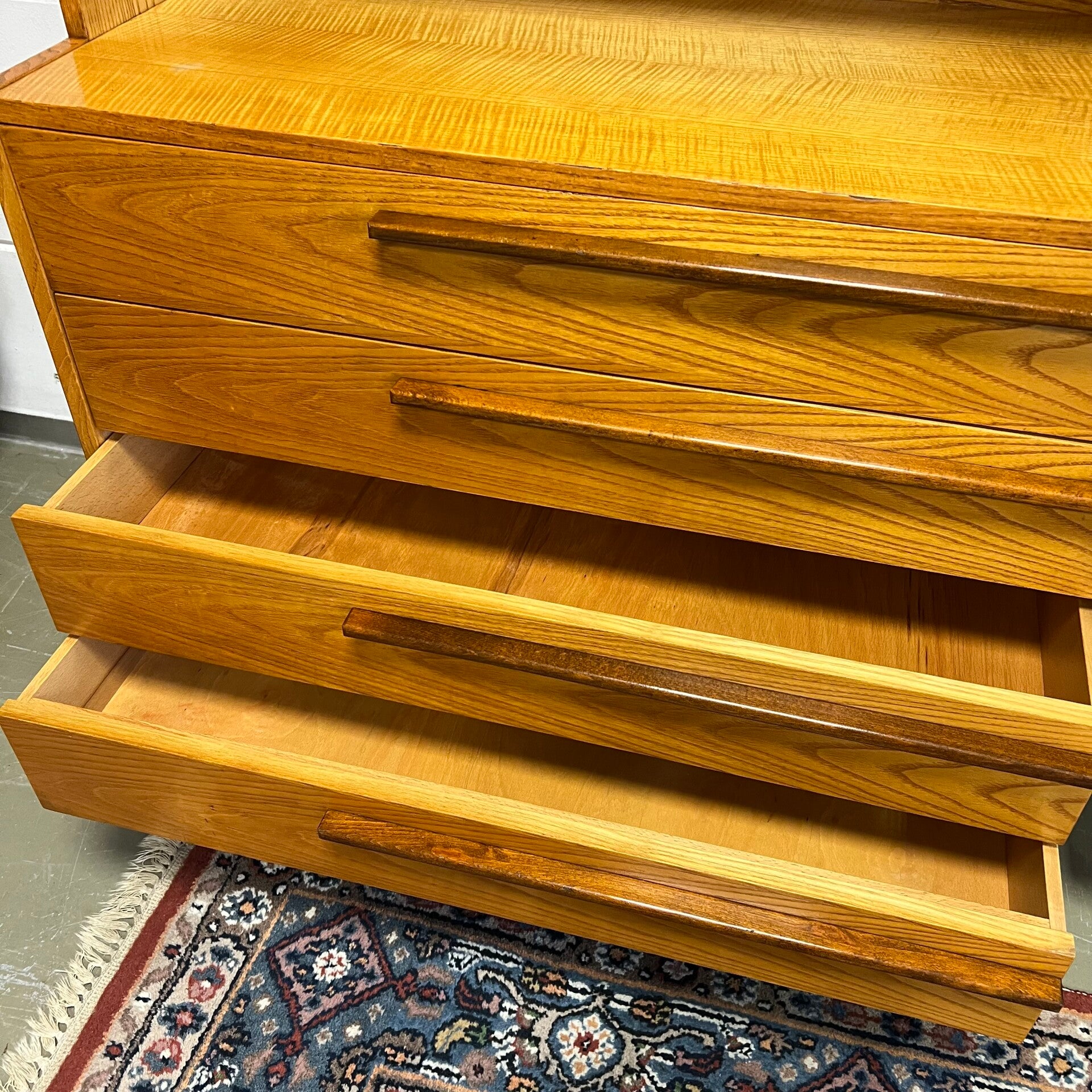 Onderin 4 ruime lades, waarvan de bovenste met vakverdeling.
