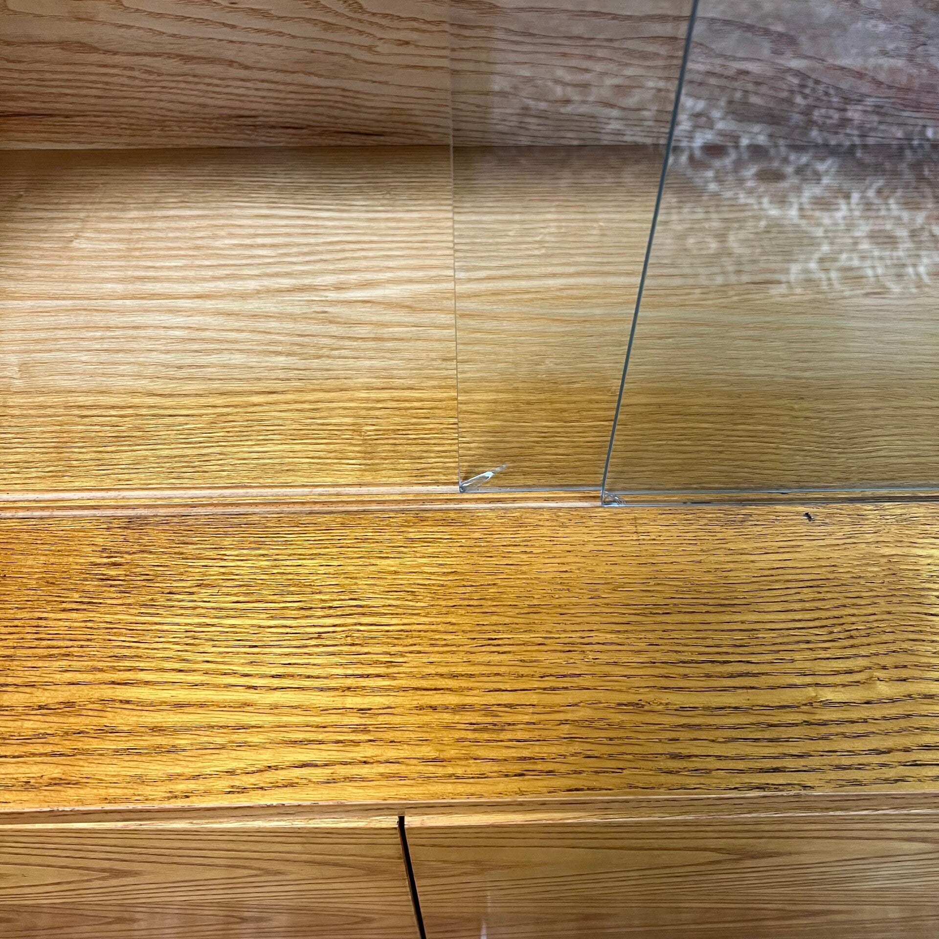De klep is eens beschadigd geweest en gerepareerd waarbij het scharnier is verplaatst. Hiervan is een beschadiging zichtbaar aan de binnenzijde en buitenkant links.