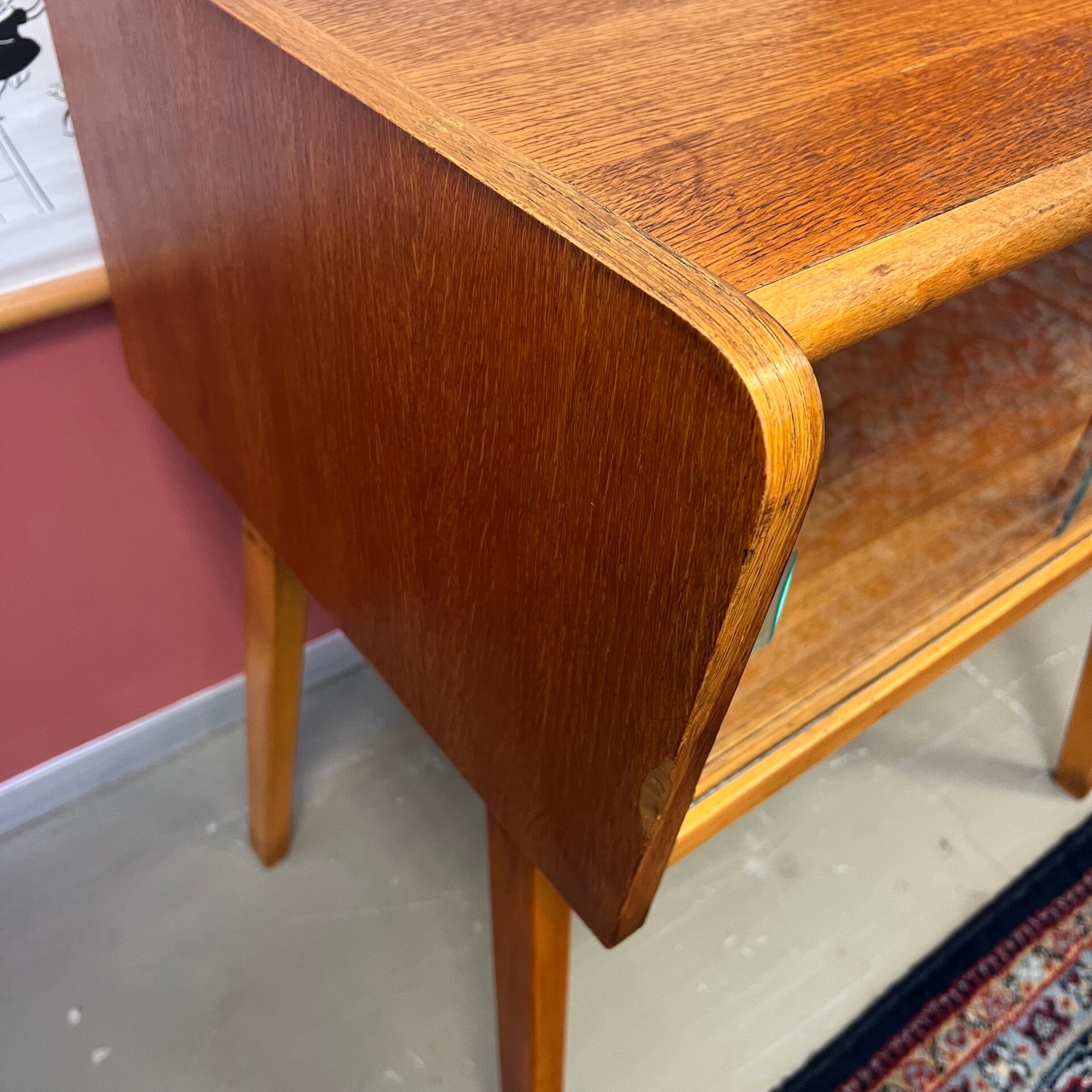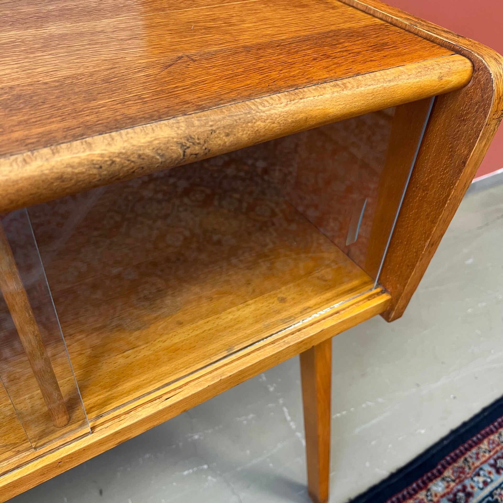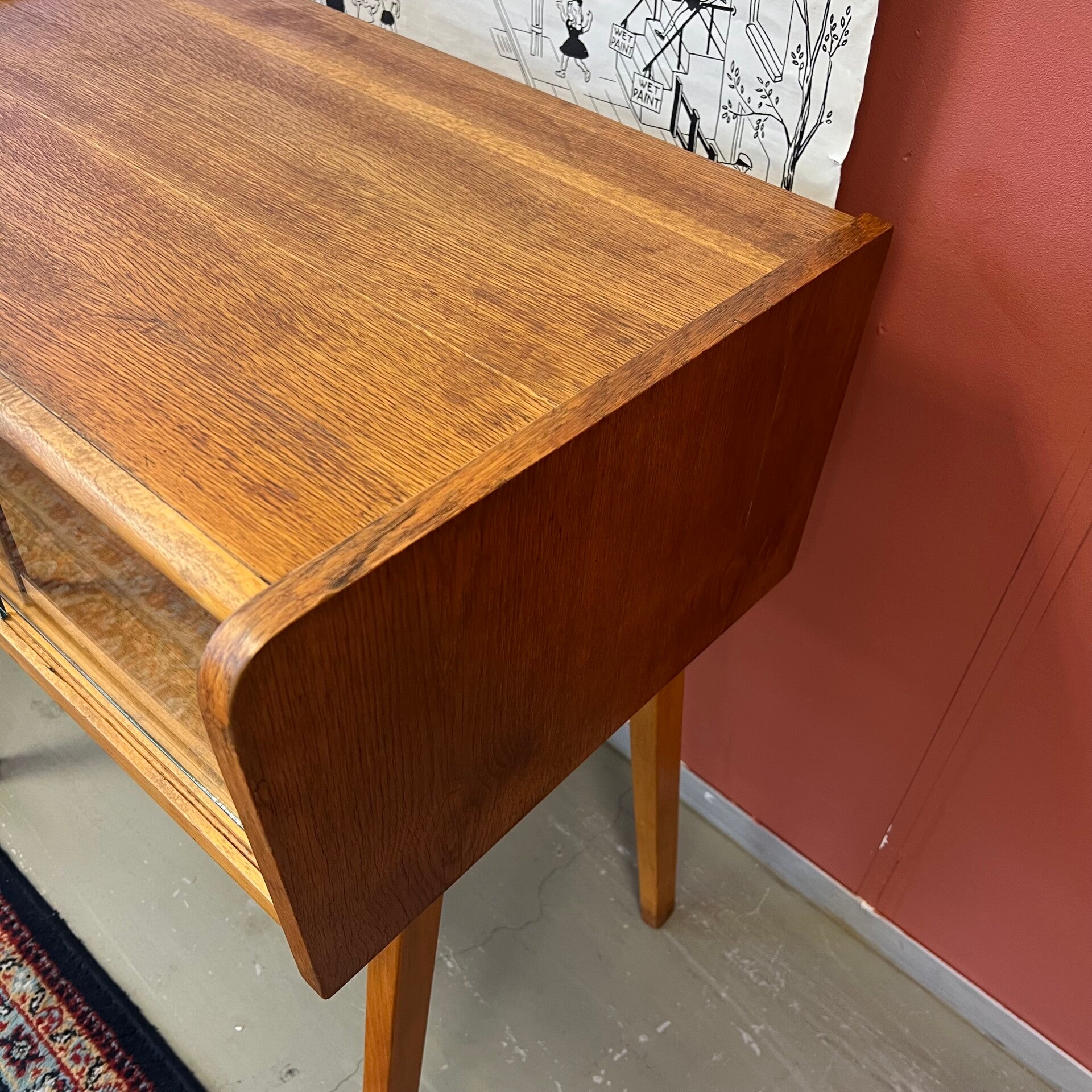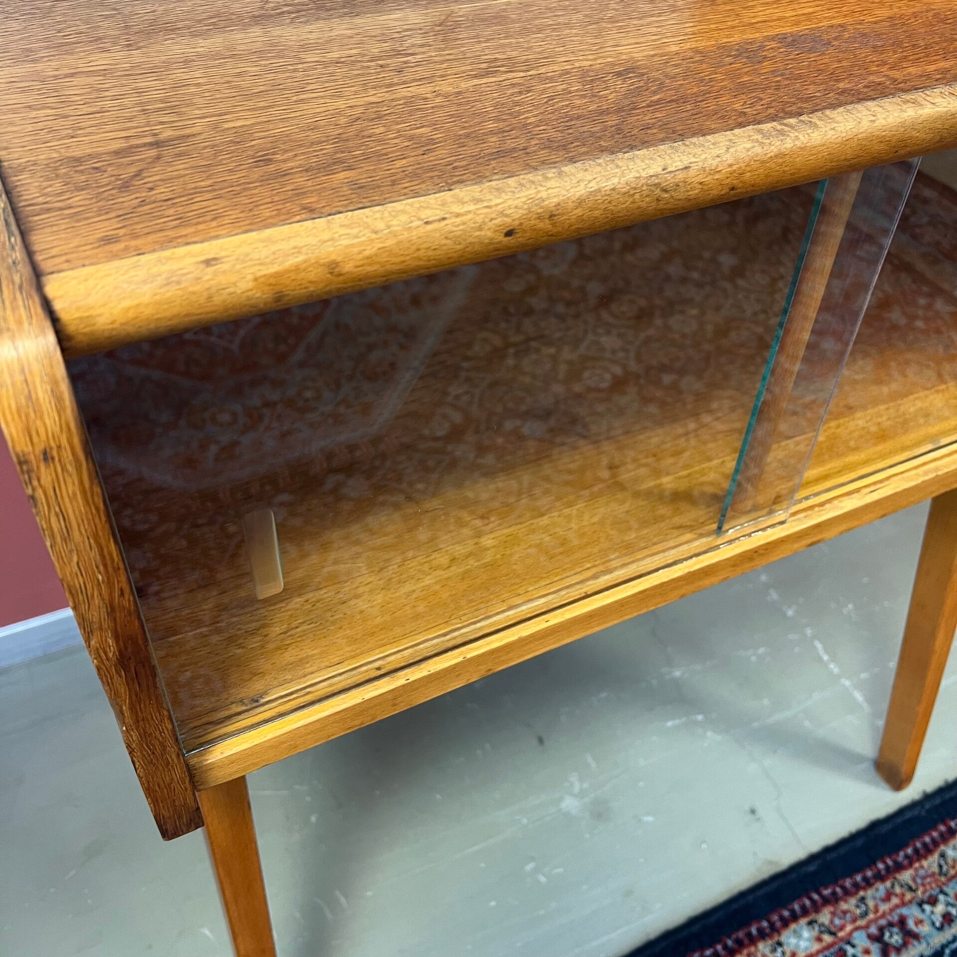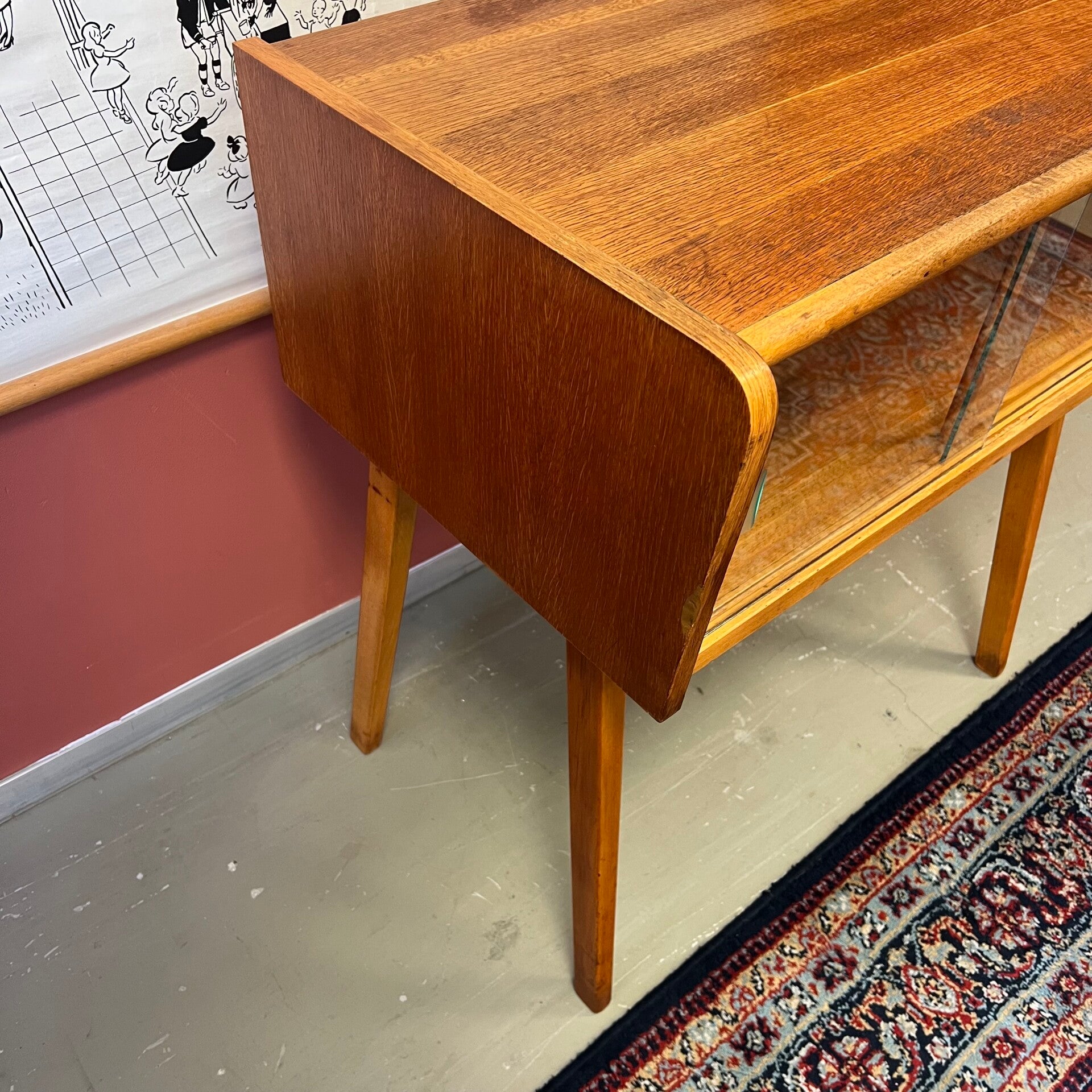 Leuke vintage TV-, audiokast of bijzettafel met glazen schuifruitjes.