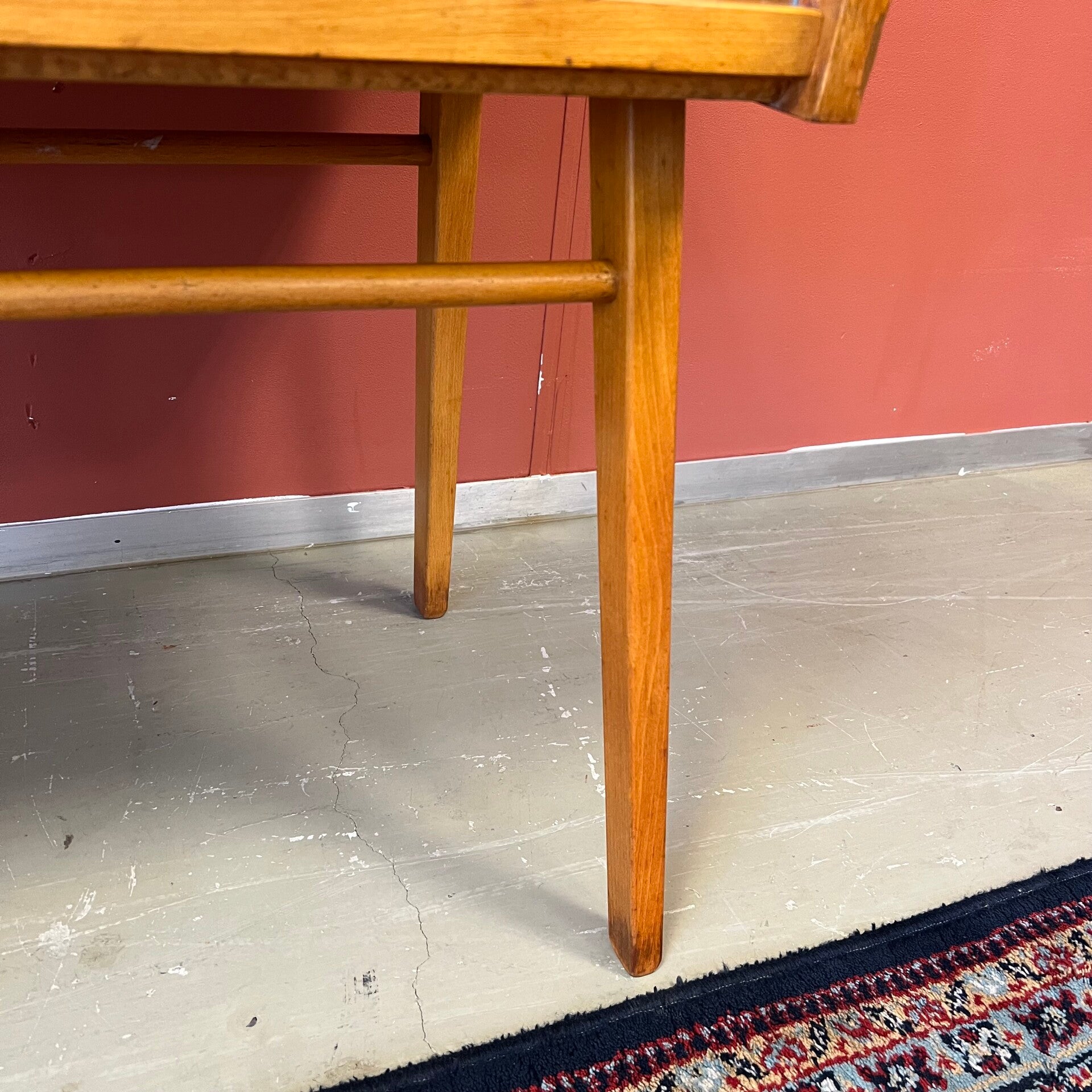 Uitgevoerd in eiken (fineer) en staat op hoge slanke poten.