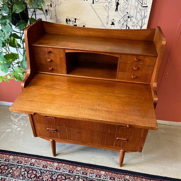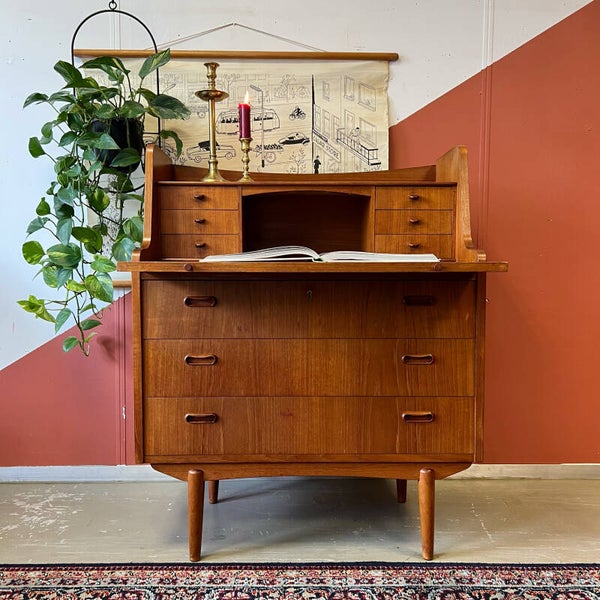 Mooie vintage secretaire, schrijftafel met uitschuifbaar blad.
