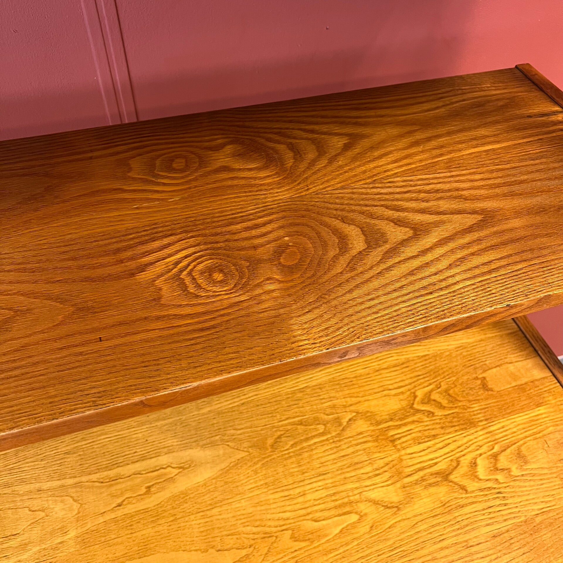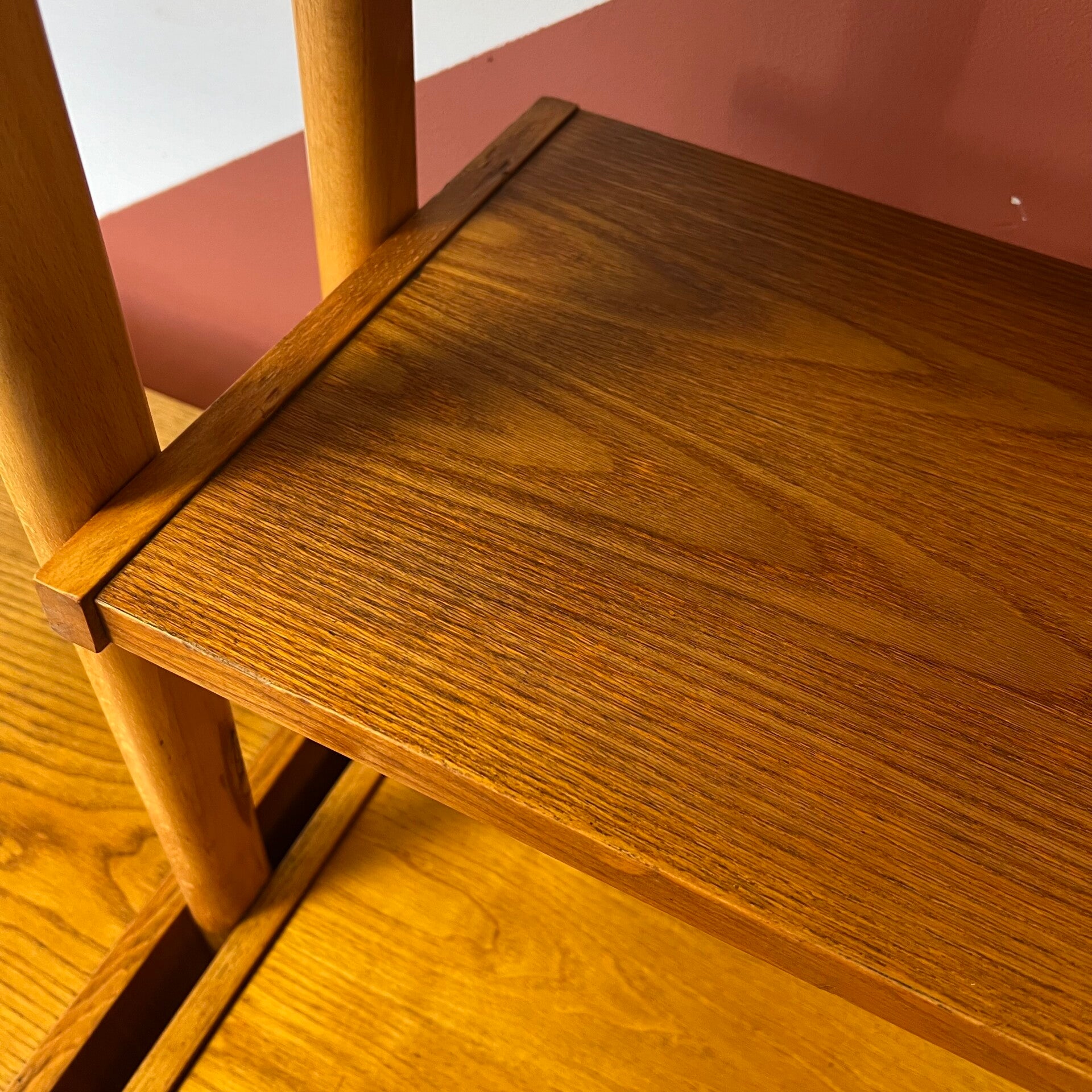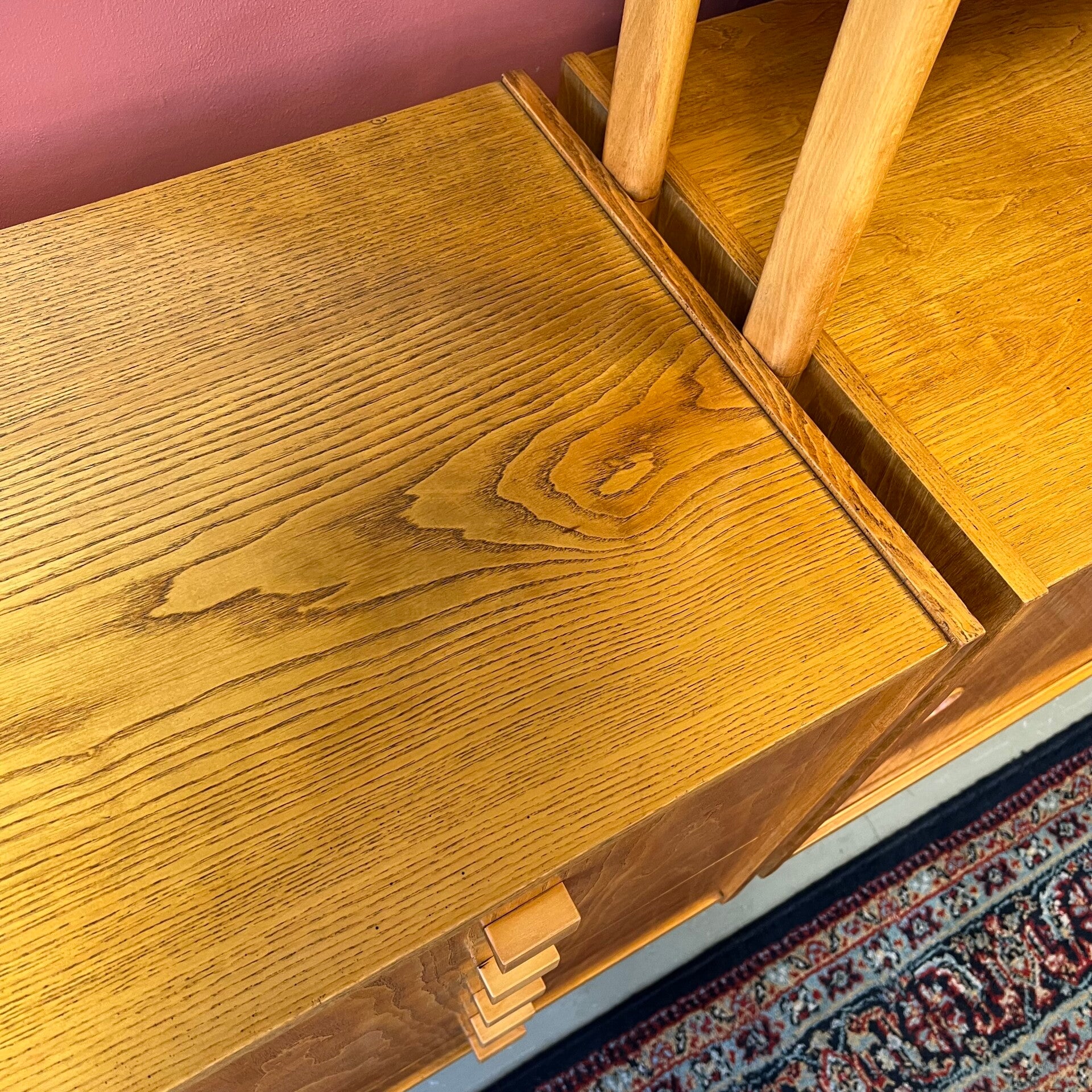 Uitgevoerd in een combinatie van eiken, grenen en beuken (fineer).