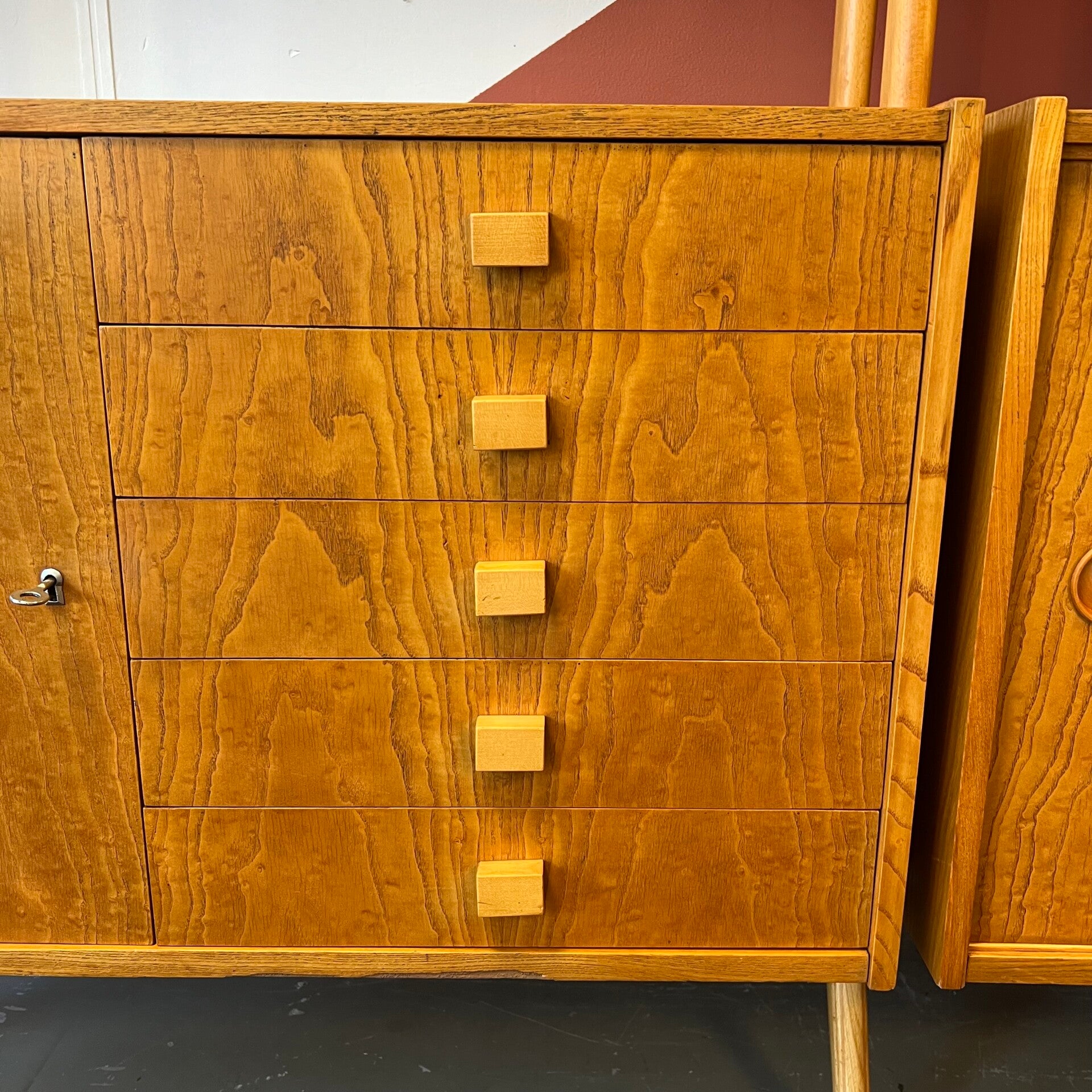 Mooi karakteristiek vintage wandmeubel uit Oost-Europa. Vrijstaand en gekoppeld.