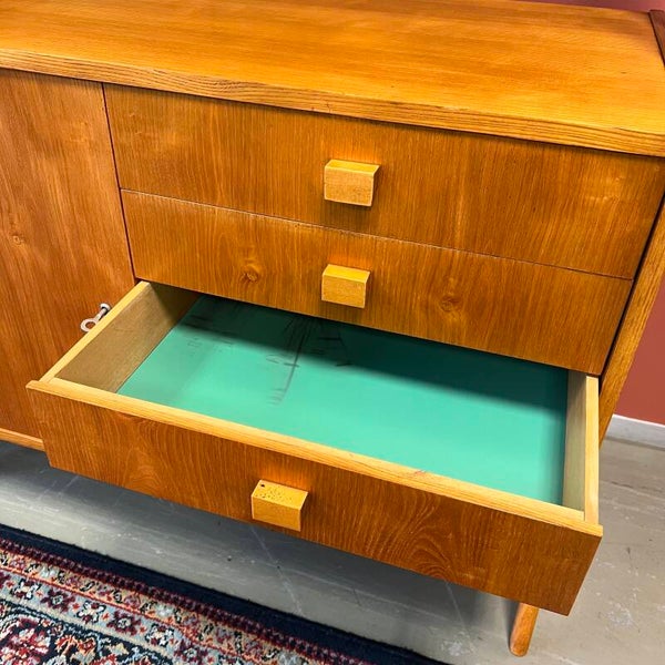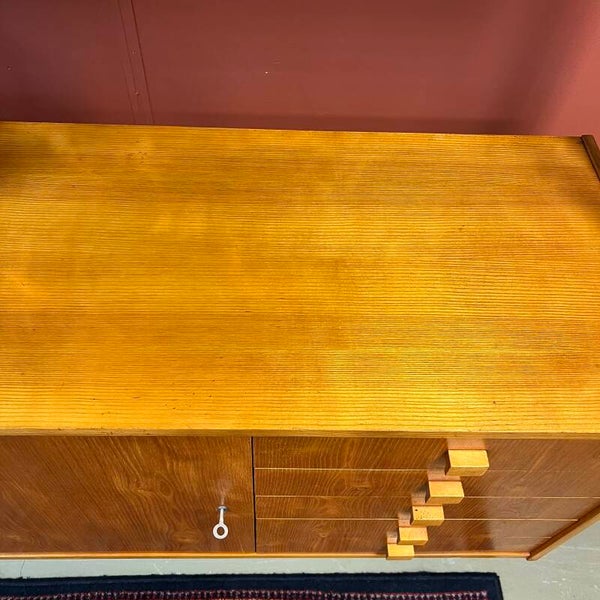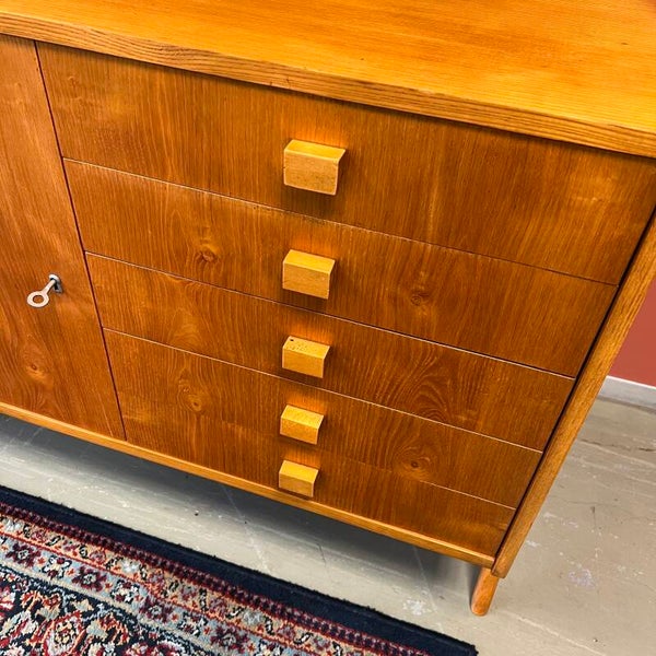 Gesloten kast met slot (sleutel aanwezig) en 5 ruime lades.
