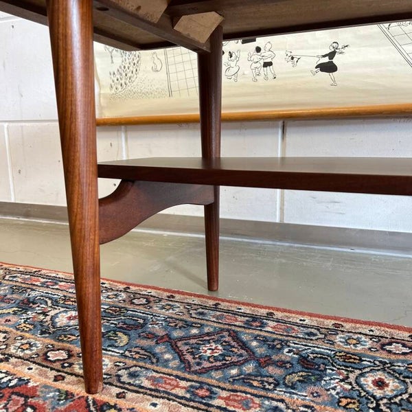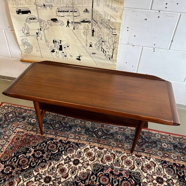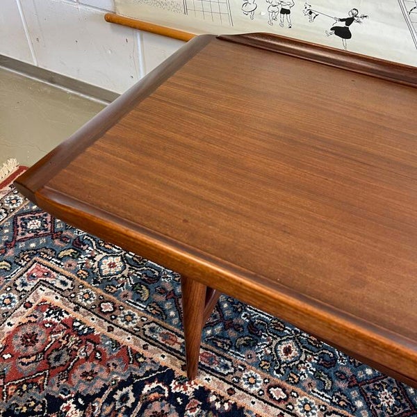 Geweldige vintage “long John” salontafel in teak met conische poten.