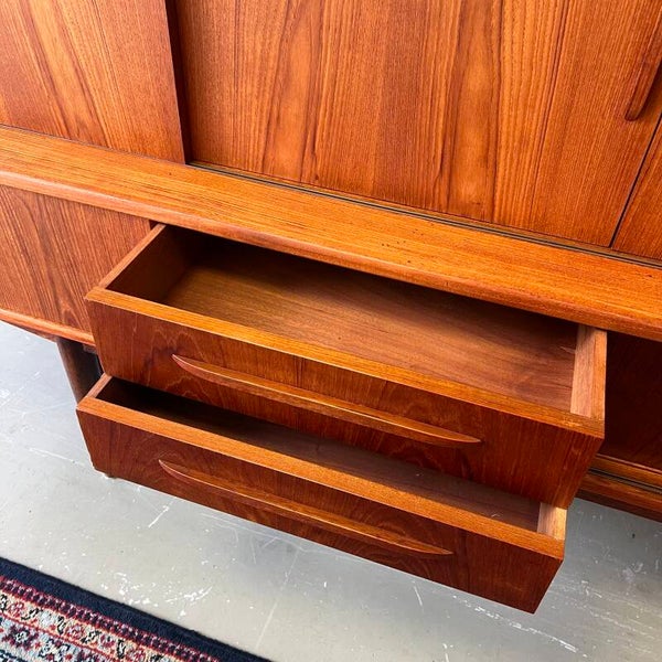 Prachtige vintage highboard, buffetkast uitgevoerd in teak (fineer).