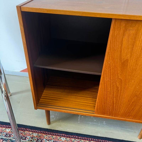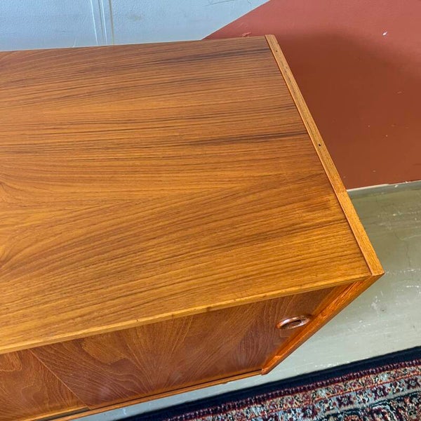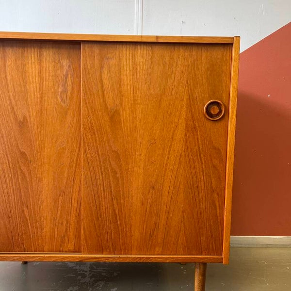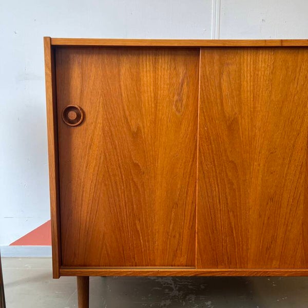 Mooi vintage Deens schuifdeurkastje, TV / audiomeubel of DIY badkamermeubel.