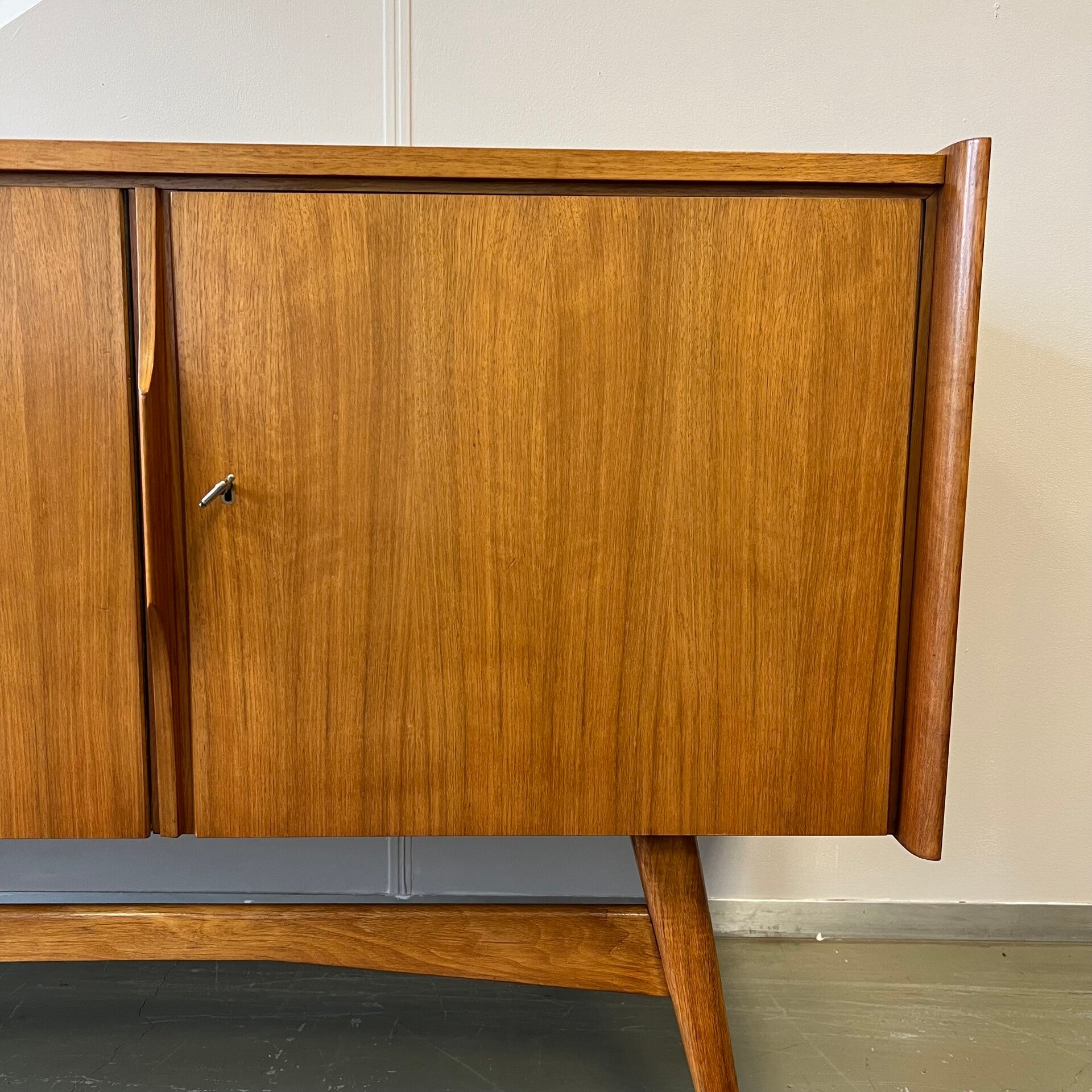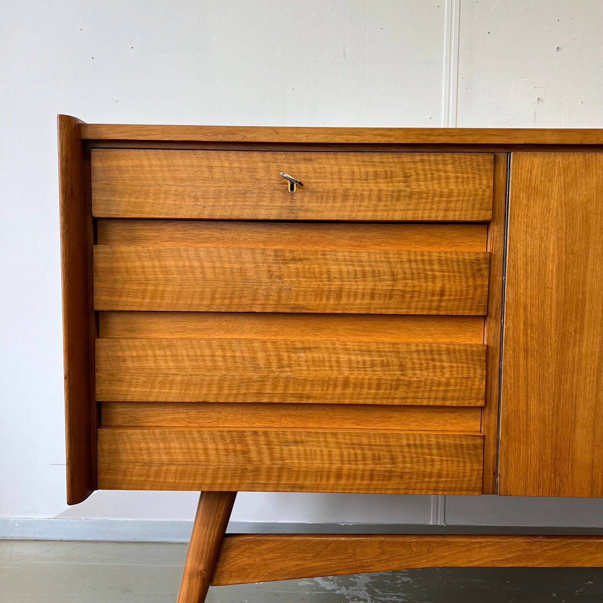 Schitterend XL dressoir, sideboard of lowboard op slanke schuine poten.