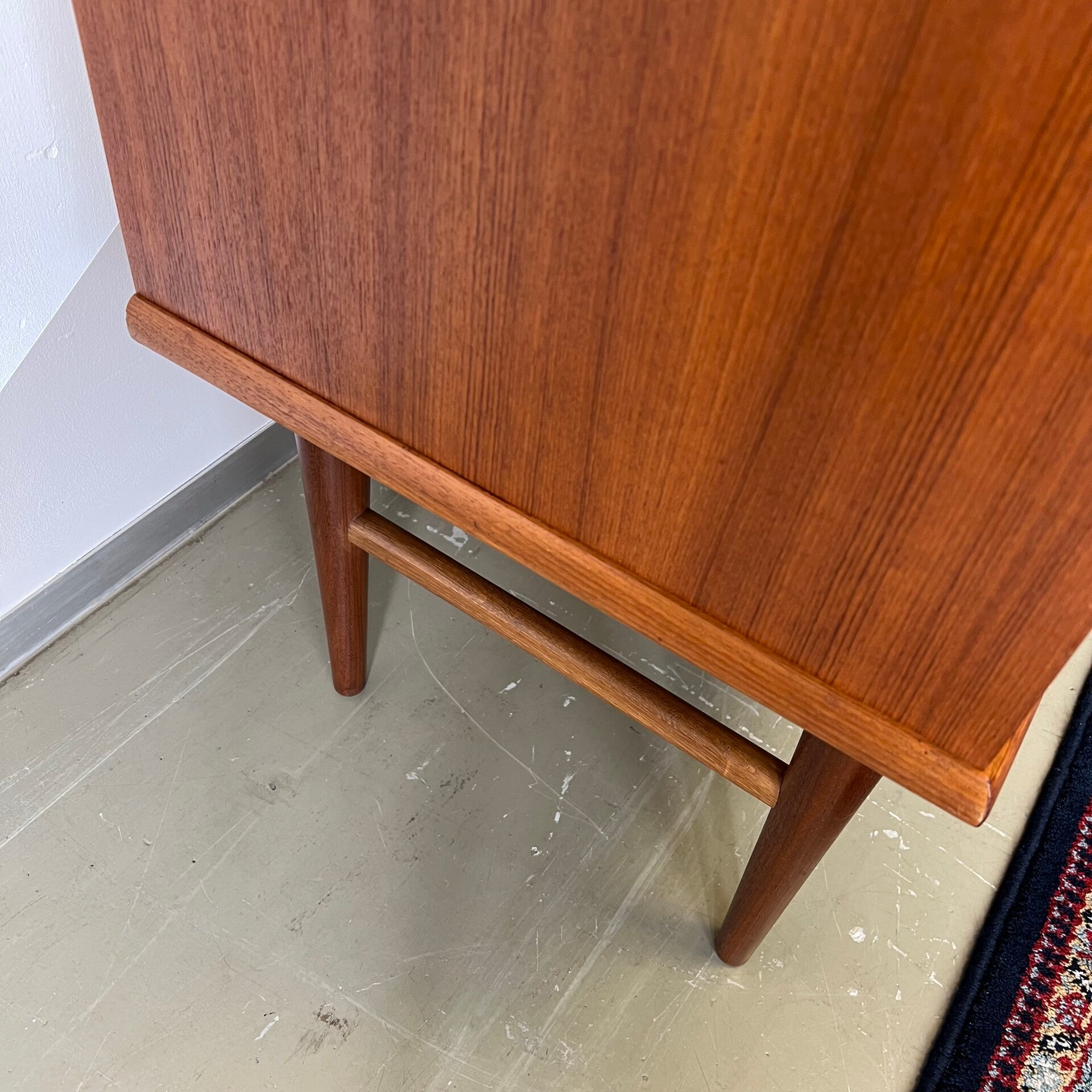 Uitgevoerd in teak (massief / fineer) met vakkundig uitgehouwen handgrepen en mooie conische poten.