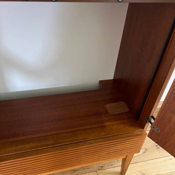 Er heeft ooit een oude TV in gestaan, maar een smalle moderne TV (of platenspeler, audio) kan ook perfect.