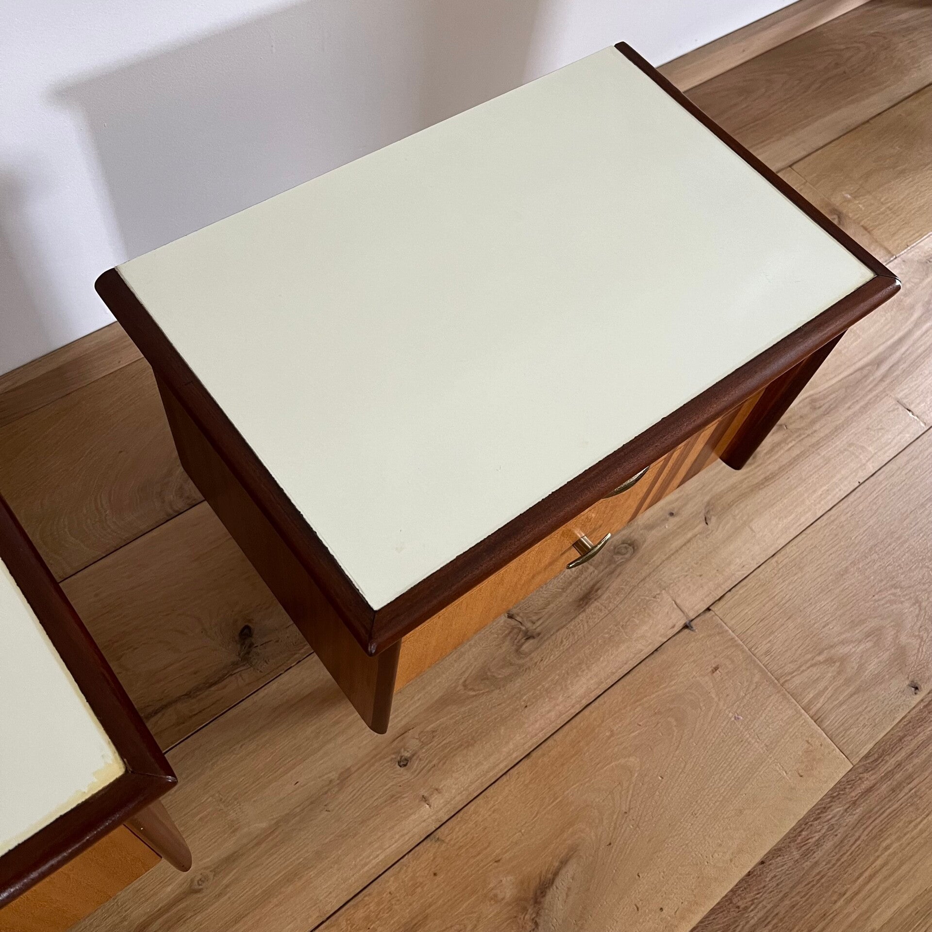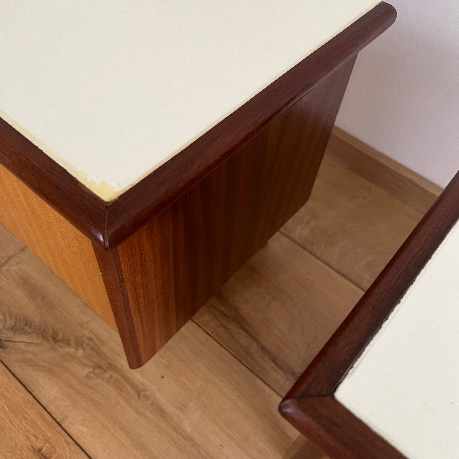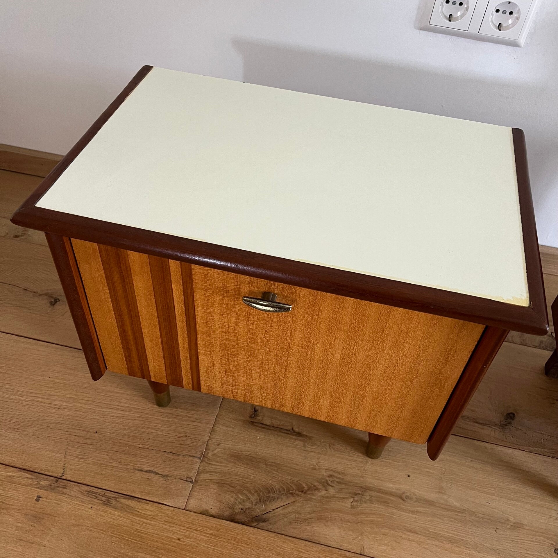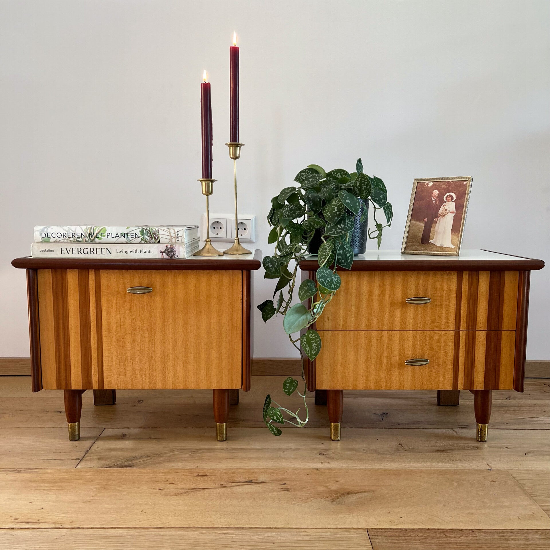 Setje van 2 typische jaren 60 nachtkastjes, compact formaat.