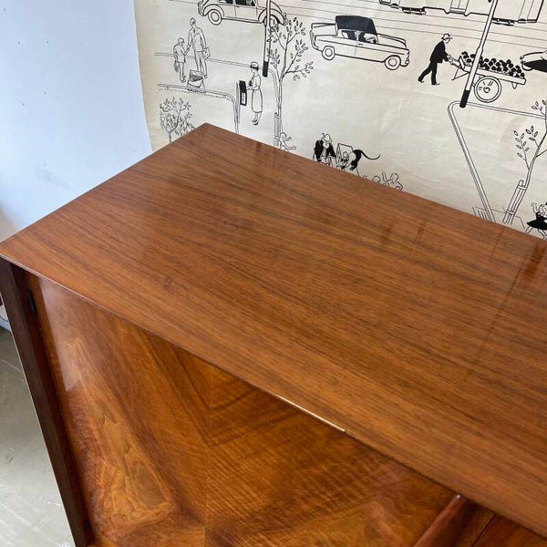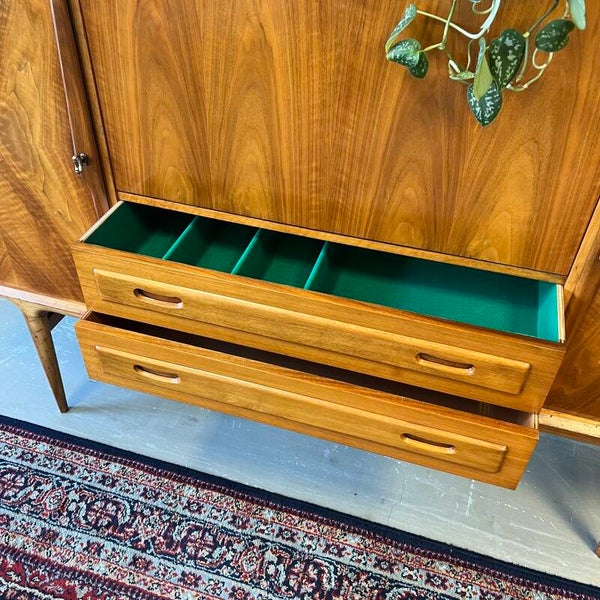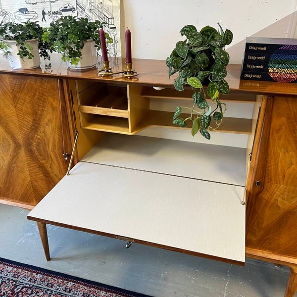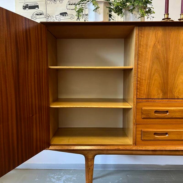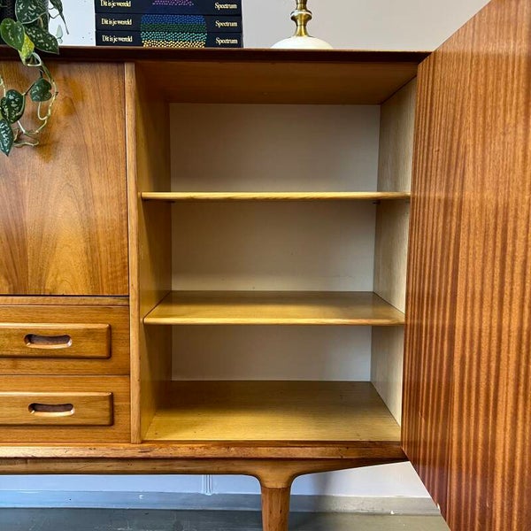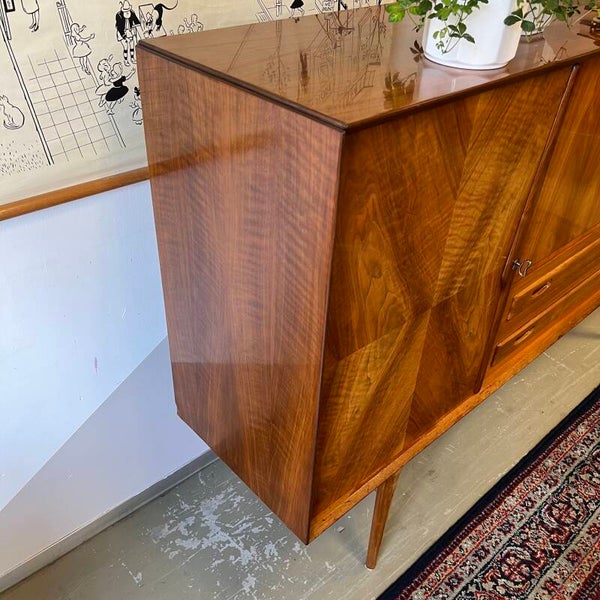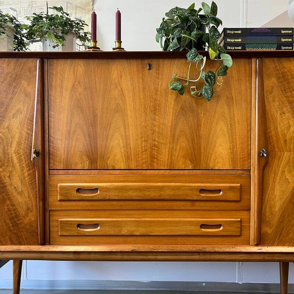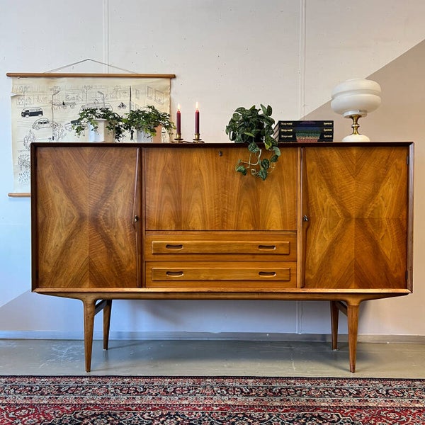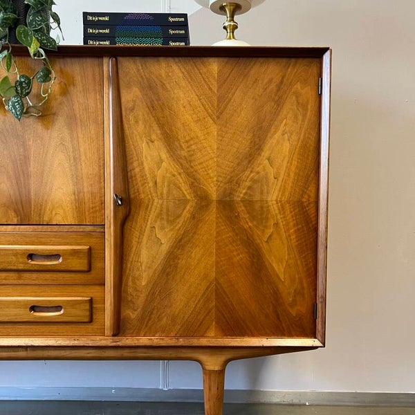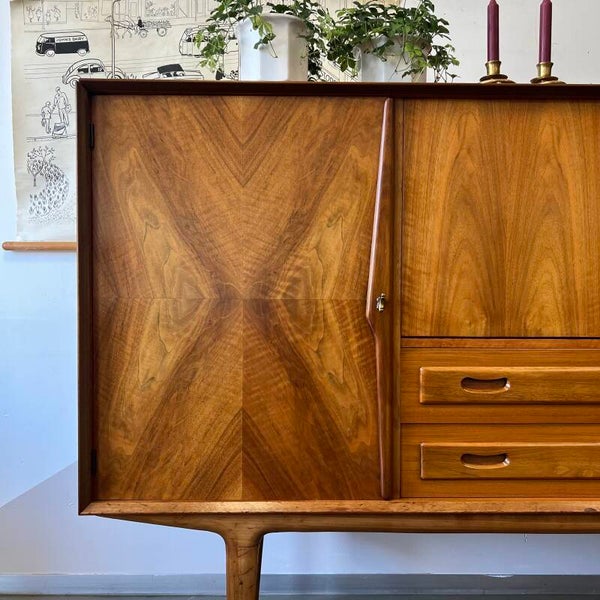 Prachtig(e) notenhouten highboard, buffetkast naar Scandinavisch design.