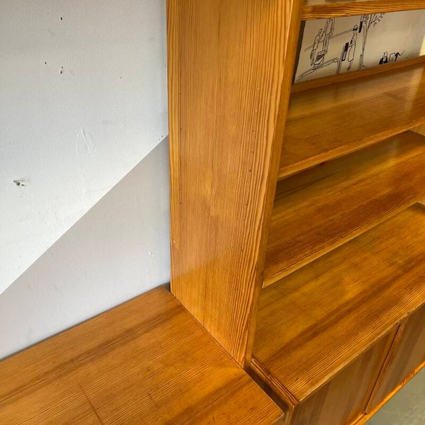 Leuk vintage wandmeubel, vrijstaand en uitgevoerd in grenen (fineer).