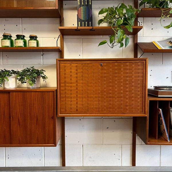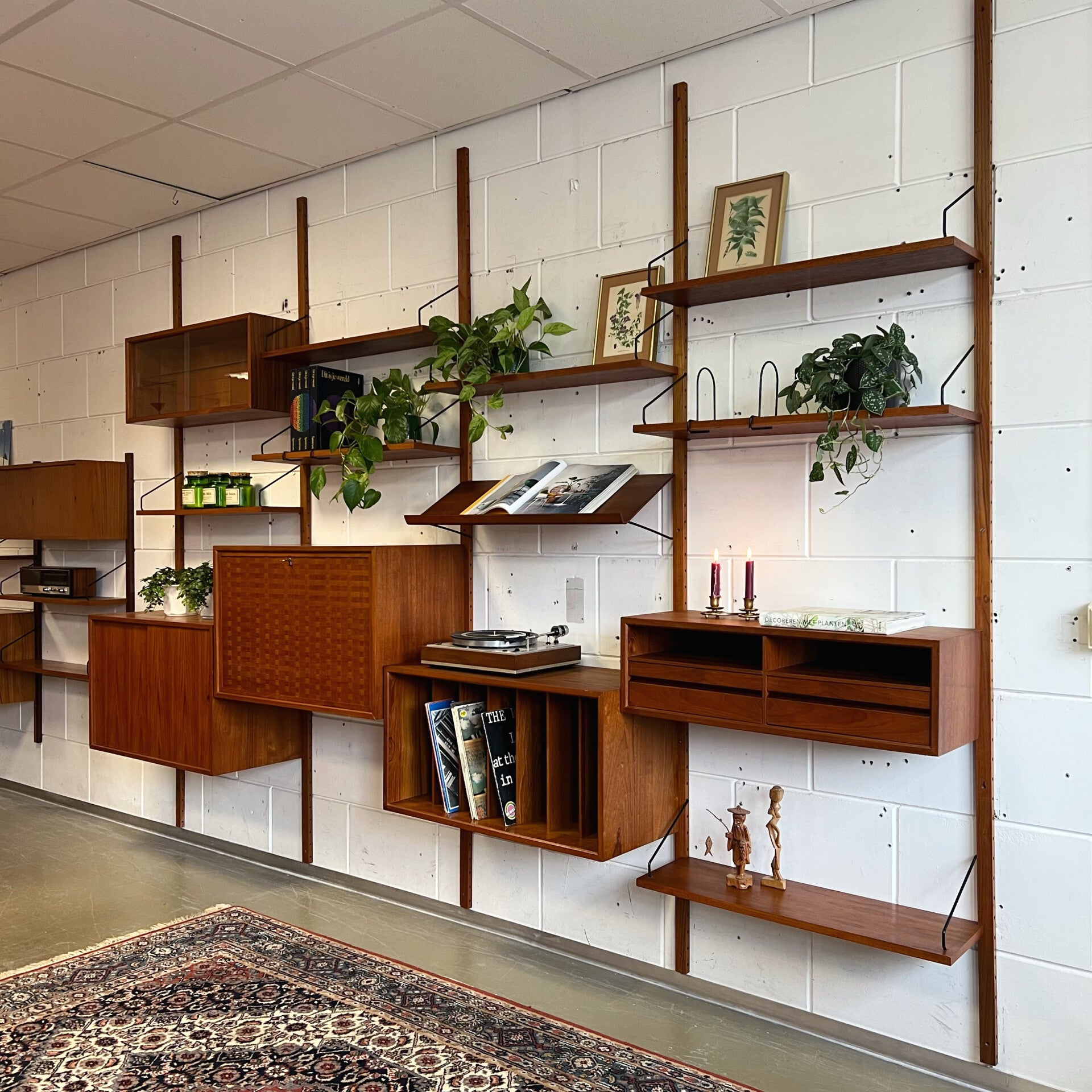 Prachtig vintage XL wandmeubel, ontworpen door de Deen Poul Cadovius met elementen uit de Royal System en Cado series.