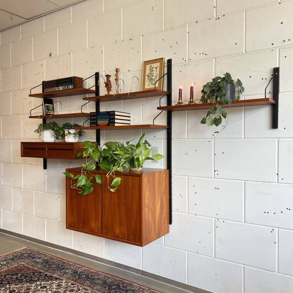 Prachtig vintage wandmeubel, ontworpen door de Deen Poul Cadovius met elementen uit de Royal System en Cado series.