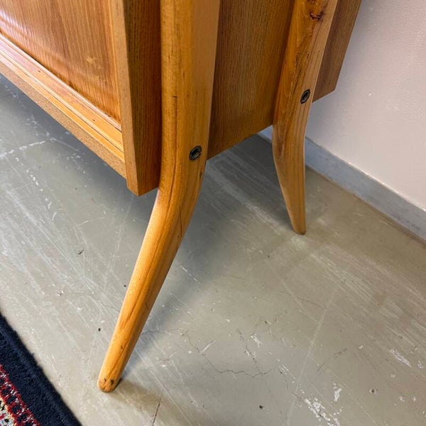 Uitgevoerd in een combinatie van essen en beuken (fineer).