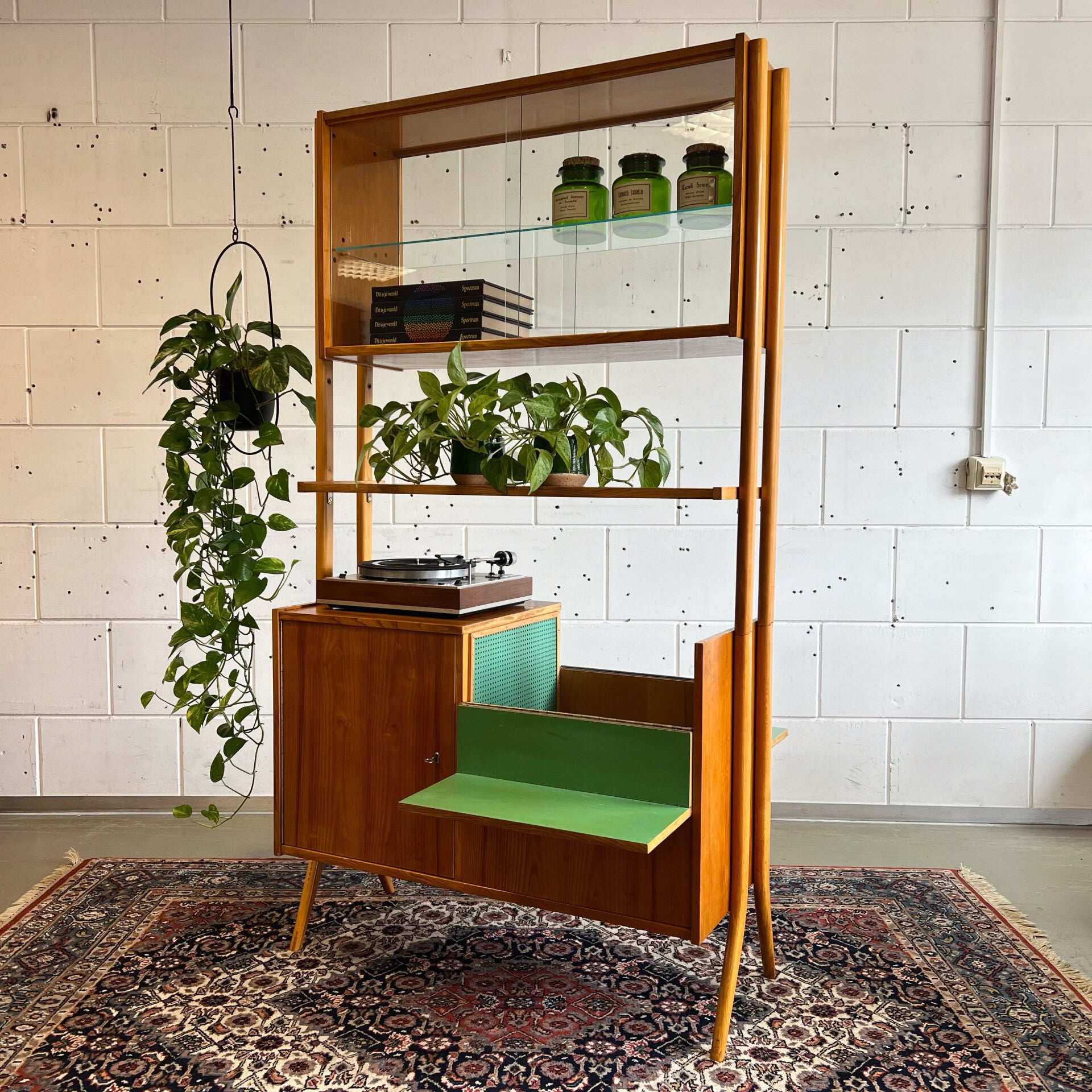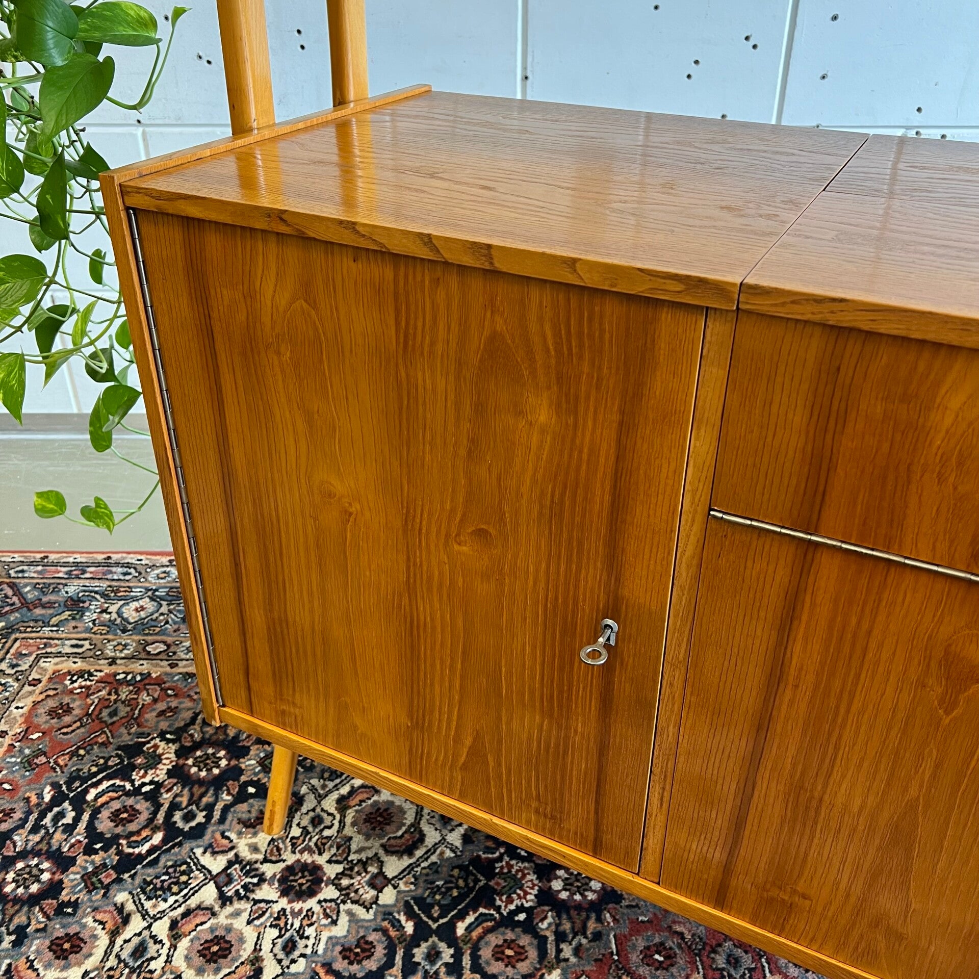 Karakteristieke vintage roomdivider of wandmeubel uit Oost-Europa. Vrijstaand.