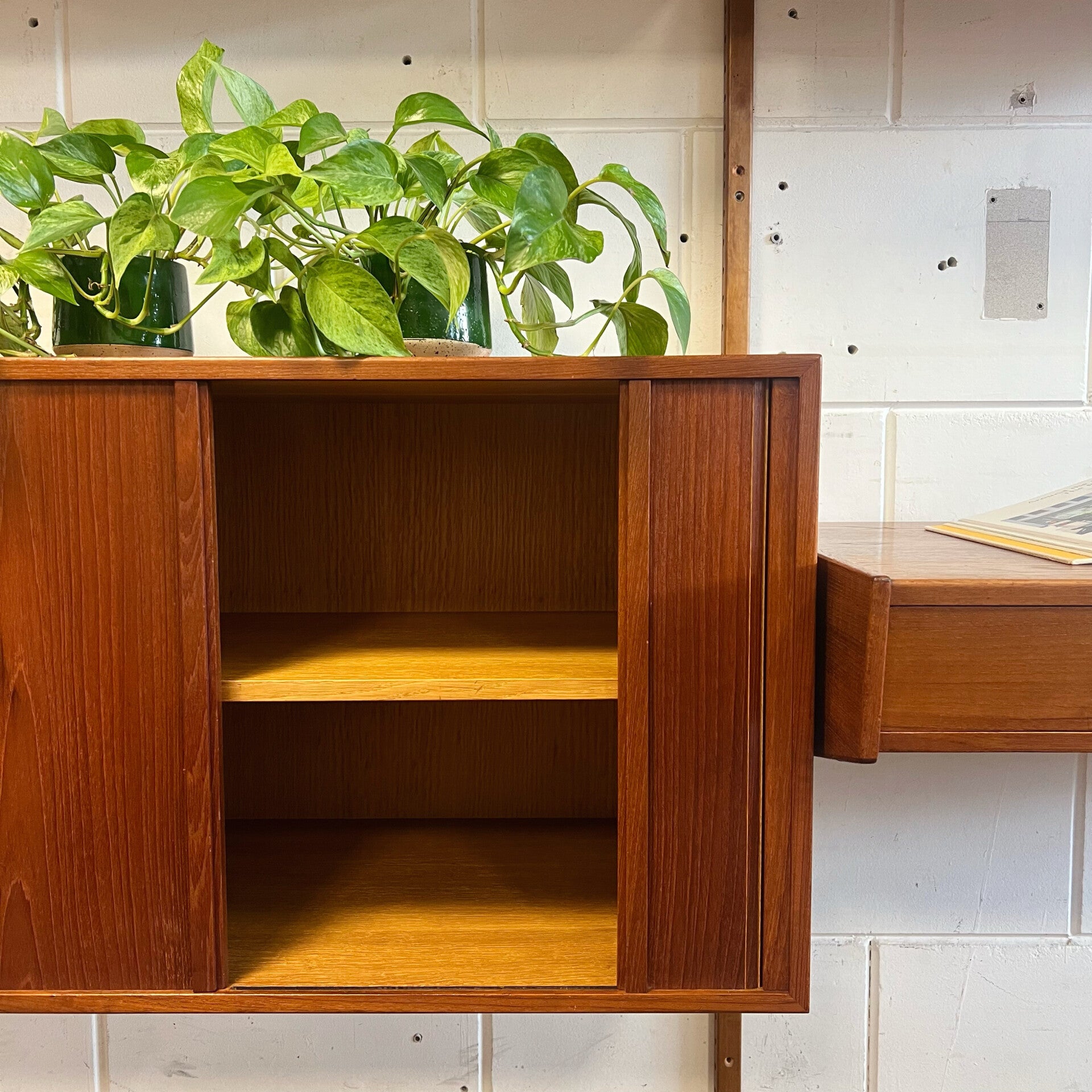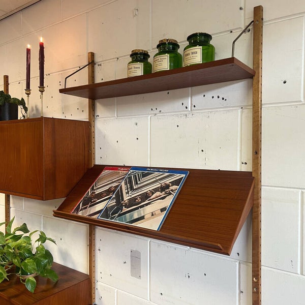 Vintage teakhouten wandmeubel, ontworpen door het Deense design duo Rud Thygesen & Johnny Sørensen voor Hansen & Guldborg (HG Furniture) Denemarken, jaren 60.