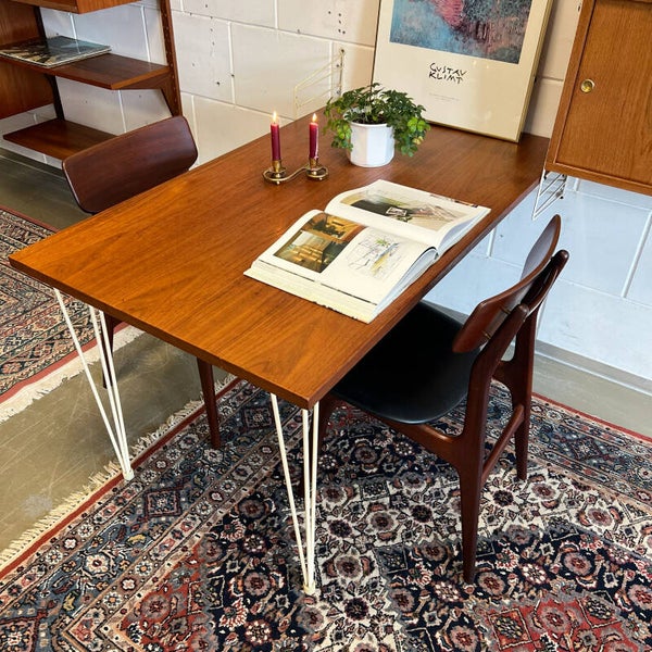 Het is een mooi luchtig en speels ontwerp door de open rekken van wit geplastificeerd draadmetaal met optioneel een zeldzame tafel / bureau (bijgeleverd).
