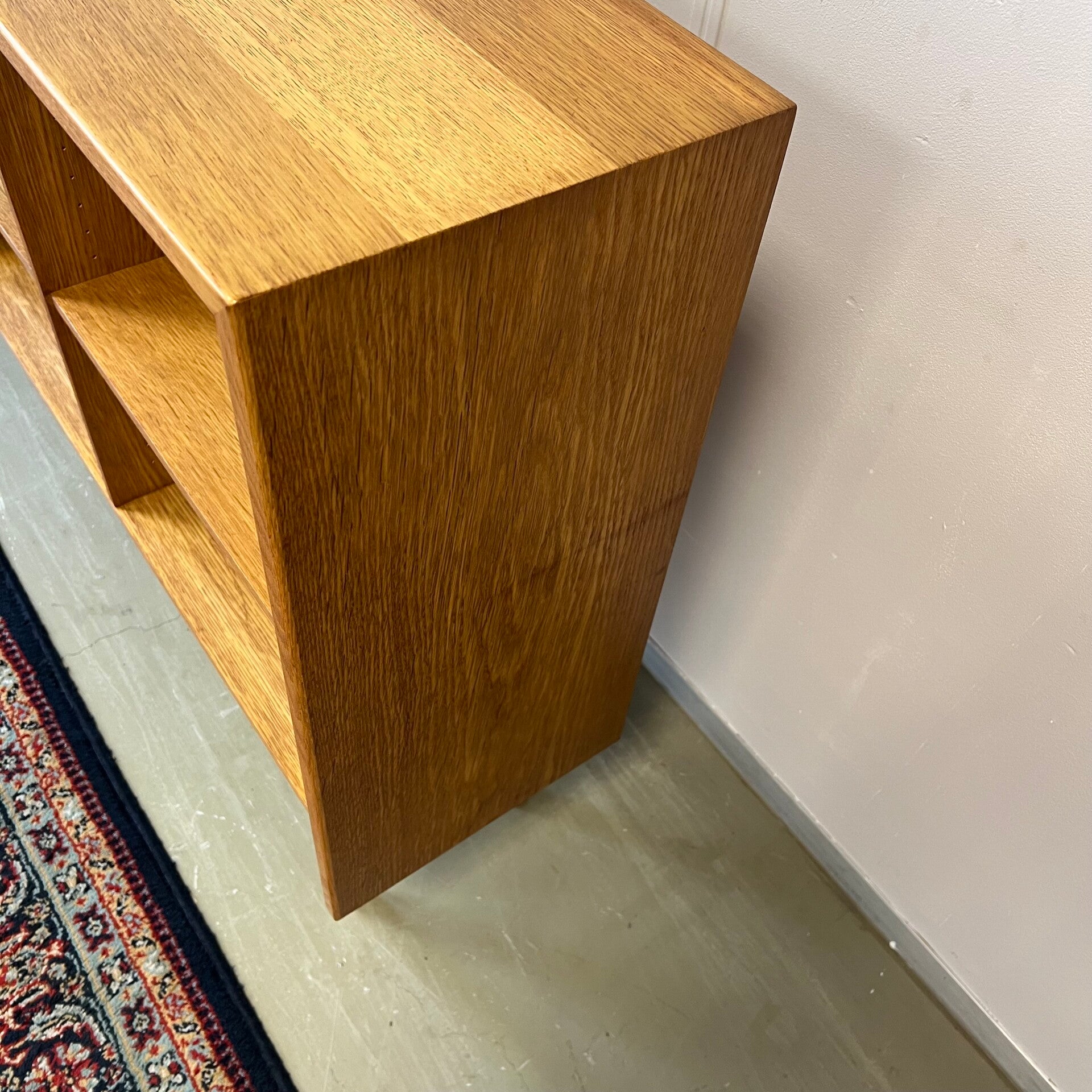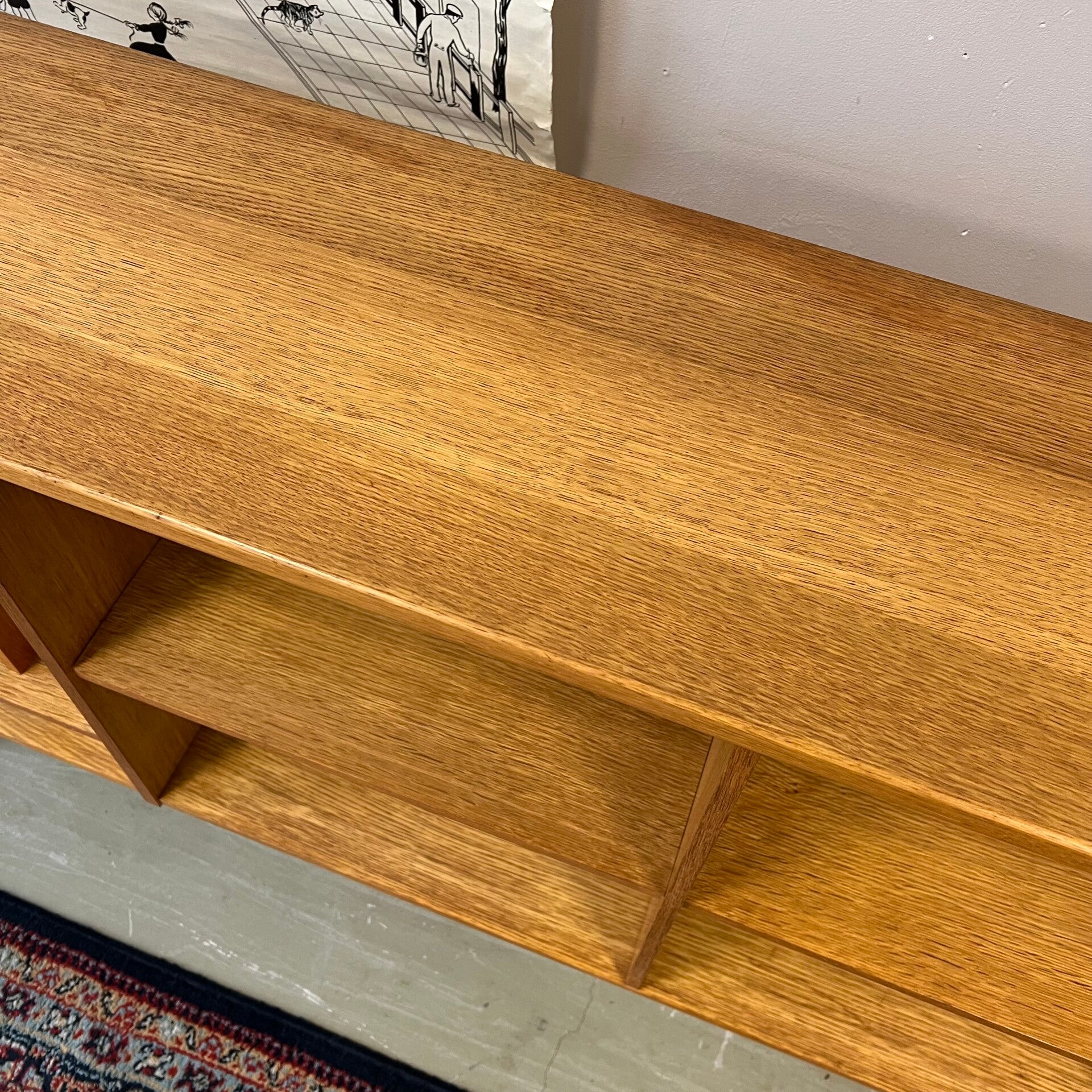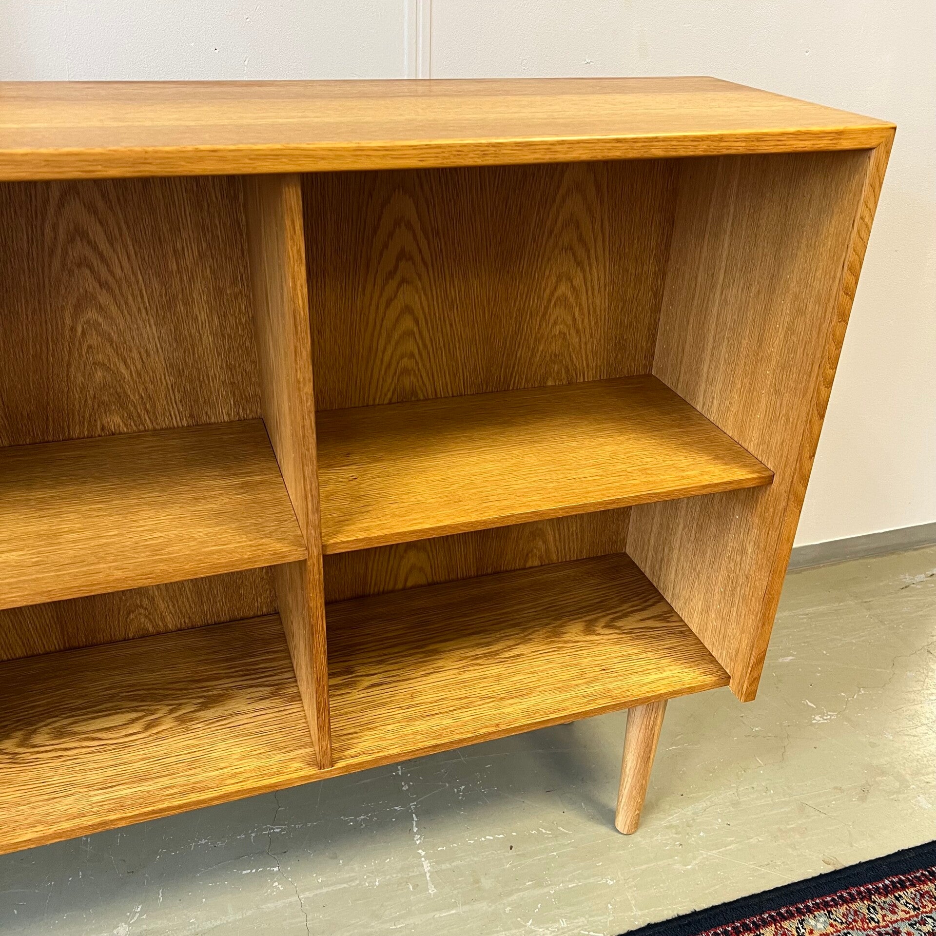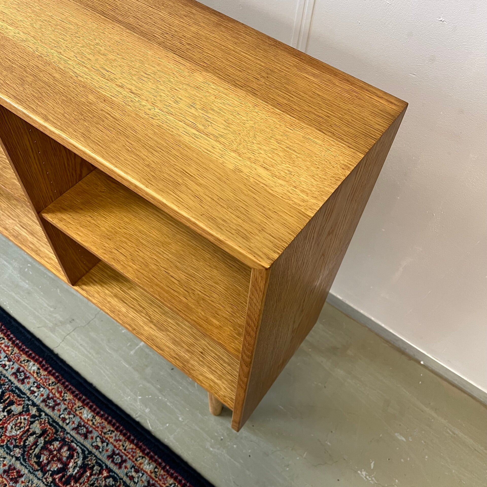 Leuke vintage open LP kast, audiomeubel in licht eiken (fineer).